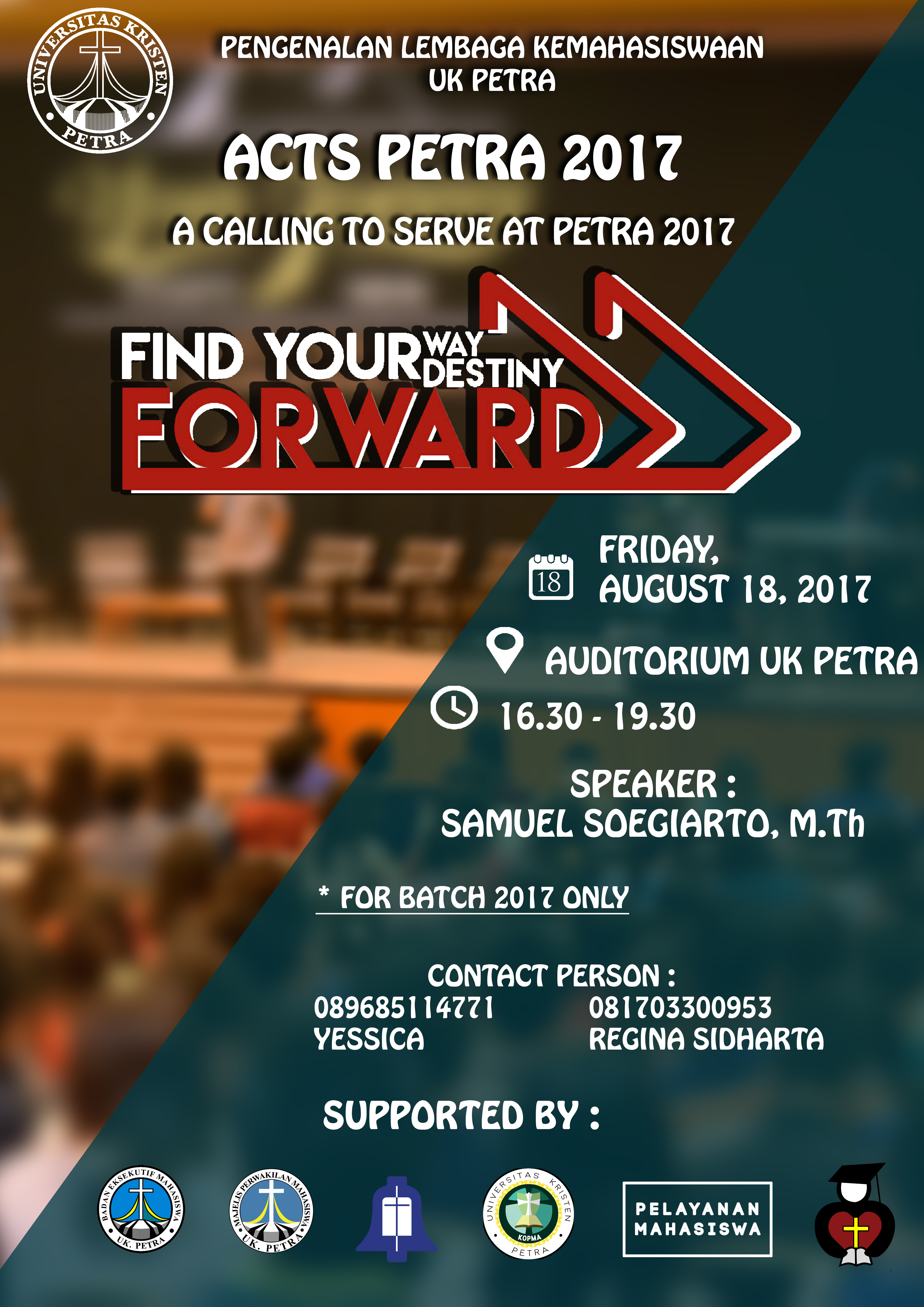 Library's collection Library's IT development CancelBadan Eksekutif Mahasiswa dan Majelis Perwakilan Mahasiswa UK Petra mengadakan acara pengenalan lembaga-lembaga kemahasiswaan yang ada di UK Petra. Dengan mengambil tema Act Petra 2017 acara ini diadakan di Auditorium UK Petra pada tanggal 18 Agustus 2017 dengan pembicara bapak Samuel Soegiarto.