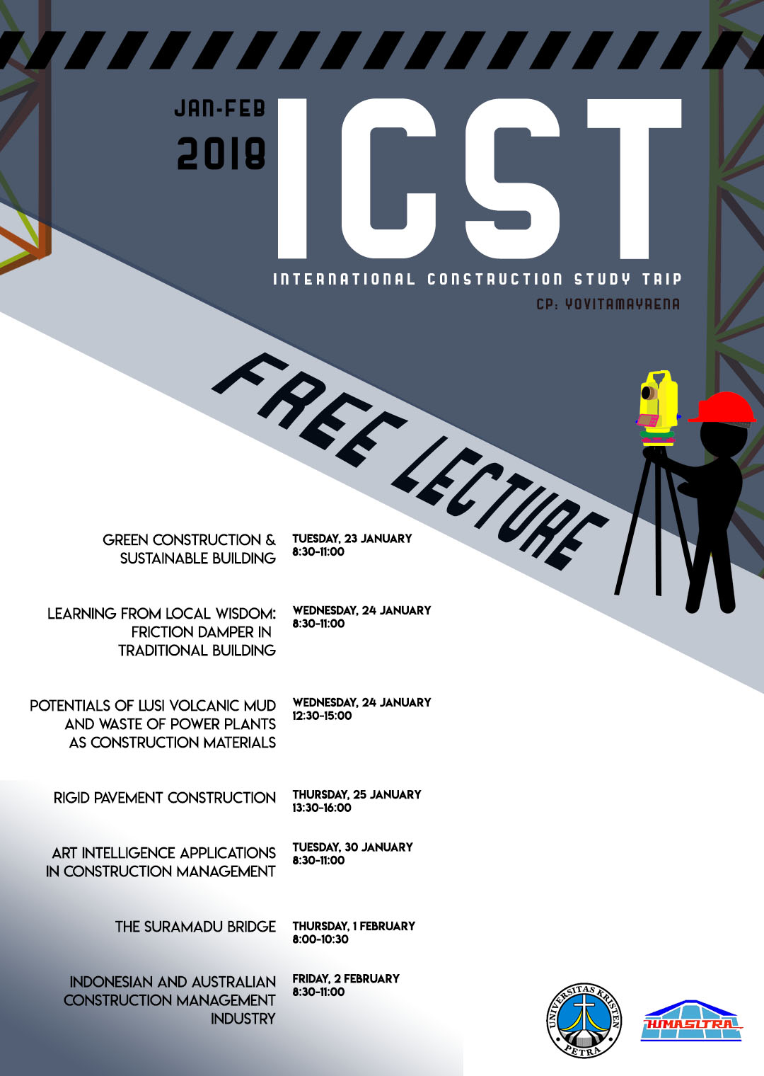 Library's collection Library's IT development CancelProgram Studi teknik Sipil UK Petra Surabaya, mengadakan kegiatan kunjungan study ke beberapa proyek. Kegiatan ini diadakan pada bulan Januari - Pebruari 2018.