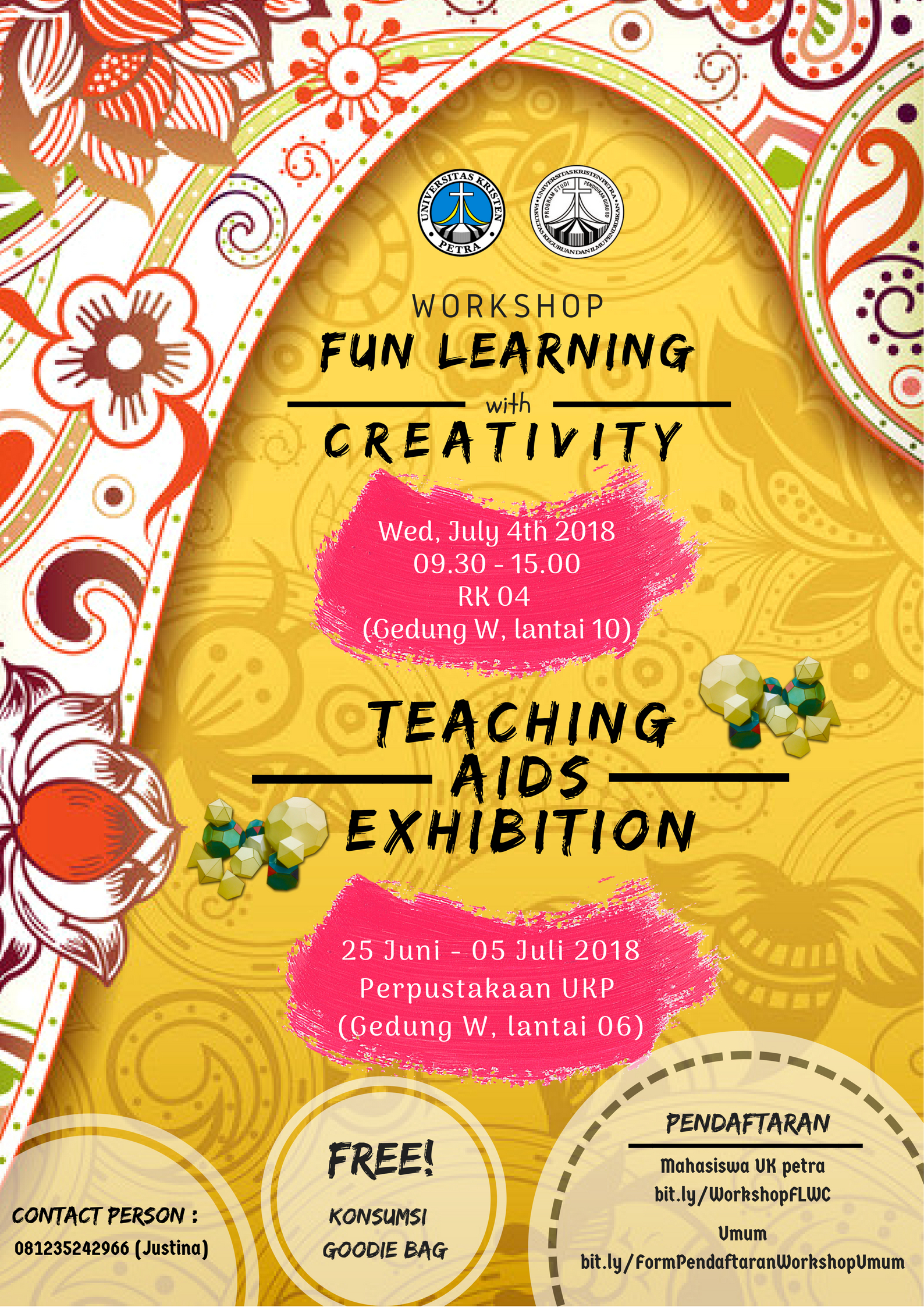 Library's collection Library's IT development CancelWorkshop fun learning with creativity diadakan oleh Jurusan Pendidikan Guru Sekolah Dasar Universitas Kristen Petra Surabaya pada tanggal 04 Juli 2018 bertempat di gedung Radius Prawiro lantai 10 RK.IV.