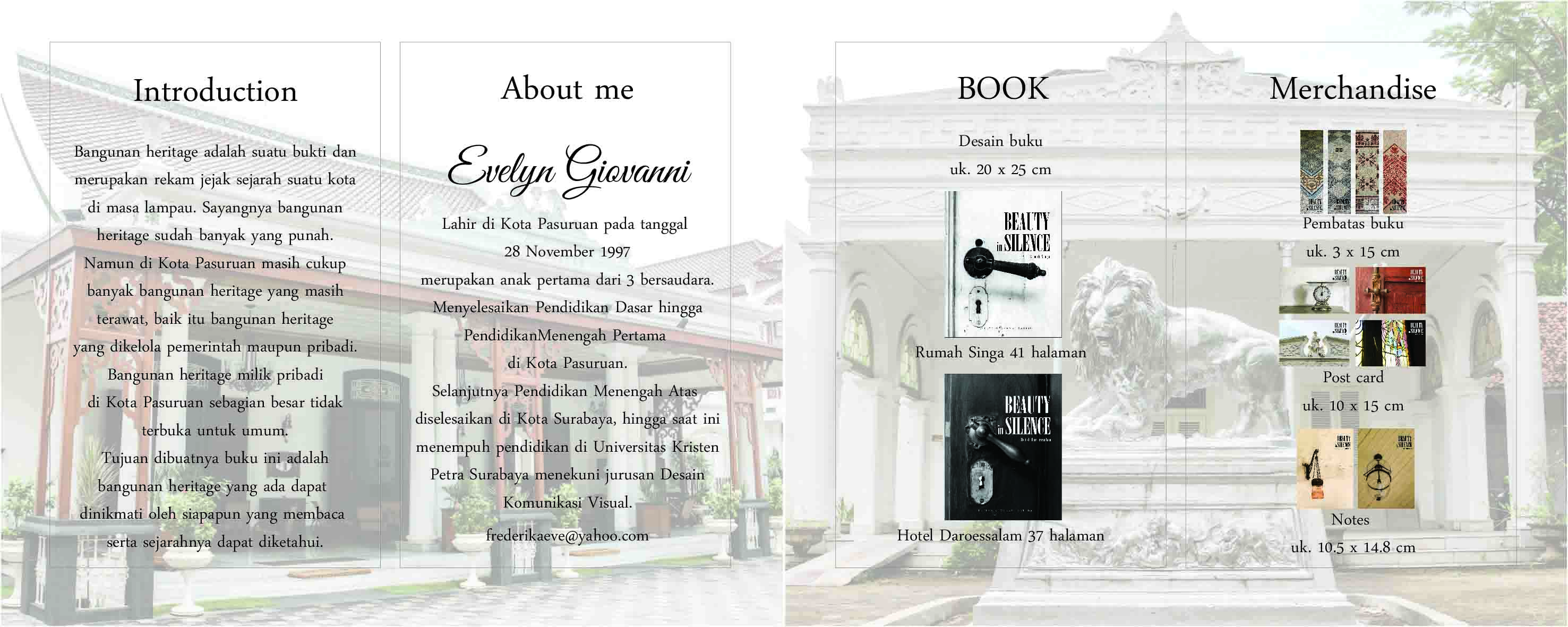 Library's collection Library's IT development CancelSetiap kota tentu memiliki suatu sejarah di masa lampau. Bangunan heritage adalah sebuah bangunan yang menyimpan sejarah dan menjadi salah satu bukti jejak sejarah di masa lalu. Beberapa bangunan heritage yang ada tidak terbuka untuk umum dan pengetahuan akan sejarah suatu kota dan sejarah kota tersebut yang berhubungan dengan bangunan heritage sangat minim. Perancangan buku esai foto bangunan heritage di Kota Pasuruan diharapkan dapat bermanfaat dan dapat dimengerti oleh pembaca, serta keindahan bangunan heritage dapat dinikmati dan dapat dilihat meskipun tidak dapat berkunjung dan melihat secara langsung.