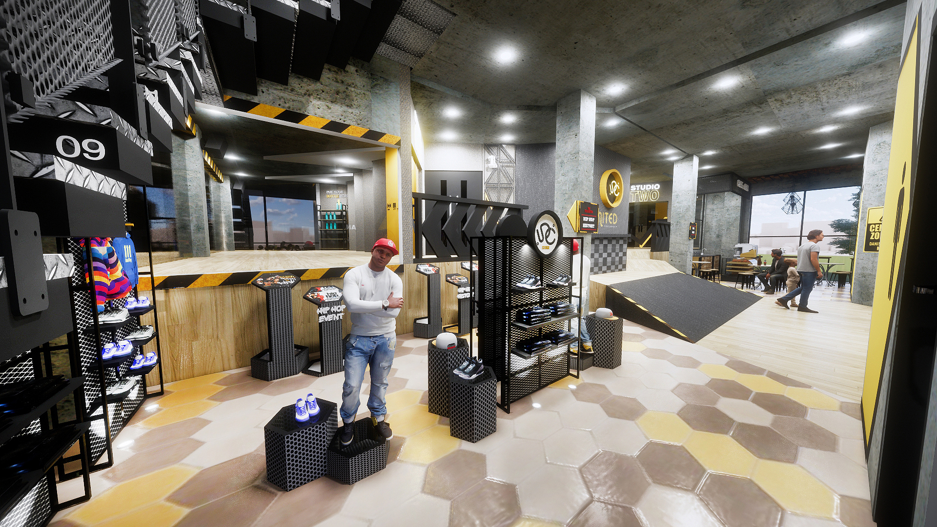 Library's collection Library's IT development CancelPerancangan Interior United Dance Community Center ini merupakan suatu respon dari kebutuhan para komunitas dance di Surabaya dari kebutuhan untuk berkumpul, bersosialisasi, berlatih, berkolaborasi, serta menghabiskan waktu bersama. United Dance Community Center ini dirancang untuk menjadi wadah dan rumah kedua bagi para pencinta dance di Surabaya, di mana terdapat ruang yang dapat menampung berbagai kegiatan komunitas-komunitas dance di Surabaya. Perancangan interior United Dance Community Center ini akan dirancang sesuai dengan perilaku spasial yang ada pada dancer. Perancangan ini menggunakan metode perancangan design thinking dari Stanford University dengan tahapan: understand, observe, point of view, ideate, prototype, dan test. Gambaran umum perancangan diharapkan dapat mengajak anak-anak muda Surabaya untuk bisa mengenal dan berpartisipasi lebih aktif dalam komunitas dance ini. Hasil dari perancangan adalah sebuah dance community center dengan konsep United in Movement. Implementasi konsep yaitu bentukan yang patah-patah di mana terinspirasi dari unsur gerakan dari hip hop dance sendiri. Fasilitas ruang yang disediakan United Dance Community Center secara garis besar adalah studio tari, ruang pertunjukan, mini gallery & gift shop, community space, cafe, dan ruangan pendukung lainnya.