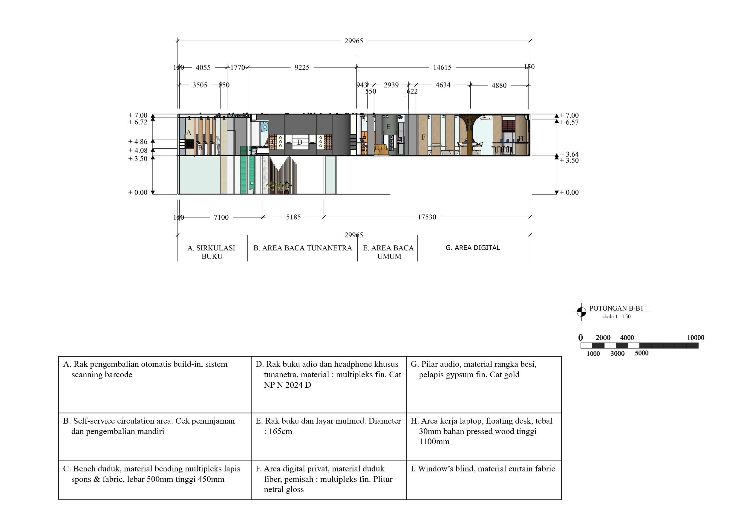 Library's collection Library's IT development CancelPerancangan ini dilakukan dengan tujuan agar desain perpustakaan yang ada di kota Malang dapat disesuaikan dengan era yang terus berkembang (dalam hal ini era teknologi). Sehingga pengguna yang didominasi oleh generasi-generasi Z dan Alpha dapat menikmati fasilitas dan layanan yang sesuai dengan kebutuhan. Selain itu, perancangan ini dilakukan dengan harapan agar eksistensi perpustakaan yang semakin menurun di kalangan masyarakat khususnya anak muda dapat kembali dihadirkan dengan menawarkan konsep yang lebih menyenangkan, mudah, cepat dan mendidik masyarakat. Karena terdapat keistimewaan dari perpustakaan ini yaitu layanan braille pertama di Indonesia, maka keistimewaan ini akan lebih digali lagi agar pengunjung tunanetra dapat menikmati fasilitas dengan baik. Untuk mencapai tujuan ini, maka metode yang akan digunakan merupakan metode design thinking dengan 7 tahapan desain dan menggunakan metode BMC (Bussiness Model Canvas) agar konsep perancangan ini dapat terus dilanjutkan (berkelanjutan) sampai masa-masa selanjutnya.