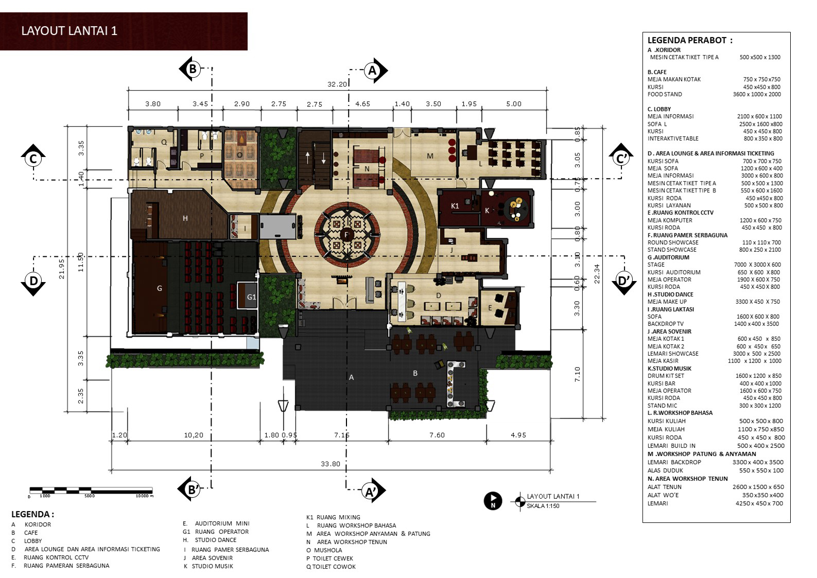Library's collection Library's IT development CancelKabupaten Ende merupakan sebuah Kabupaten dengan segudang kisah dan potensi.Tidak hanya terkenal sebagai rahim Pancasila, Kabupaten tertua di Pulau Flores ini memiliki tiga suku besar yaitu Ja’o, Lio dan Nga’o yang kaya akan nilai, filosofi, adat istiadat dan budaya yang menarik untuk di pelajari. Selain budaya, Kabupaten Ende di anugerahi alam dan manusia yang berpotensi untuk dikembangkan. Namun potensi dan kekayaan yang ada belum memiliki ruang dan fasilitas pebelajaran budaya secara lengkap. Berangkat dari potensi dan masalah yang ada, perancang membuat rumusan masalah yaitu Bagaimana merancang interior sebuah Pusat informasi kebudayaan Ende yang inovatif, kreatif, dan Edukatif dengan mengangkat konsep filosofi “Sao Ria” sekaligus memperkenalkan rumah adat Ende-Lio secara modern di dalam penataan interiornya. Metode yang digunakan pada perancangan ini mengikuti diagram yang dibuat oleh Veronique Hillen yang terdiri atas 3 tahap utama yaitu Inspiration, Ideation, dan Implementation. Implementasi desain pada perancangan ini mengangkat konsep Sao Ria yang merupakan bangunan arsitektur khas Ende Lio, kemudian dikemas secara modern. Adapun fasilitas yang disediakan berupa area galeri yang disusun berdasarkan tujuh unsur kebudayaan, ruang pamer serbaguna, auditorium, studio musik dan tari, area workshop, cafe, toko sovenir dan fasilitas penunjang lainnya.