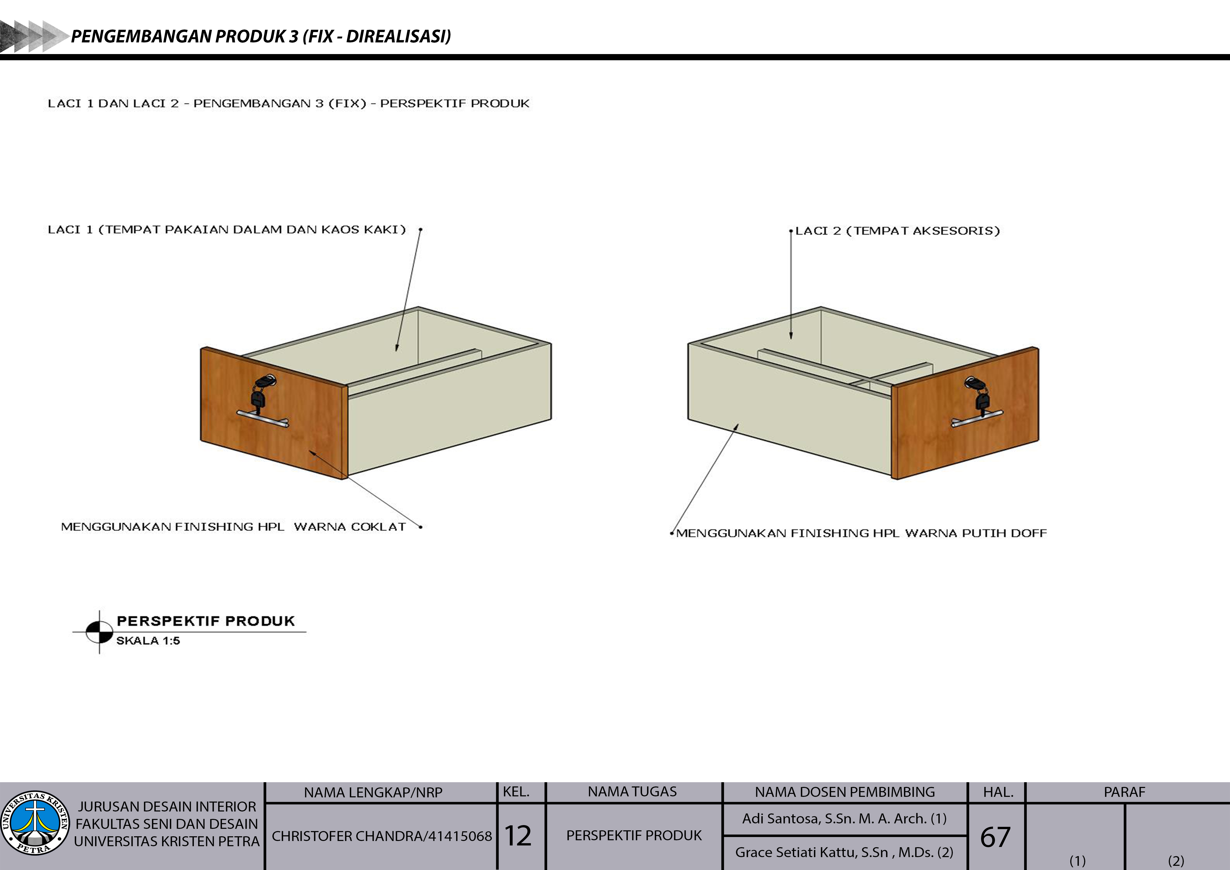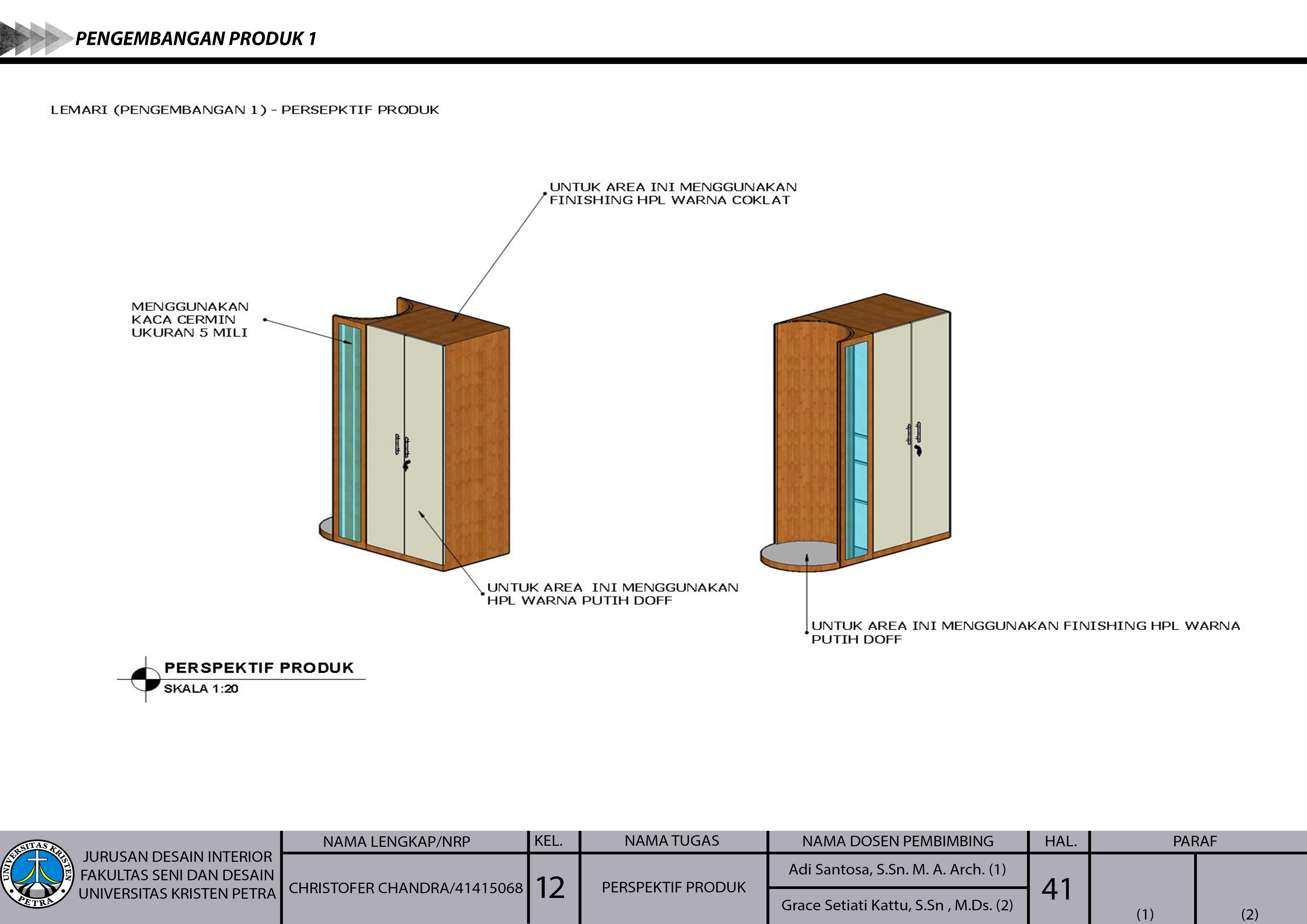 Library's collection Library's IT development CancelDunia fashion untuk sekarang mengalami perkembangan yang cukup pesat khususnya di Indonesia, karena fashion merupakan bagian yang sudah tidak dapat dilepaskan dari penampilan dan gaya keseharian masyarakat dan bagi mereka juga fashion juga sebagai alat komunikasi untuk menyampaikan identitas. Perkembangan dunia fashion juga mempengaruhi munculnya produsen yang menawarkan barang yang telah dirancang untuk menarik perhatian para konsumen untuk memenuhi kebutuhan fashion mereka agar lebih up to date. Banyaknya kebutuhan fashion yang mereka beli dan juga mereka kumpulkan, membuat peran furniture sangat dibutuhkan untuk menjadi sebuah wadah penyimpanan di rumah tinggal. Oleh karena itu pada perancangan ini dirancang lemari multifungsi yang tidak hanya sekedar untuk menyimpan pakaian saja, melainkan menyimpan barang lain seperti sepatu, topi, tas, dan aksesoris lain dengan dasar pengumpulan data-data kebutuhan dari pengguna serta aktivitas pada saat berada di lemari penyimpanan, sehingga lemari yang dirancang dapat menyimpan barang-barang dalam satu tempat yang sama tanpa harus ditempatkan terpisah dan juga memudahkan aktivitas pengguna pada saat pemilihan barang yang ingin digunakan.