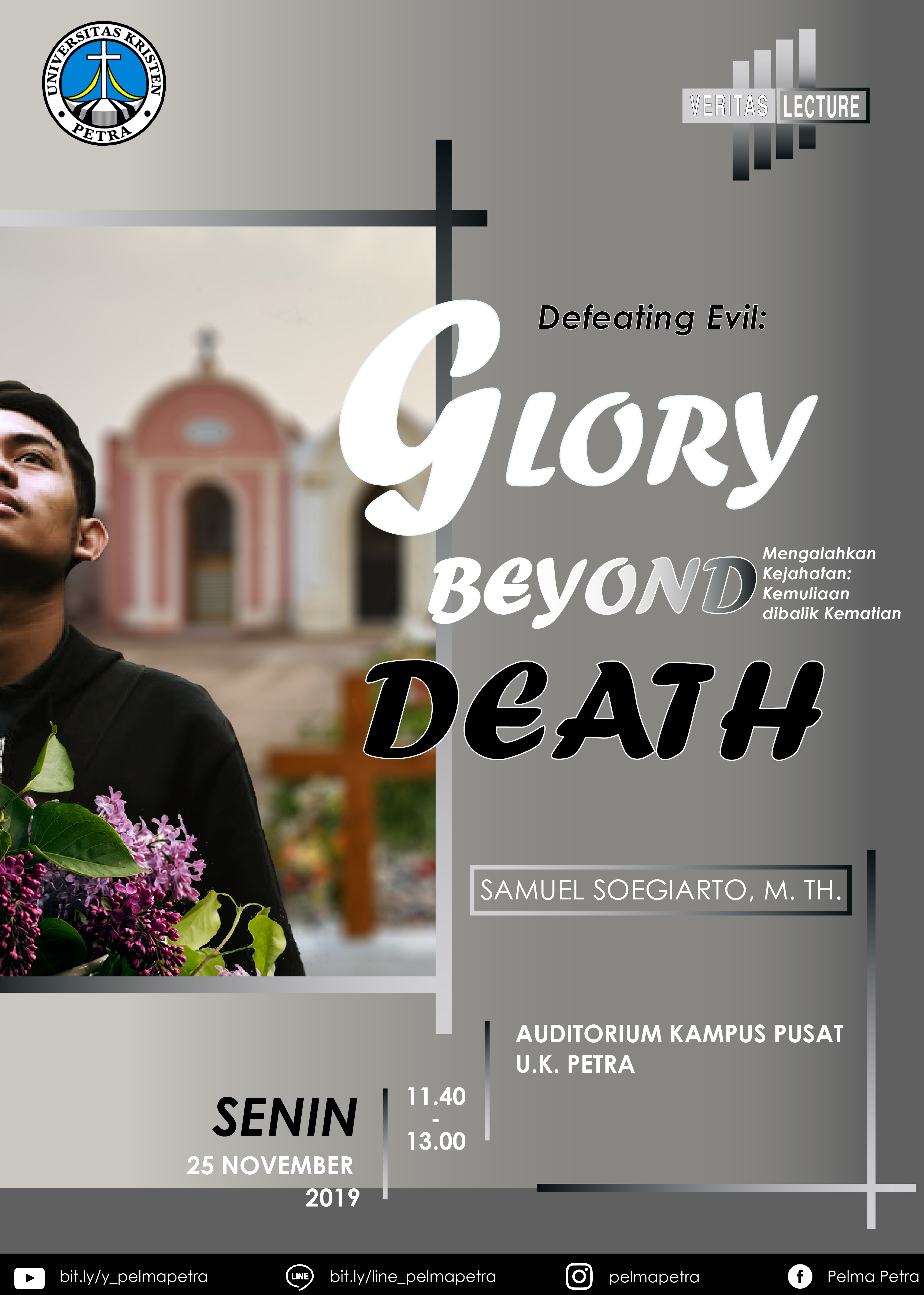 Library's collection Library's IT development CancelUniversitas Kristen petra Surabaya mengundang seluruh sivitas UK Petra untuk hadir dalam kebaktian universitas yang diadakan setiap hari Senin. Pada tanggal 25 November 2019 bertempat di Auditorium UK Petra kebaktian universitas ini mengangkat tema defeating evil: glory beyond death (mengalahkan kejahatan: kemuliaan dibalik kematian) dengan pengkhotbah bapak Samuel Soegiarto M.Th.