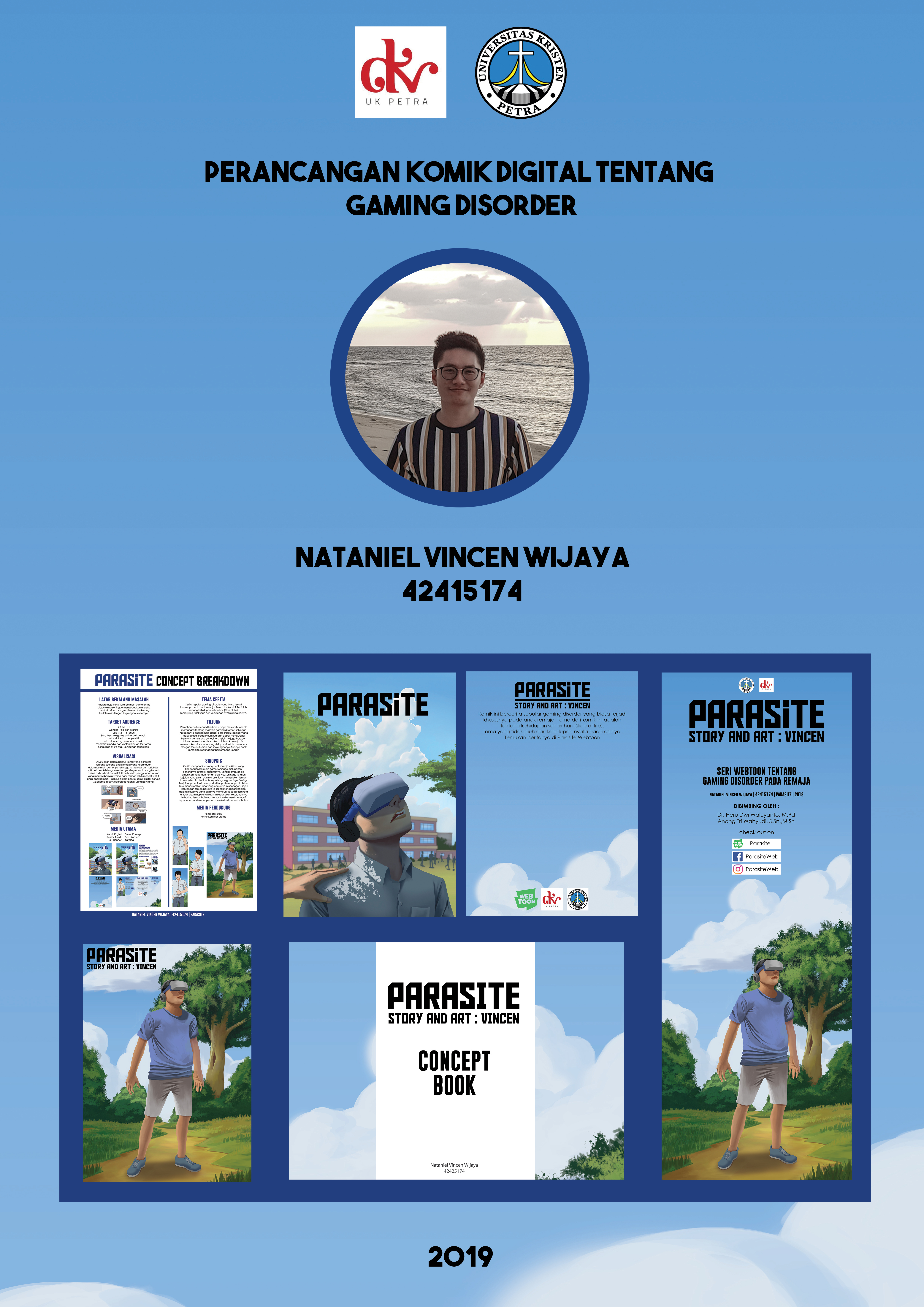 Library's collection Library's IT development CancelPerancangan ini bertema tentang kehidupan sehari-hari sosok remaja yang suka bermain game online di gawai yang menyebabkan ia menjadi pribadi yang anti sosial dan kurang berinteraksi dengan lingkungan sekitarnya. Dengan upaya komunikasi visual melalui komik yang dianggap sesuai untuk kalangan anak remaja. Perancangan ini diharapkan dapat membantu meningkatkan kesadaran remaja untuk dapat memilah waktu dengan baik serta menjelaskan efek negatif dari penggunaan gawai yang berlebihan. Selain itu, komik ini juga menjadi cerminan remaja masa kini dalam hal penggunaan gawai.