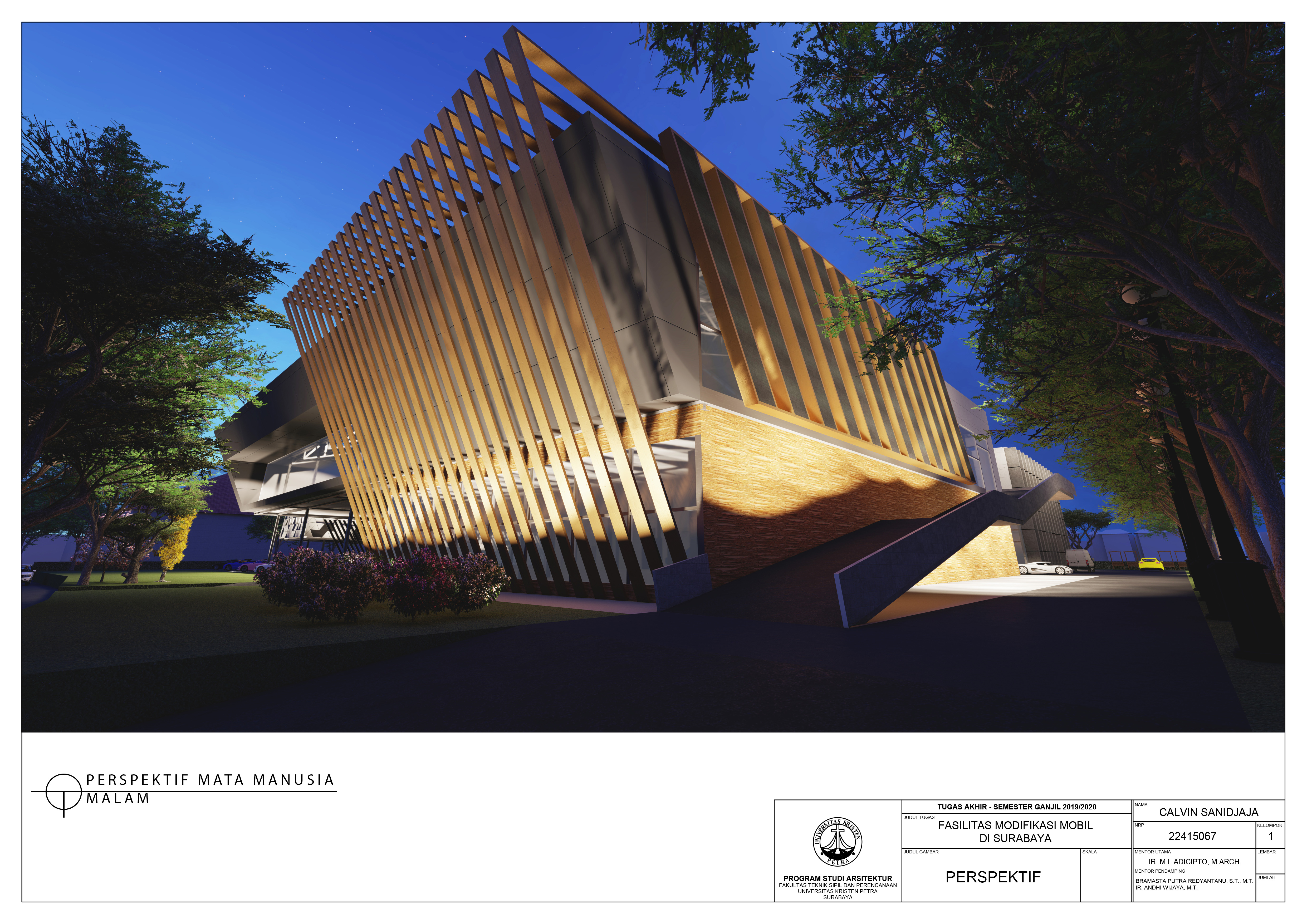 Library's collection Library's IT development CancelFasilitas Modifikasi Mobil di Surabaya ini merupakan wadah bagi para penggemar modifikasi mobil di Surabaya untuk menyalurkan hobi memodifikasi mobil, berkumpul, dan sebuah tempat untuk berkonsultasi seputar modifikasi mobil sekaligus. Penyediaan fasilitas ini, diharapkan dapat memudahkan penggemar untuk mendapatkan hasil modifikasi mobil yang diinginkan pada satu tempat saja. Fasilitas ini dibagi menjadi 4 massa, fasilitas toko, fasilitas kantor pengelola, fasilitas bengkel, dan yang terakhir fasilitas cuci mobil yang dapat bermanfaat bagi pemilik kendaraan mobil yang tidak suka modifikasi. Fasilitas cuci mobil ini juga dapat menjadi daya tarik pengunjung untuk datang ke fasilitas modifikasi mobil ini.
