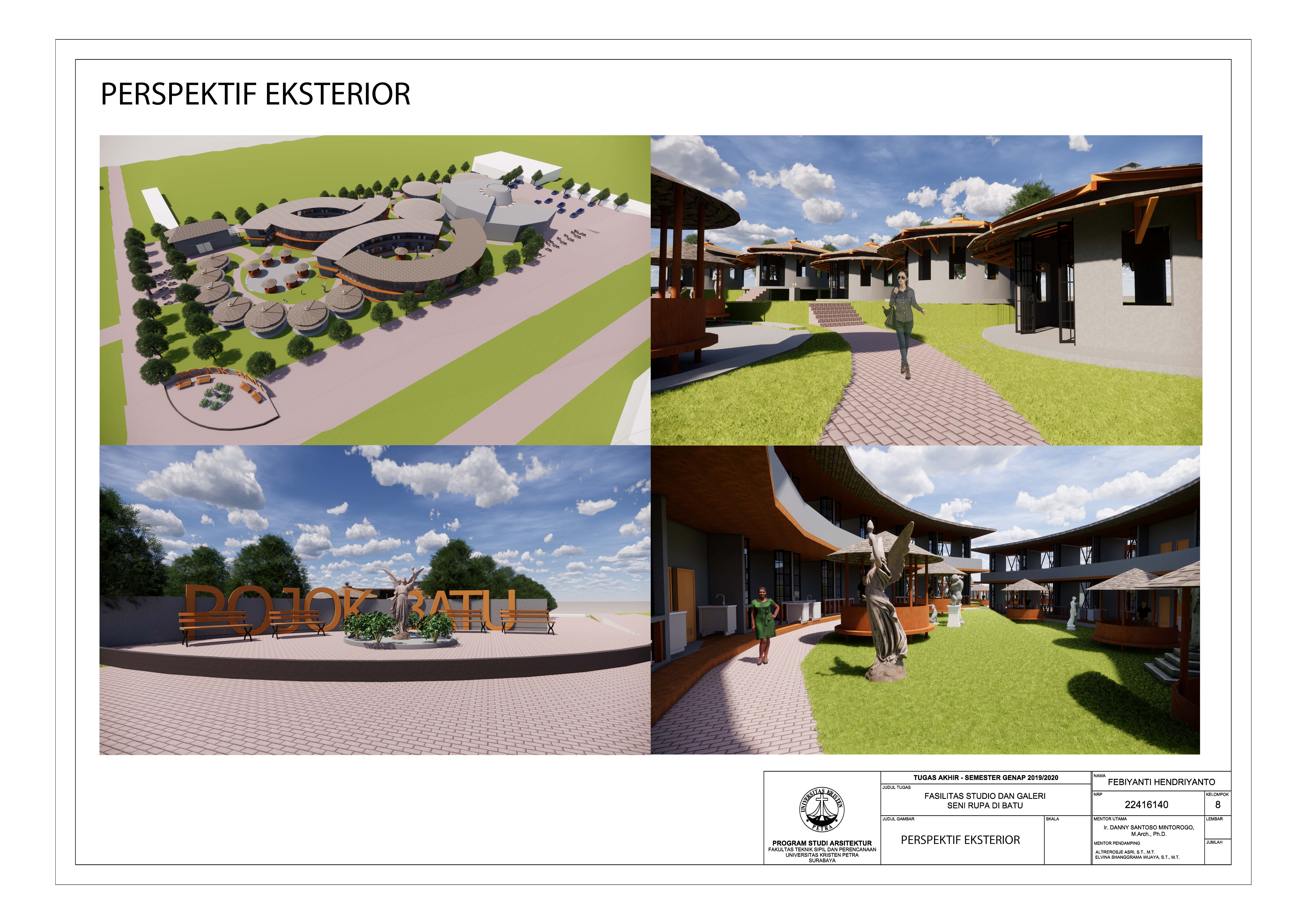 Library's collection Library's IT development CancelDesain dibuat berdasar keresahan seniman Kota Batu yang mengeluhkan kurangnya fasilitas untuk komunitas seniman rupa, sehingga banyak seniman berpotensi Kota Batu yang mencari apresiasi lebih di luar kota. Desain bertujuan untuk memberi fasilitas kepada komunitas seniman rupa Kota Batu yang kurang terwadahi dan membawa masyarakat Kota Batu lebih dekat dengan seni rupa dalam kota dalam satu wadah bangunan. Masyarakat dan seniman diajak untuk merasakan proses kreatif dalam bangunan maupun landscape bangunan. Berangkat dari permasalahan dan konsep yang ada, dirancang dengan pendekatan desain Arsitektur perilaku. Fasilitas ini terdiri dari beberapa bagian, yaitu galeri; studio butsir, studio pahat dan cor, dan studio lukis; cafetaria; gudang; ruang workshop; dan kantor. Suasana dalam desain dibuat lebih intim untuk memberikan kesan personal untuk berkontemplasi.