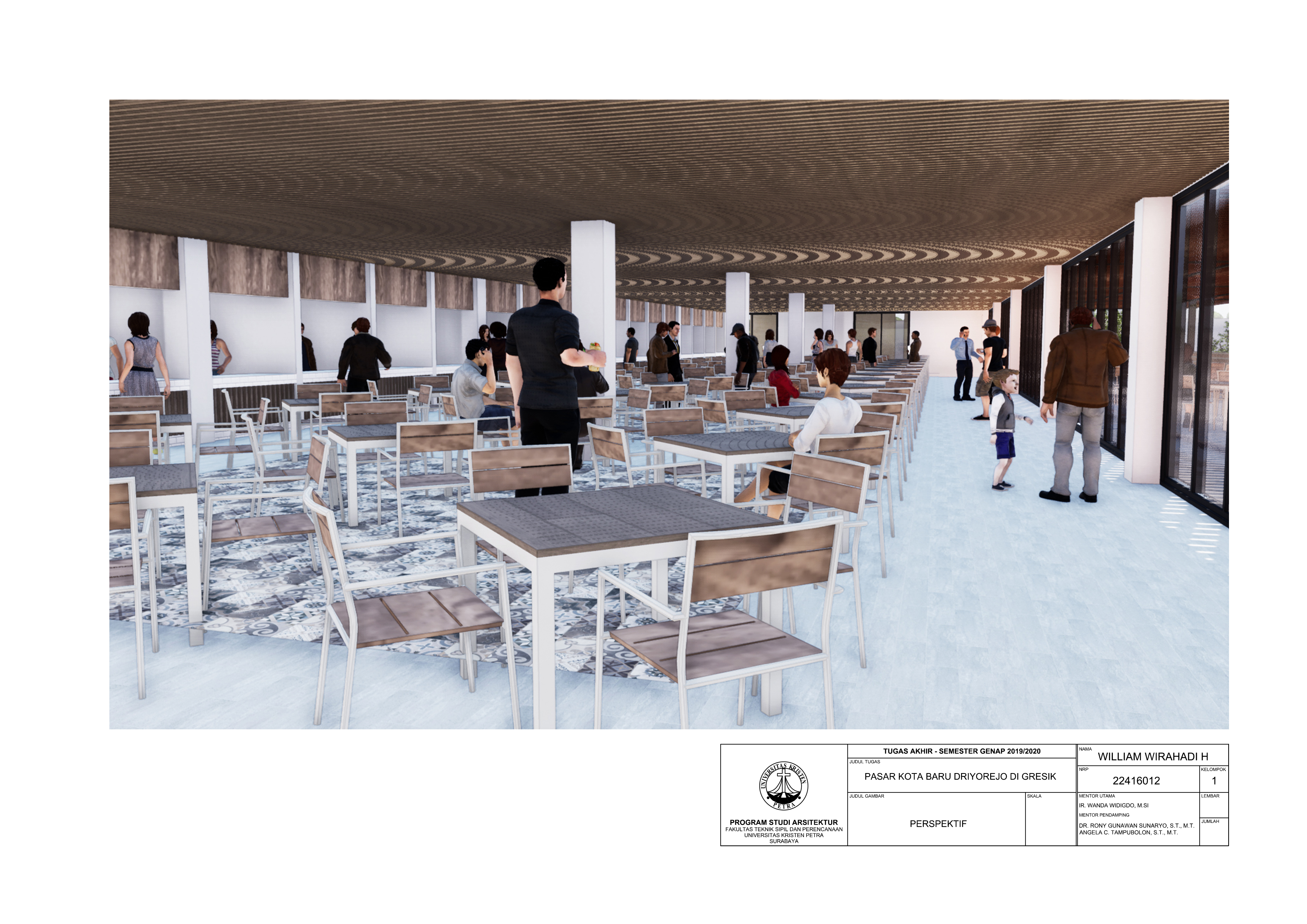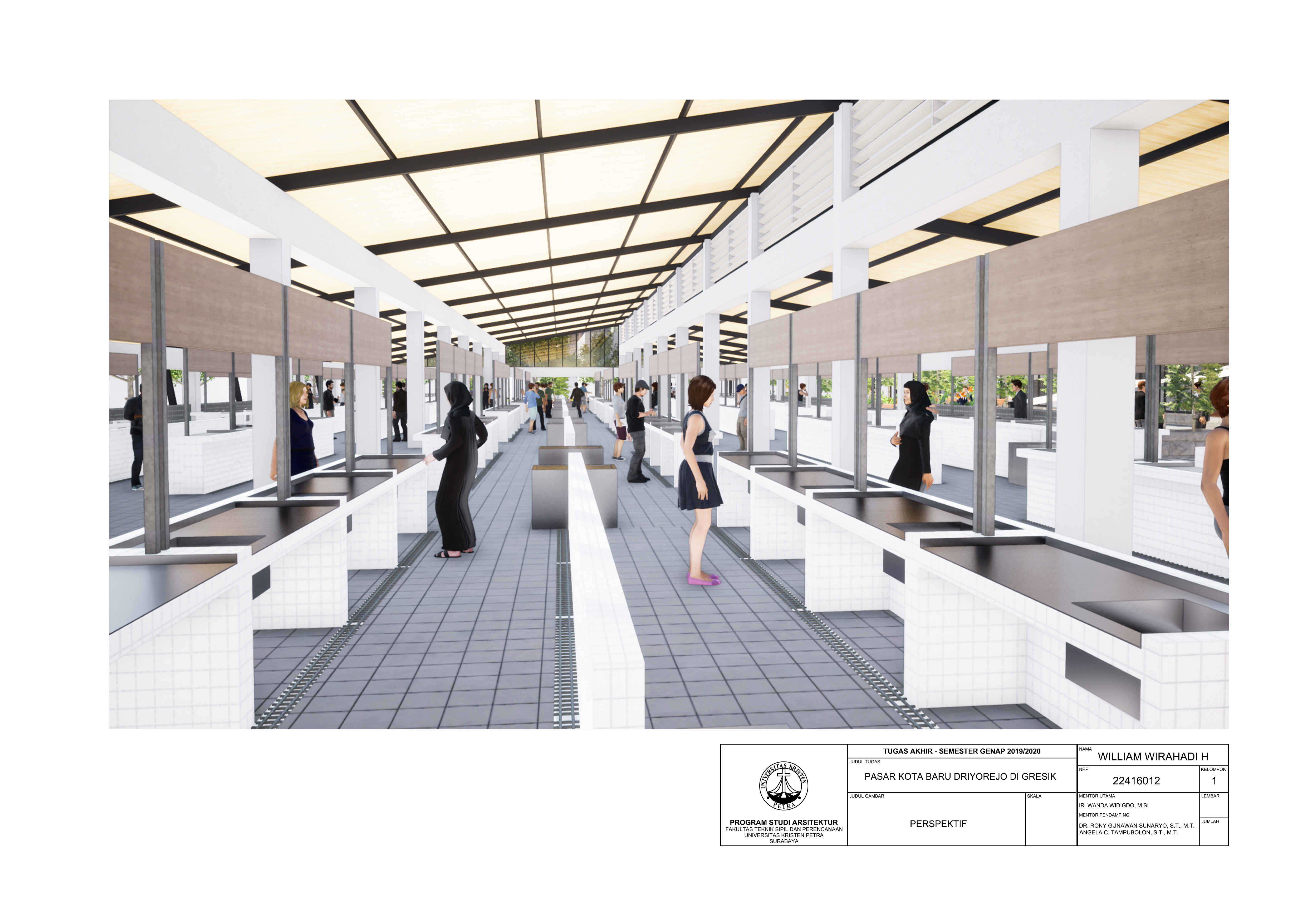 Library's collection Library's IT development CancelPerancangan fasilitas Pasar Kota Baru Driyorejo ini didasari dengan kondisi daerah setempat yang masih belum memiliki fasilitas pasar. Hal ini mengakibatkan kegiatan jual beli bahan pokok masyarakat dilakukan di tepi jalan yang ada di Kota Baru Driyorejo ini yang tentunya mendatangkan ketidaknyamanan bagi para pengguna jalan. Fasilitas pasar ini direncanakan sebagai pasar yang modern dan mandiri dalam mengolah limbah yang dihasilkan. Pendekatan yang digunakan adalah pendekatan sistem, terutama sistem sirkulasi untuk menciptakan sirkulasi pengguna yang efektif. Kemudian sistem – sistem lainnya yang mendukung proses perancangan yaitu sistem spasial, struktur, fasad, pencahayaan, penghawaan, utilitas, dan mekanikal elektrikal. Pendalaman desain yang dipilih adalah pendalaman karakter ruang untuk menciptakan pasar yang tidak hanya sebagai sarana jual beli namun juga sebagai tempat terjadinya interaksi sosial masyarakat.