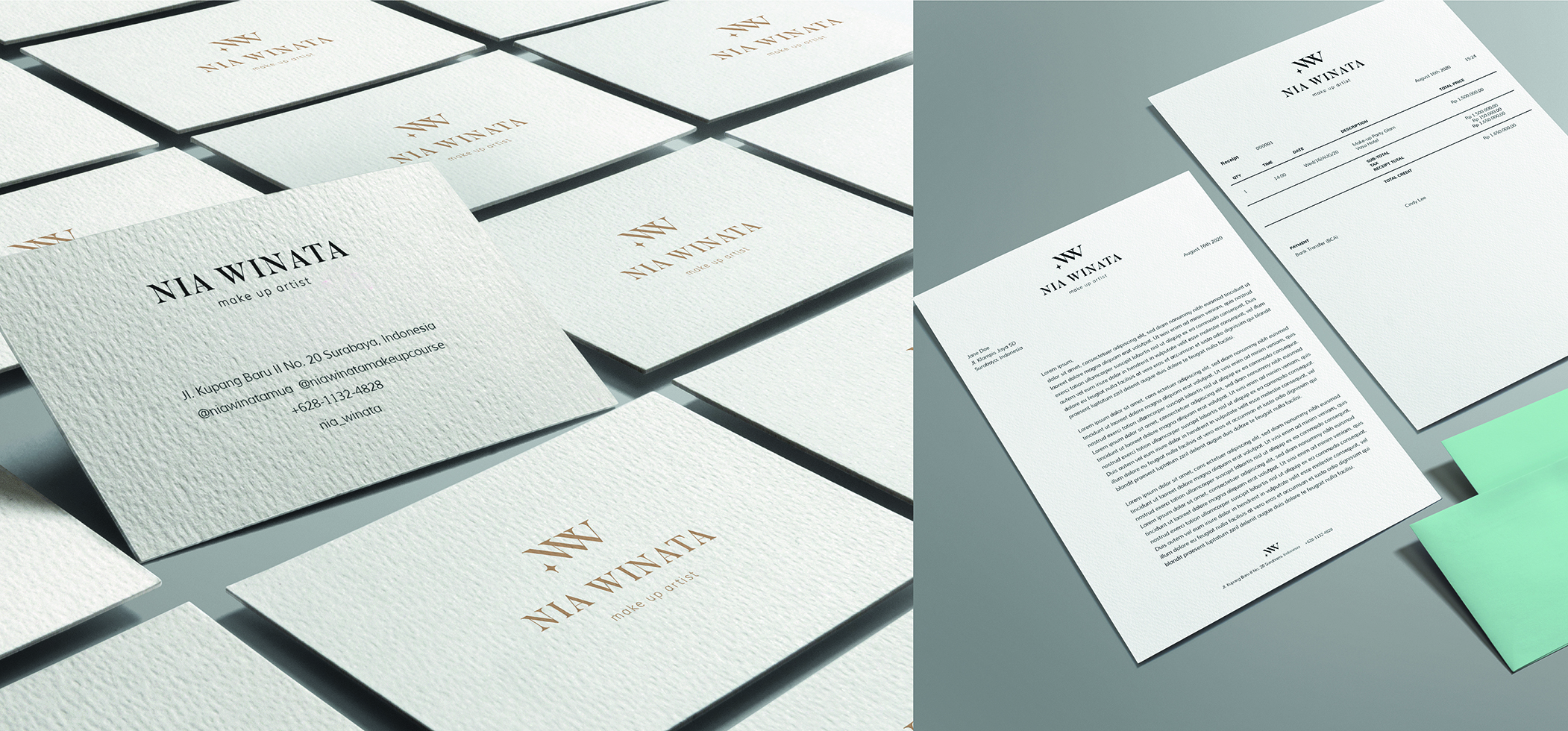 Library's collection Library's IT development CancelNia Winata adalah seorang make-up artist (MUA) Surabaya yang telah eksis sejak tahun 2016 yang didirikan oleh Margaretha Nia Winata sendiri. Nia memiliki kelebihan pada servisnya dari ujung rambut hingga ujung kaki, kemampuannya yang detail, serta kepribadiannya yang suka berterus terang. Persaingan yang ketat dalam dunia make-up artist dikarenakan jumlah kompetitor yang terus bertambah sehingga diperlukannya personal branding yang mengkomunikasikan dan menonjolkan citra Nia Winata MUA. Hal tersebut berguna agar Nia dapat terus bersaing dengan kompetitornya. Adapun media yang akan dirancang yaitu corporate identity yang telah di-branding, dan media pendukung lainnya seperti merchandise dan media sosial.