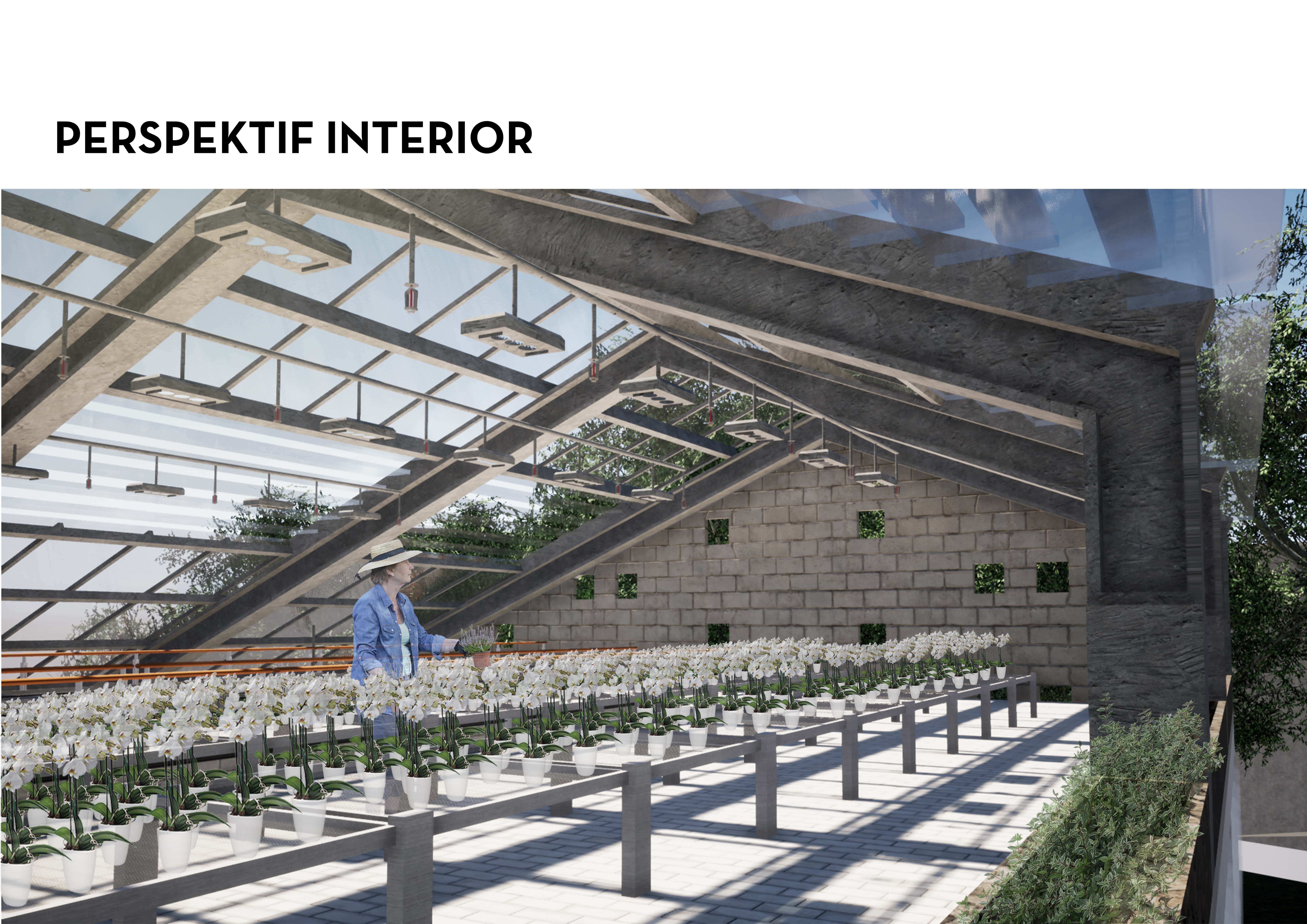 Library's collection Library's IT development CancelFasilitas Pembudidayaan Anggrek di Batu merupakan sebuah perancangan fasilitas yang bertujuan untuk membudidayakan anggrek-anggrek yang ada di Indonesia. Fasilitas ini diperuntukkan bagi petani anggrek di Batu, wisatawan, dan pembeli anggrek. Fasilitas ini terdiri dari area pembudidayaan, area eduwisata, dan area pengemasan. Area pembudidayaan yang bertujuan untuk membudidayakan anggrek terdiri dari laboratorium, area pengolahan media tanam, greenhouse, dan nursery. Sedangkan area eduwisata terdiri dari galeri dan area pembelajaran, serta area pembudidayaan yang terbatas. Area pengemasan merupakan area yang berfungsi untuk mengemas anggrek yang akan dikirimkan keluar. Adapun anggrek Indonesia memiliki habitat yang beragam, yang dipengaruhi oleh perbedaan penyinaran matahari, kecepatan aliran udara, temperatur, dan kelembaban. Penyinaran merupakan faktor utama yang paling membedakan habitat setiap anggrek. Oleh sebab itu, untuk dapat menyatukan habitat anggrek tersebut, diperlukan sebuah fasilitas yang mampu untuk memberikan penyinaran maupun pembayangan untuk kebutuhan setiap anggrek.