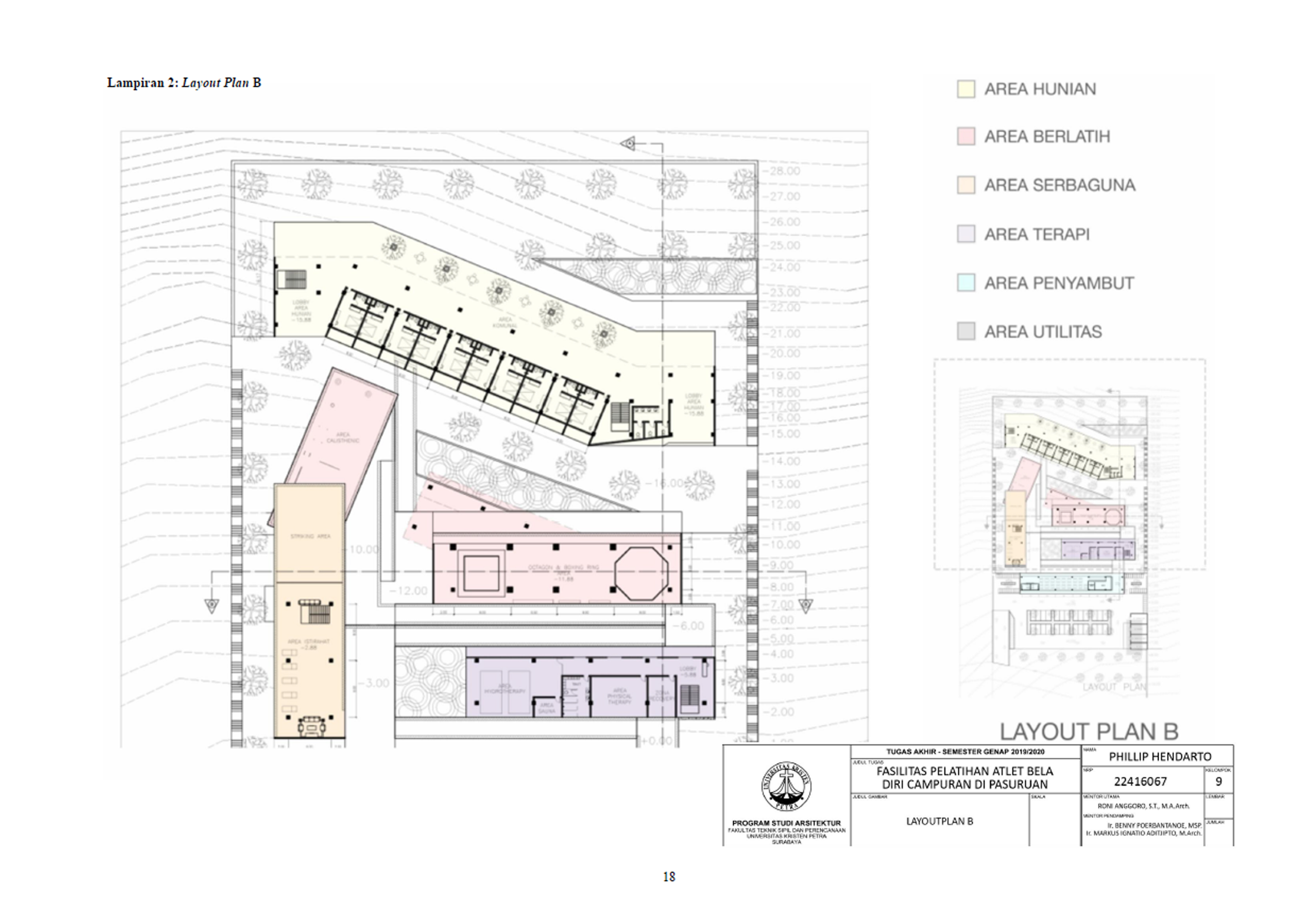 bela diri yang berkaitan dengan suasana ruang, zoning, sirkulasi, dan respon bangunan terhadap