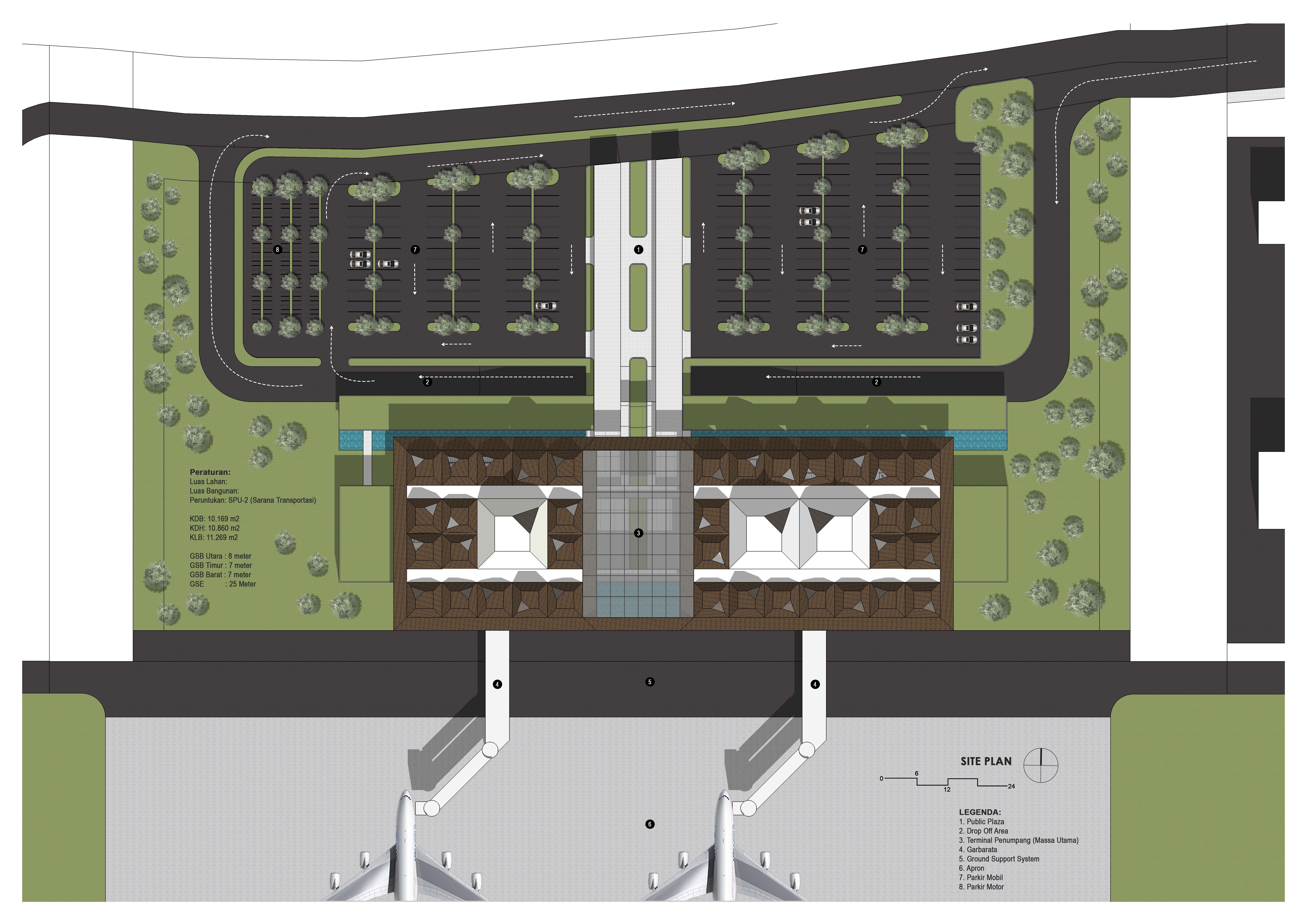 Library's collection Library's IT development CancelTerminal Penumpang Bandar Udara Domestik Ngloram di Blora merupakan fasilitas publik bagi pengguna moda transportasi udara yang bertujuan bermobilisasi menuju atau dari Blora. Latar belakang dari proyek ini adalah adanya rencana dari pemerintah pusat melalui kementerian perhubungan menetapkan pengadaan Bandar Udara Ngloram, pemerintah juga mengharapkan dengan dengan dibangunnya Bandar Udara Ngloram dapat menigkatkan percepatan pembangunan serta menciptakan kantong-kantong perekonomian baru, selain itu adanya potensi besar untuk mengangkat identias Blora. Mengingat fungsi utama bandar udara yang dapat mengakomodasi kegiatan operasional, komersial, dan administrasi maka perancangan bangunan menggunakan pendekatan sistem (yang di titik beratkan pada sistem sirkulasi dan spasial), selain itu guna mengangkat identitas arsitektur setempat, digunakan juga pendekatan neo-vernakular. Untuk memperkuat pesan dan kesan pengguna terhadap bangunan maka digunakan pendalaman sequence sehingga pengguna dapat merasakan pengalaman ruang yang kuat.