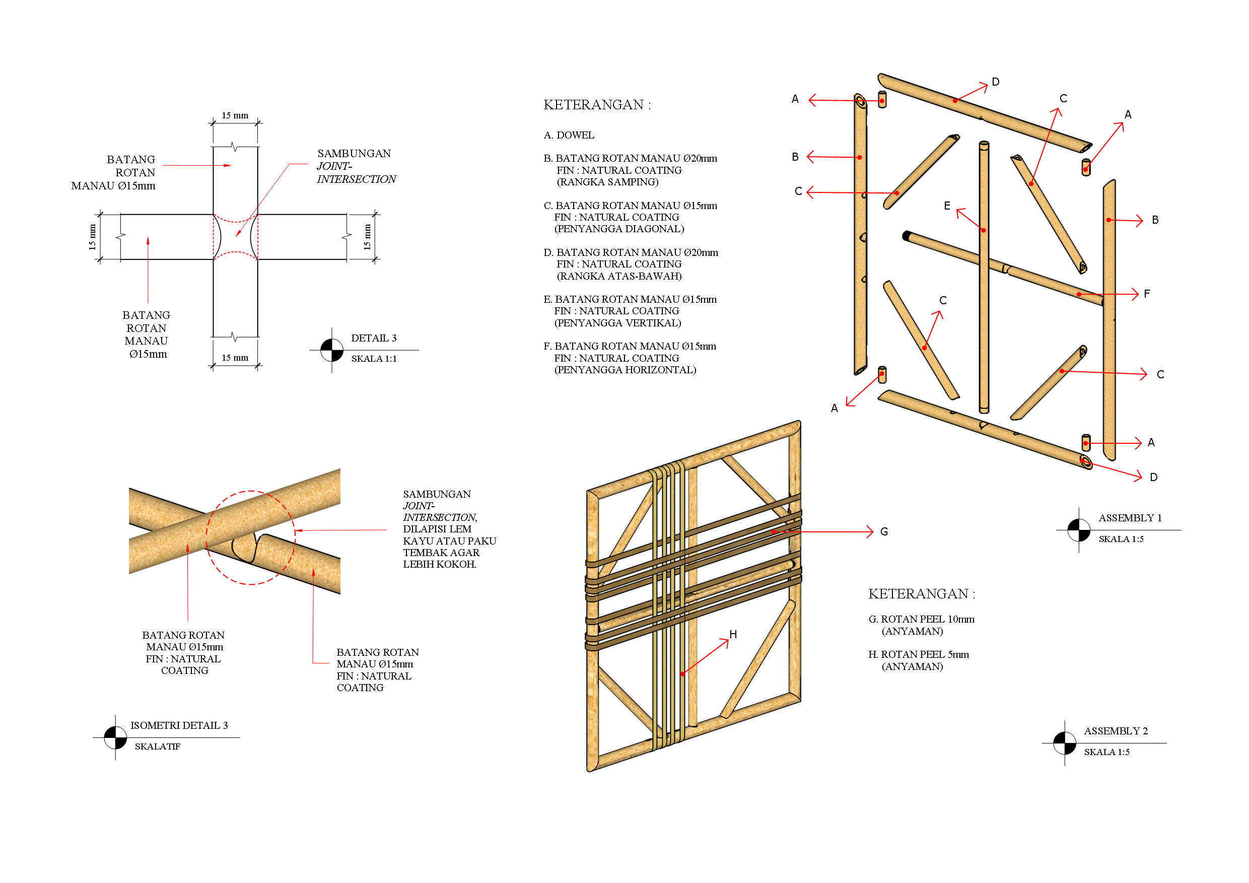 Library's collection Library's IT development CancelSeiring dengan perkembangan gaya desain produk yang semakin modern, pandangan masyarakat Indonesia, khususnya masyarakat perkotaan, terhadap produk anyaman semakin menurun. Adanya anyaman dinilai memberikan kesan yang ‘berat’ dan kuno pada suatu produk. Hal ini berdampak pada nilai ekonomis produk anyaman yang semakin rendah dan menyebabkan keberadaan pengrajin anyaman yang semakin tidak dibutuhkan. Untuk itu, diutuhkannya solusi desain yang tepat agar dapat meningkatkan minat masyarakat perkotaan terhadap produk rotan. Dengan memanfaatkan metode design thinking, perancangan panel anyaman interior dekoratif dengan memanfaatkan pola ilusi optikal merupakan salah satu alternatif desan yang dapat menghasilkan variasi pola anyaman yang baru dan dapat memberikan kesan yang unik saat diaplikasikan dalam sebuah ruang.
