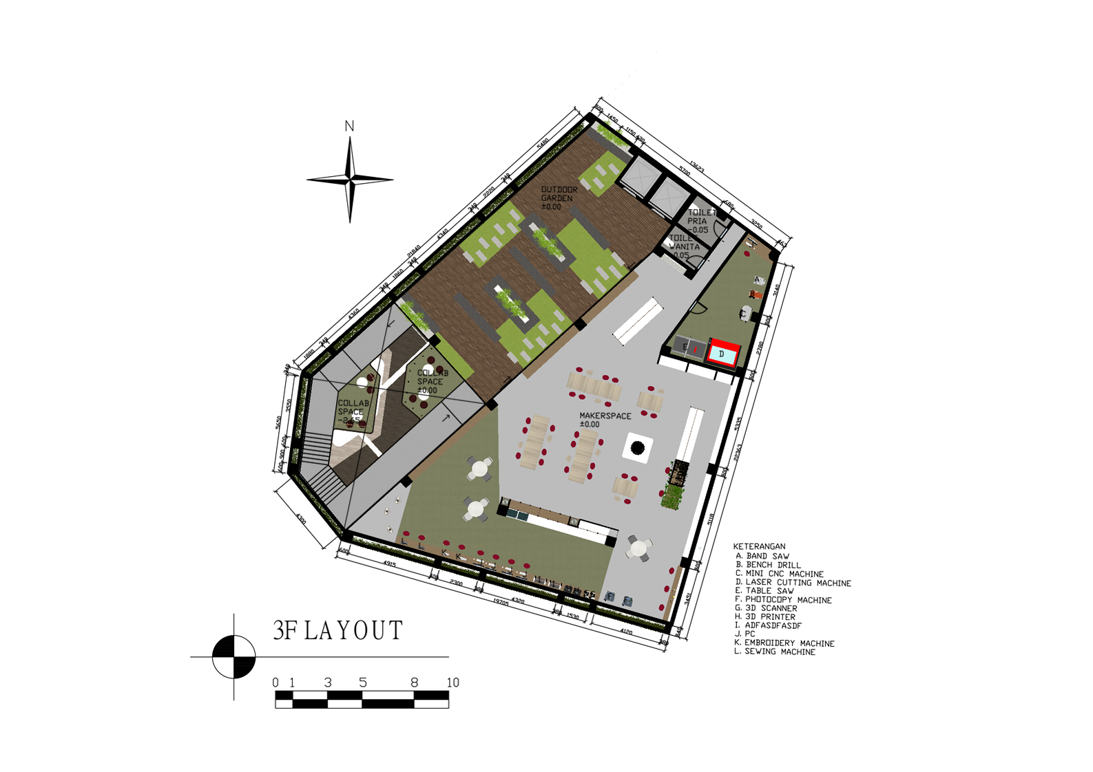 Library's collection Library's IT development CancelPecinan di kota Surabaya pernah menjadi ikon dari perdagangan yaitu pada masa pemerintahan kolonial Belanda. Tempat ini dahulu ramai dari pagi hingga malam, mulai jual-beli barang, jasa, kuliner, dll. namun sekarang sudah tidak sehidup jaman dahulu. Meskipun masih ada aktivitas, Pecinan Surabaya sekarang lebih seperti distrik mati, terdapat banyak bangunan terbengkalai, generasi muda memilih untuk pindah ke daerah lain yang lebih berkembang, dan kawasan sudah tidak terlihat seperti Pecinan. Tujuan perancangan ini adalah untuk menawarkan solusi menghidupkan kembali kawasan ini dengan menarik generasi muda untuk datang dan mendukung aktivitas orang-orang di sekitar Pecinan saat ini. Sehubungan dengan budaya bekerja saat ini, Maker dan Coworking space merupakan program yang tepat untuk menarik anak muda datang juga dapat menarik berbagai pedagang dan mendukung bisnis lokal. Metode yang digunakan adalah design thinking dengan tiga tahapa utama yaitu inspiration, ideation, dan implementation. Konsep perancangan ini adalah Chinese Garden. Hasil perancangan ini memiliki target produk berupa gambar presentasi dan gambar kerja. Target luaran lain sebagai pendukung berupa virtual reality, buku penjelasan karya, dan video presentasi.