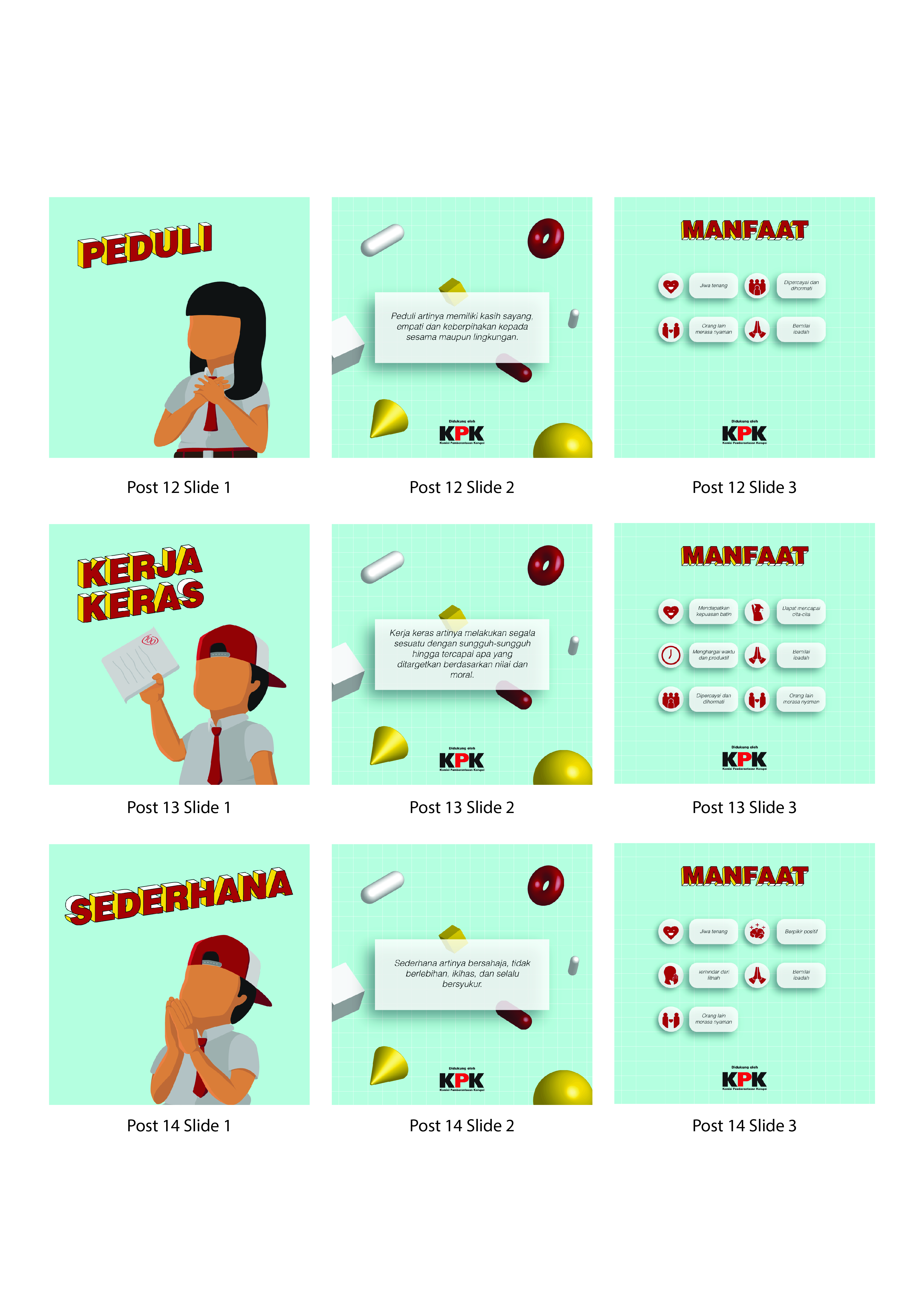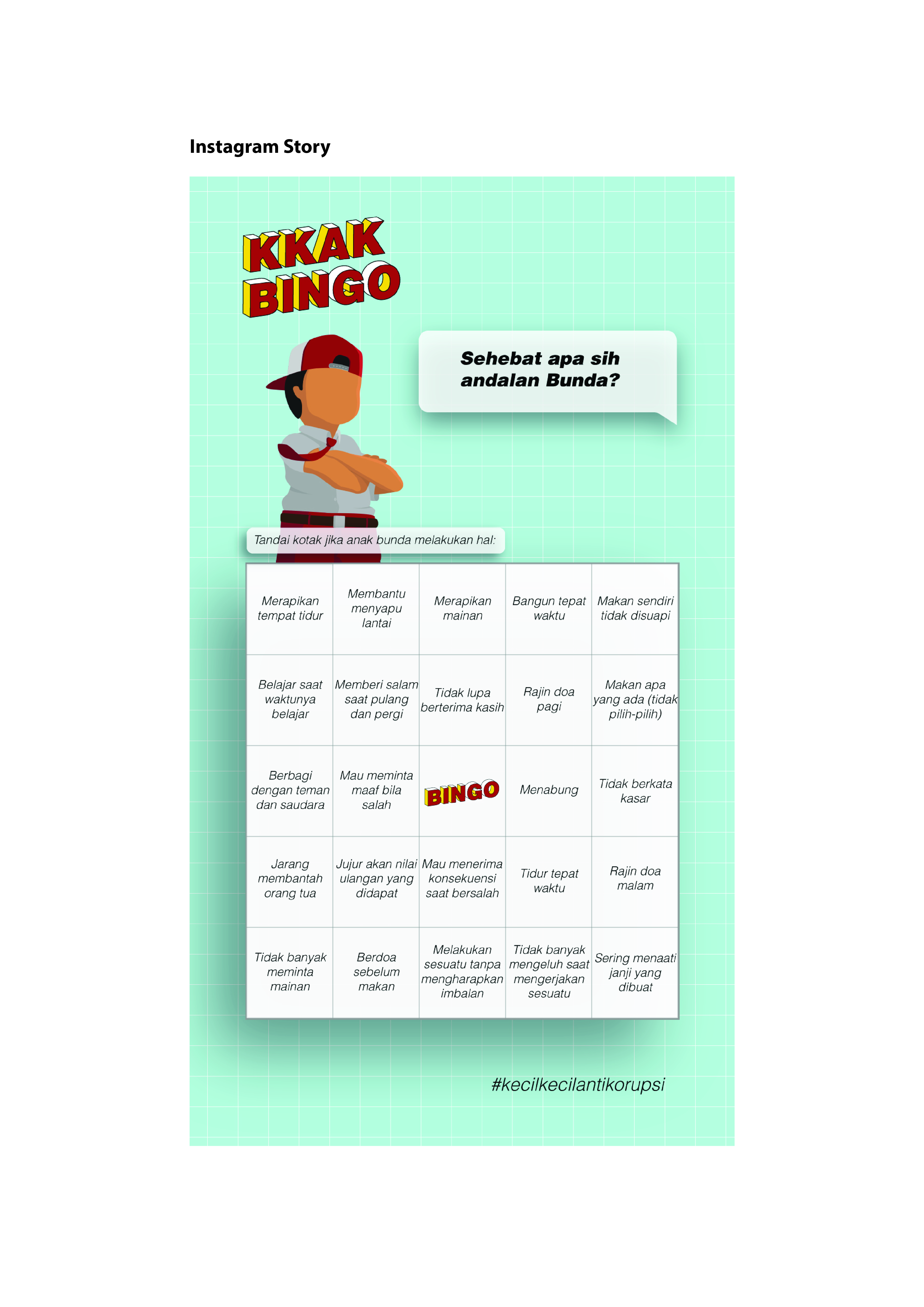 Library's collection Library's IT development CancelIklan layanan masyarakat ini merupakan salah satu upaya untuk mengajak para orang tua untuk memberikan pendidikan anti korupsi pada anaknya sejak dini. Iklan layanan masyarakat ini memperkenalkan sembilan nilai-nilai anti korupsi. Setiap nilai menggunakan ilustrasi seorang anak sekolah dasar yang menggambarkan nilai tersebut. Diharapkan dengan visualisasi tersebut, para orang tua dapat mengajarkan nilai-nilai anti korupsi. Dengan adanya perancangan iklan layanan masyarakat ini diharapkan dapat meningkatkan generasi muda yang berkarakter anti korupsi.