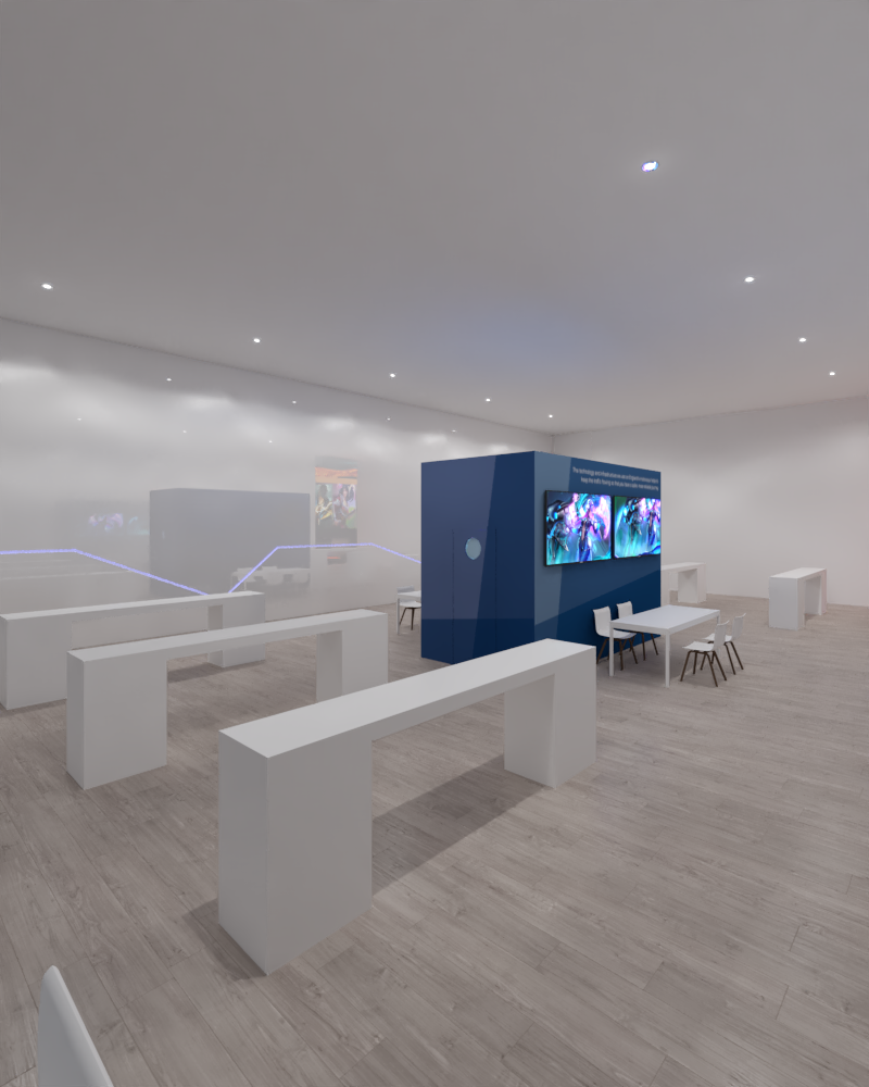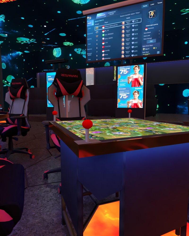 Library's collection Library's IT development CancelPada generasi sekarang, game merupakan suatu yang tidak lepas dalam kehidupan sehari-hari. Game menjadi hobby dan juga sampai bisa menghasilkan bagi banyak orang. Salah satu game yang sangat berkembang pesat di Indonesia adalah game Mobile Legend : Bang- Bang (MLBB). Game berplatform Mobile ini memiliki suatu komunitas game sendiri yang dibentuk oleh perusahaannya yaitu Moonton yang dikenal dengan nama Community Hero (CH). Namun sayangnya belum ada fasilitas yang mewadahi aktivitas komunitas resmi ini. Sehingga dibutuhkan suatu desain ruang yang mewadahi aktivitas sekaligus branding dari komunitas CH tersebut. Metode perancangan yang dipakai adalah metode desain thinking yaitu understand, eksplore, materialize. Desain yang dihasilkan merupakan desain interior game-café yang bertemakan alam semesta yang ditunjukan dengan kesan futuristik. Hal yang membuat desain terlihat futuristik adalah pemilihan material, perlakuan material dan lighting serta perlakuan ilusi cermin. Desain ini juga memperhatikan Kebutuhan Utama komunitas dan menyediakan fasilitas yang memenuhi.