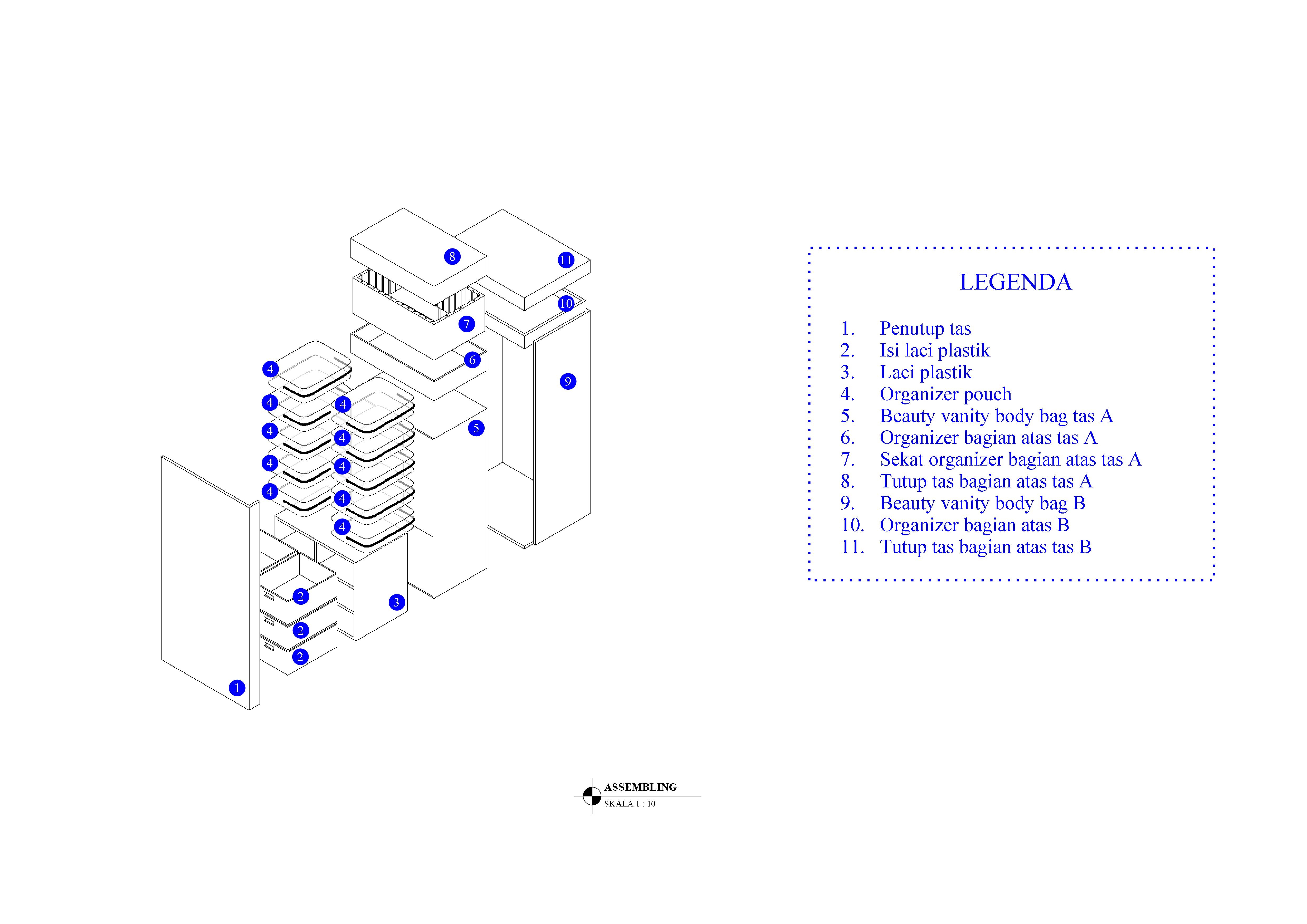 Library's collection Library's IT development CancelBerkembangnya dunia tata rias membuat profesi penata rias semakin diminati dan dibutuhkan. Penata rias merupakan profesi yang memerlukan mobilitas serta fleksibilitas yang tinggi untuk memenuhi kebutuhan konsumen. Bekerja secara tepat waktu dan banyak berpindah tempat merupakan tuntutan bagi penata rias. Kegiatan tata rias memerlukan banyak peralatan serta produk kecantikan yang rentan terbentur. Dalam menjawab kebutuhan tersebut, desainer memutuskan untuk merancang beauty vanity yang diharapkan dapat memenuhi dan mendukung aktivitas penata rias. Konsep “Form Follow Function” berfokus pada pemenuhan fungsi dalam bentuk serta desain yang dikemas dalam produk portable. Metode perancangan yang digunakan yaitu berupa pengumpulan data primer dan sekunder. Data primer diperoleh melalui wawancara dan observasi, sedangkan data sekunder diperoleh dari data literatur yang berkaitan dengan perancangan. Data yang terkumpul dianalisa dan dilanjutkan dengan proses perancangan, serta diakhiri dengan realisasi produk. Hasil produk Perancangan Portable Beauty Vanity Multifunction sudah mencapai nilai-nilai fungsi. Nilai-nilai fungsi yang tercapai yaitu ringan, ergonomis, serta mendukung aktivitas kerja pengguna (MUA) dan client (yang dirias).