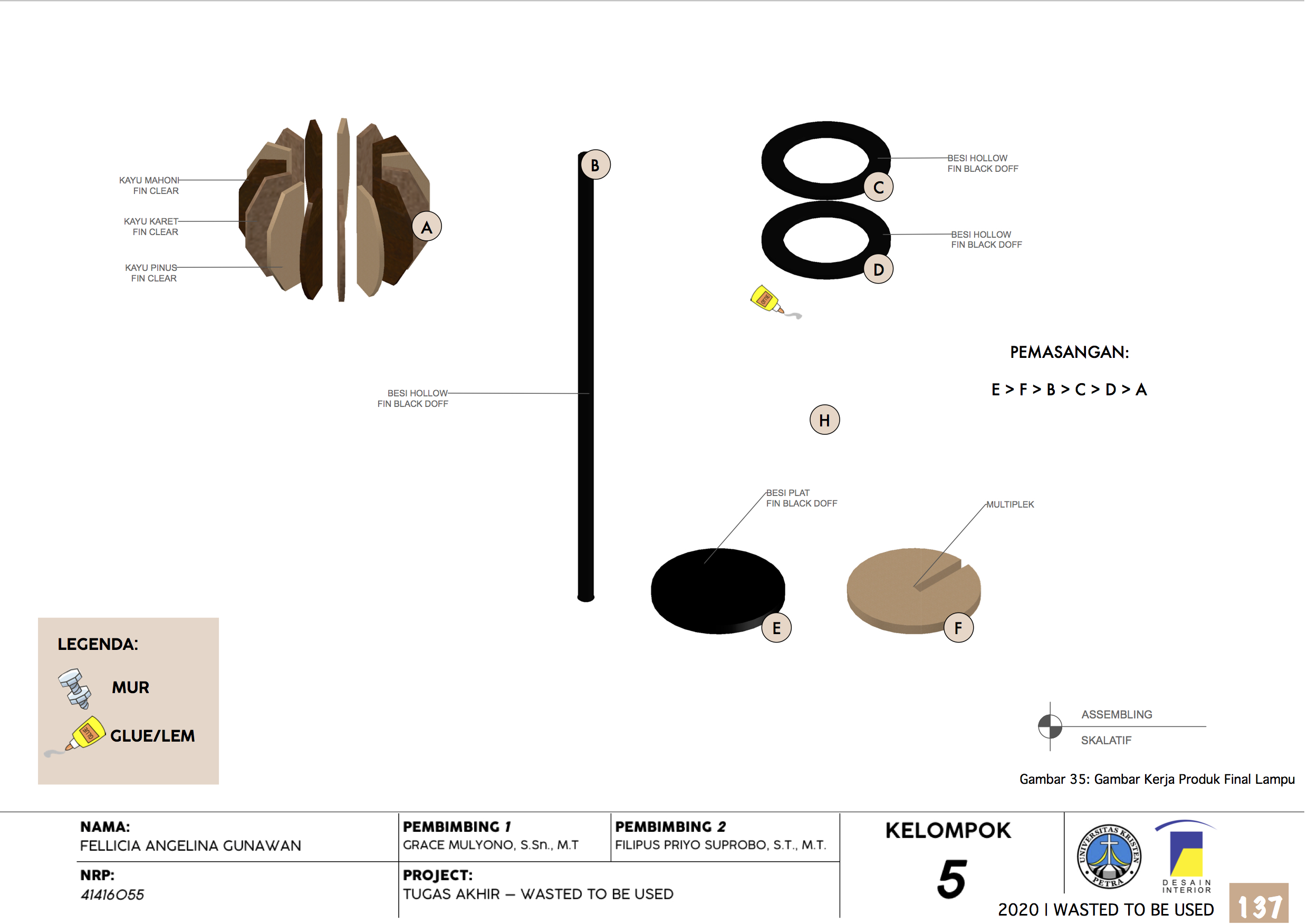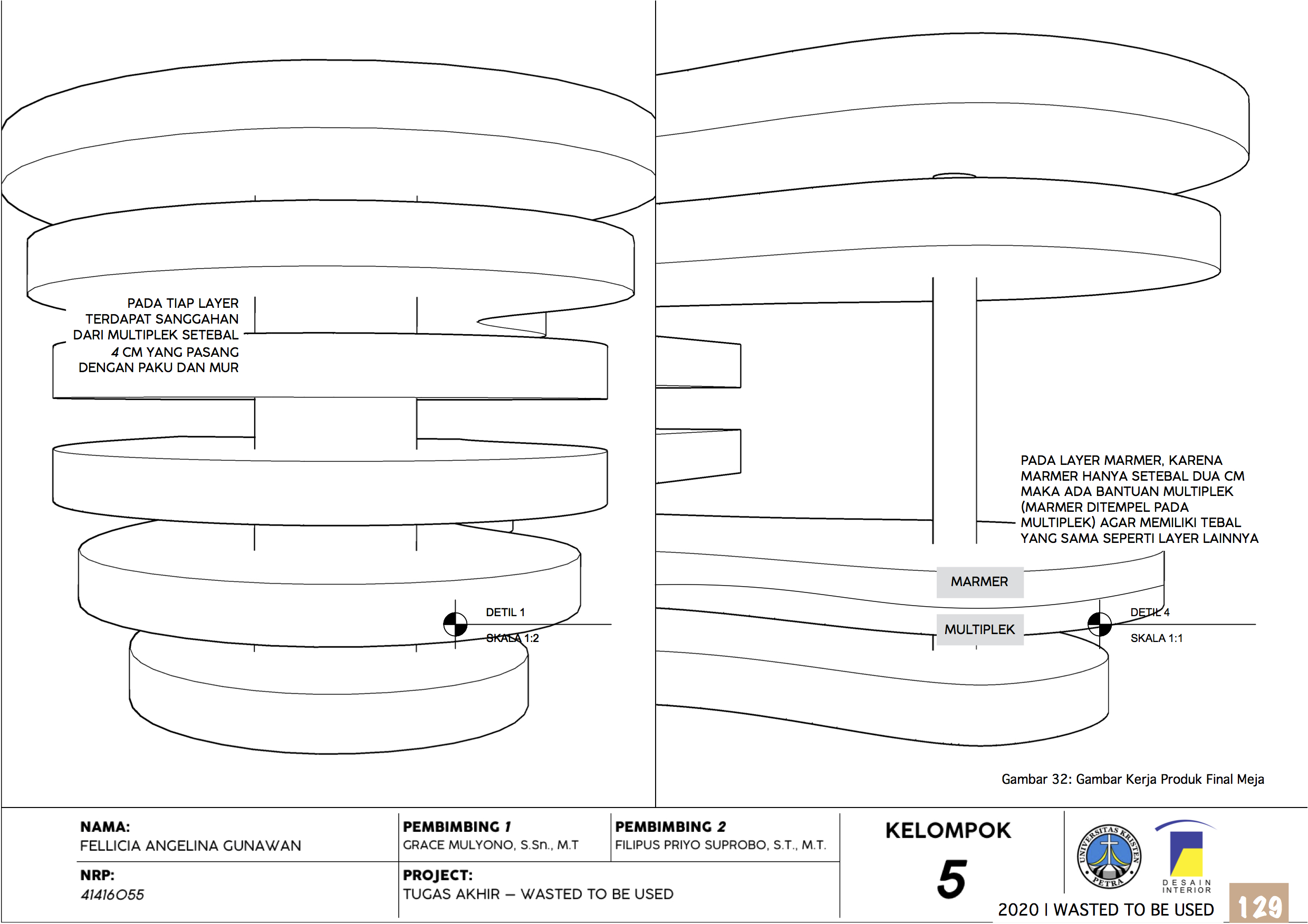 Library's collection Library's IT development CancelProduk Interior mengalami peningkatan order dari tahun ke tahunnya seiring dengan pertumbuhan penduduk yang terus meningkat. Setiap pembuatan produk, pasti akan menghasilkan limbah produksi. Limbah produksi yang dihasilkan berupa material sisa produksi. Material sisa produksi ini, masih memiliki kualitas yang baik dan memiliki peluang untuk dikembangkan kembali menjadi produk interior. Selain menambah nilai estetik, nilai ekonomi dari material sisa ini juga dapat meningkat. Oleh karena itu, perancangan kali ini memaanfaatkan material sisa produksi ini untuk di olah kembali menjadi produk interior. Perancangan ini bertujuan untuk mengurangi limbah produksi dan menambah nilai dari material sisa tersebut. Perbedaan perancangan ini dengan perancangan-perancangan sebelumnya adalah konsep “mix material”, dimana perancangan ini tidak hanya menggunakan satu jenis kayu sisa tetapi beberapa jenis kayu solid. Selain menggunakan beberapa jenis kayu sisa, perancangan ini juga menggunakan material batu alam yaitu marmer yang sedang populer dikalangan masyarakat kontemporer. Perancangan ini mendapatkan material sisa dengan bekerja sama dengan perusahaan produk interior dan perusahaan batu alam di Surabaya. Dengan adanya perancangan ini, material sisa limbah produksi dapat dimanfaatkan lebih baik lagi dikemudian hari.