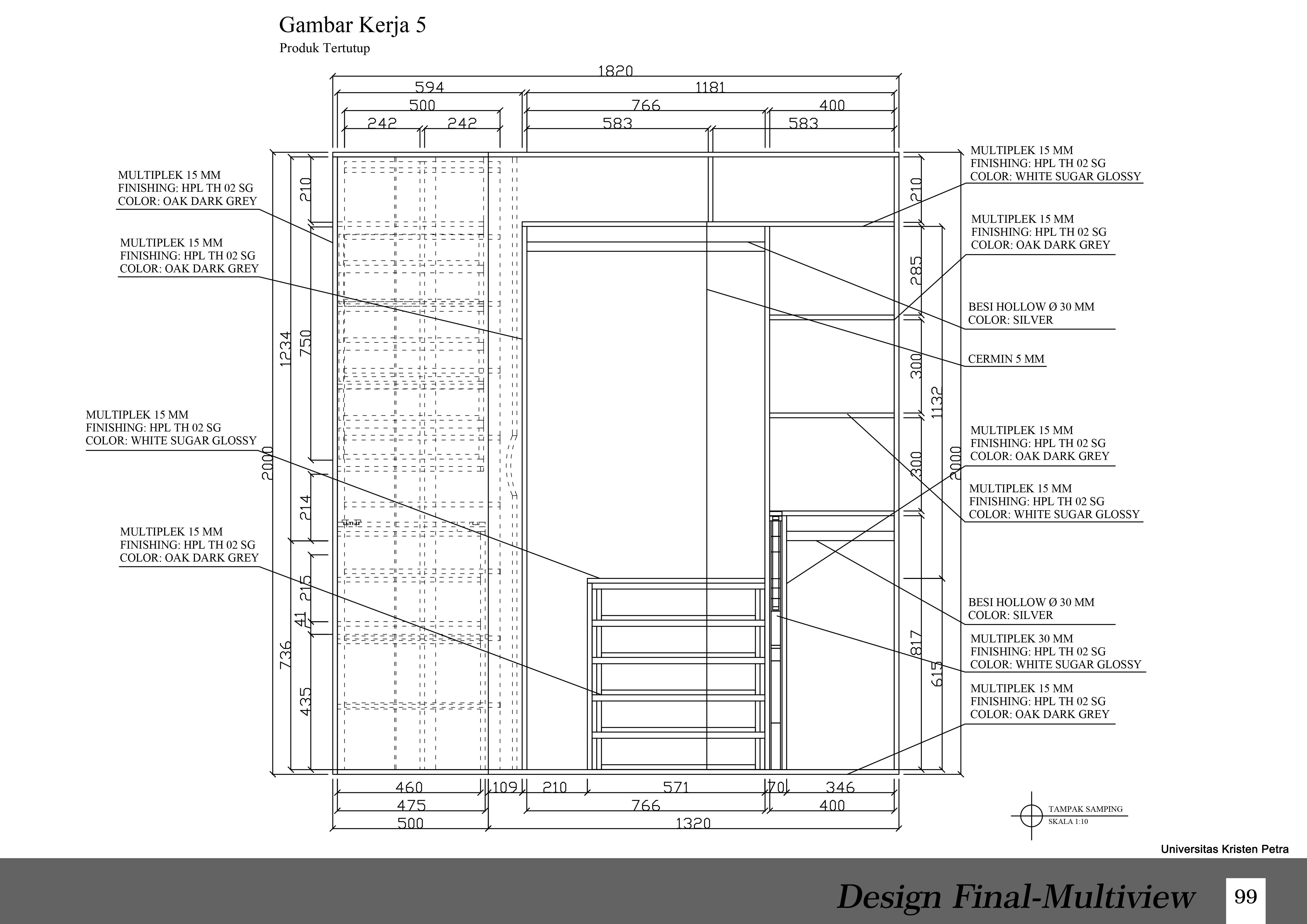 Library's collection Library's IT development CancelSemakin sempitnya lahan akibat pertumbuhan penduduk yang semakin pesat menyebabkan tidak sedikit penduduk menjadikan rumah-rumah yang berukuran kecil, apartemen bahkan kos-kosan sebagai tempat tinggal. Hal ini menyebabkan terbatasnya ruang di dalam rumah termasuk kamar tidur. Setiap orang memiliki aktivitas dan kebutuhan ruang yang berbeda-beda di dalam kamar tidur, tentunya mahasiswa desain memiliki kebutuhan yang khusus lebih dari orang normal. Saat ini, perabot yang dapat memenuhi kebutuhan aktivitas mahasiswa desain dalam ruangan yang terbatas tidaklah banyak sehingga membuat ruang kerja mahasiswa desain dalam kamar tidur menjadi tidak efisien. Maka dari itu perancangan ini dibuat untuk memenuhi kebutuhan aktivitas mahasiswa desain dalam kamar tidur. Mulai dari melakukan observasi, survei, wawancara, yang kemudian dianalisa sehingga dapat ditemukannya ide-ide yang kemudian di diskusikan dan disempurnakan sehingga mendapatkan desain produk akhir. Desain tersebut diwujudkan dalam skala 1:1 sehingga dapat diuji dan disempurnakan lagi. Hingga fungsi perabot dapat memenuhi kebutuhan mahasiswa desain dalam kamar tidur tanpa membatasi ruang gerak mahasiswa desain.