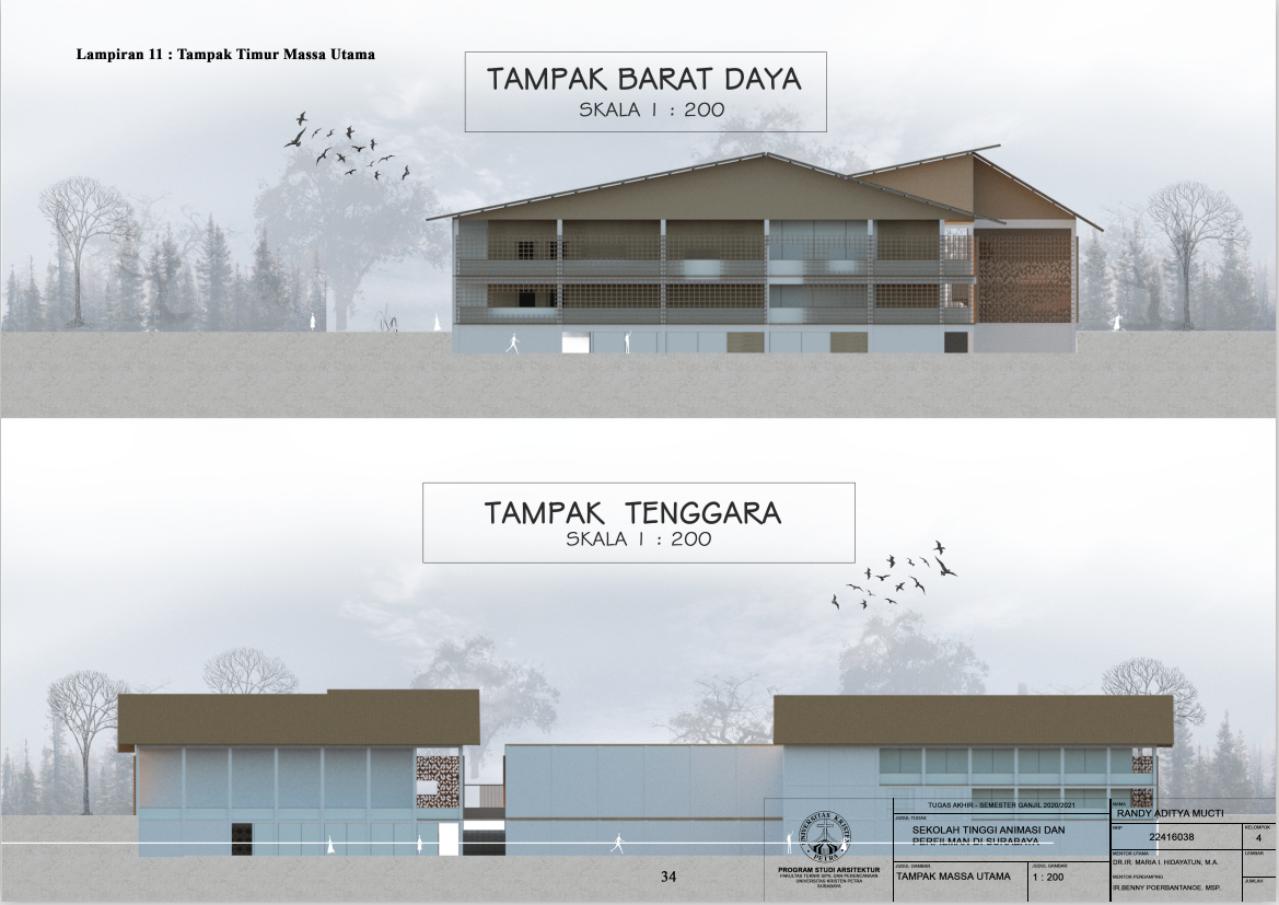 Library's collection Library's IT development CancelAda beberapa negara dengan perkembangan industri perfilman dan animasi yang sudah baik seperti Amerika Serikat, Jepang, Korea Selatan, Britania Raya dll. Negara negara ini memiliki kelebihan pada kualitas maupun kuantitas di bidang pendidikan yang menyediakan program pembelajaran animasi dan perfilman karena kemudahan akses dan merata. Sedangkan di Indonesia, sebagian besar fasilitas itu terpusat di Jabodetabek dan sebagian di provinsi Jawa Barat, bahkan provinsi provinsi lain di pulau Jawa tidak memiliki jumlah yang sepadan, terutama untuk daerah di luar pulau Jawa. Oleh karena itu, laporan tugas akhir ini mengusulkan sebuah rancangan desain Sekolah Tinggi Animasi dan Perfilman yang terletak di Kota Surabaya, Jawa Timur. Desain sekolah tinggi ini diharapkan dapat menampung baik kegiatan kuliah teori dan kegiatan praktek pembuatan film, sehingga desain ini akan memiliki luas tanah yang cukup untuk desain ruang luar yang dapat menunjang kegiatan pengambilan film outdoor dan juga studio pembuatan film animasi. Fasad dan bentuk bangunan ini juga didesain untuk mengekspresikan arsitektur setempat dan juga memberi suasana artifisial perkampungan jawa sebagai setting atau latar belakang pada film.