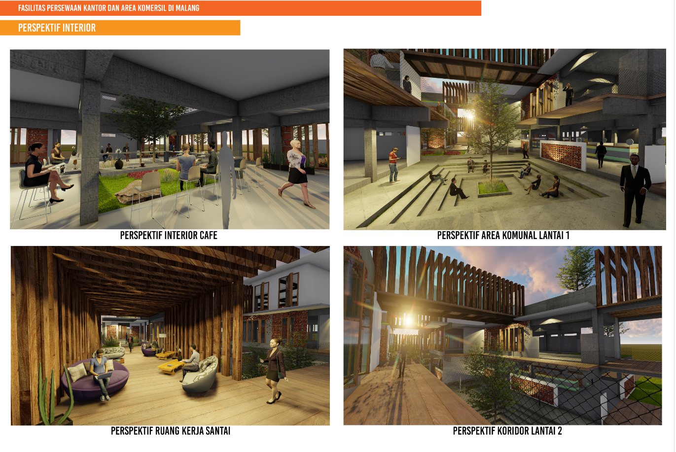 Library's collection Library's IT development CancelFasilitas persewaan kantor dan area komersial di kota Malang adalah sebuah fasilitas yang dapat mewadahi para pengusaha start-up (baru memulai usaha) di area kota Malang dan sekitarnya. Bangunan persewaan kantor dan area komersial ini di desain dengan latar belakang banyaknya jumlah perusahaan start-up di kota Malang yang belum memiliki wadah usaha yang layak. Tidak hanya ruang kerja dan kebutuhan kantor, namun, bangunan ini juga memiliki fasilitas untuk transaksi penjual dan pembeli sebagai pengusaha dan retail.