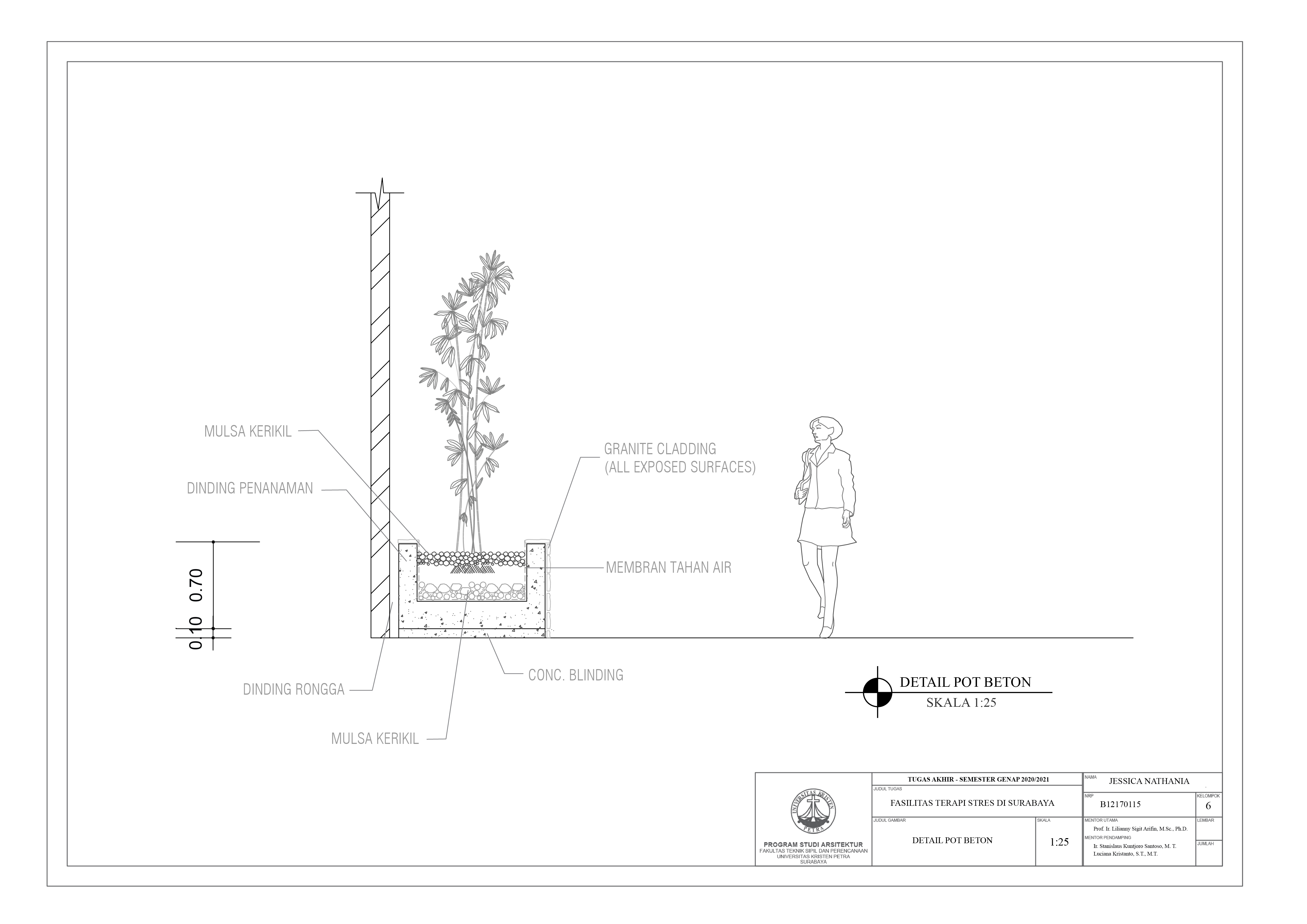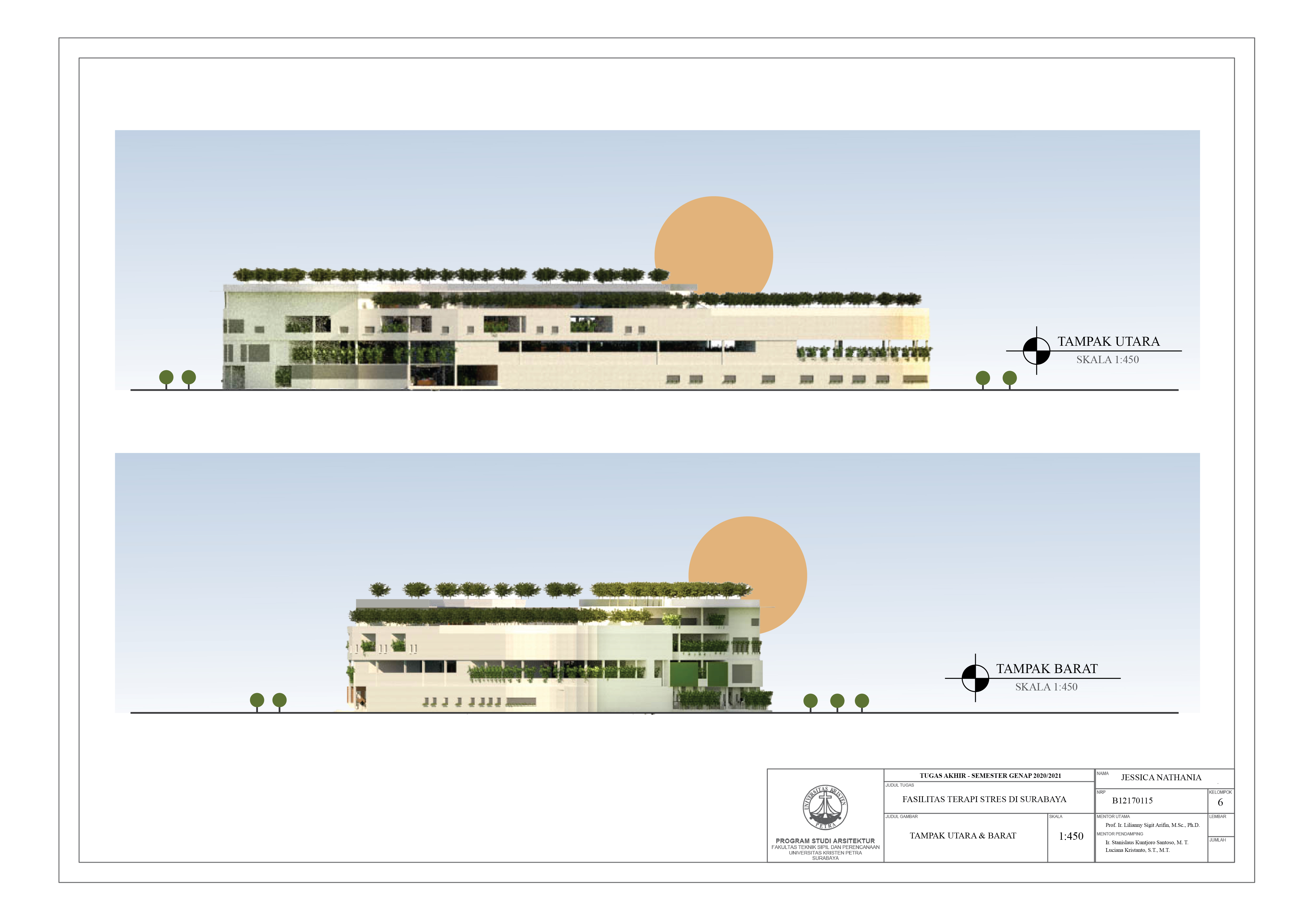 Library's collection Library's IT development CancelTerdapat 5.546 orang di Surabaya yang berusia lebih dari lima belas tahun, yang mengalami gangguan mental emosi. Gangguan mental emosi/ stres terbagi menjadi dua, yaitu stres positif (eustress) dan stres negative (distress). Stres yang diolah dalam fasilitas ini adalah distress. Mereka yang mengalami distress cenderung merasa tertekan, cemas, dan bahkan hingga mengganggu Kesehatan fisiknya. Alhasil, seseorang tersebut tidak dapat beraktivitas dengan normal dan tidak dapat bekerja secara produktif. Jika seseorang terbebas dari stress, maka seseorang tersebut akan dapat membawa dampak positif bagi sekitar dan dapat berdampak bagi orang lain. Pendekatan yang digunakan adalah pendekatan perilaku pada orang-orang yang merasakan stres. Konsep yang digunakan adalah biophilic design, dengan memilih 2 poin utama, yaitu hubungan visual dengan alam dan kehadiran air, untuk ditekankan lebih pada bangunan. Pendalaman karakter ruang pada area yoga didesain dengan adanya kolam air dan tanaman di sekeliling untuk memaksimalkan suasana tenang dan rileks.