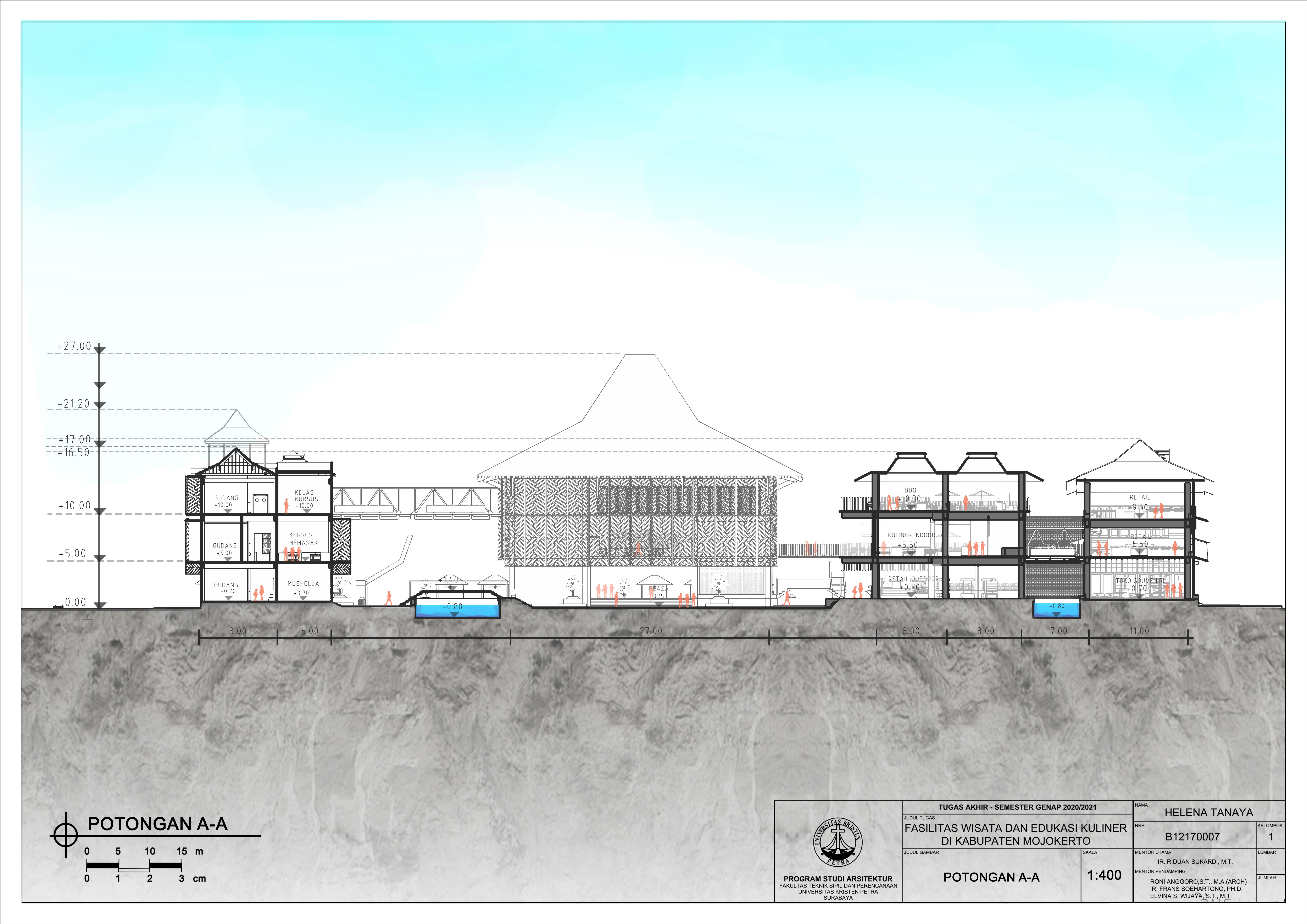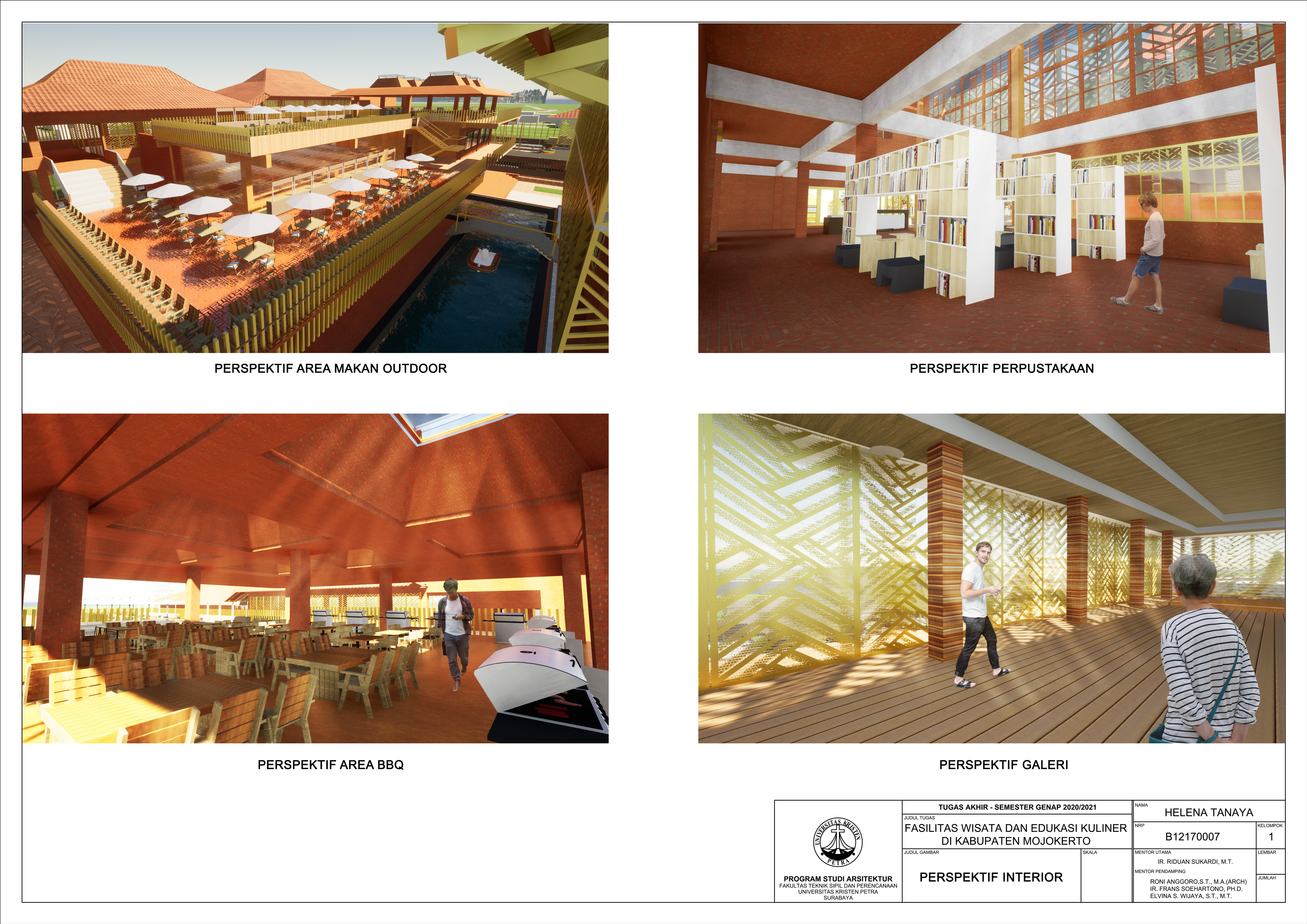 Library's collection Library's IT development CancelKabupaten Mojokerto merupakan salah satu wilayah di Jawa Timur yang potensi pariwisatanya menjadi daya tarik tersendiri di Mojokerto. Mojokerto memiliki banyak makanan menarik dan menjadi unggulan yang sering didatangi oleh wisatawan. Namun belum adanya pengembangan pada bidang pariwisata kuliner secara maksimal. Salah satunya belum adanya fasilitas wisata dan edukasi kuliner yang menunjang kebutuhan pariwisata wisata kuliner di Mojokerto. Masalah perancangan utama adalah Bagaimana rancangan fasilitas Wisata dan Edukasi Kuliner di Kabupaten Mojokerto berperan sebagai tempat wisata dan kelestarian budaya kuliner di wilayah tersebut. Pendekatan desain yang dipilih adalah vernakular, dengan membuat fasilitas wisata dan edukasi kuliner yang memiliki tatanan dan bentuk desain yang menunjang kebudayaan majapahit dengan penataan massa, unsur lokal, bentuk yang menunjang, sehingga mampu merepresentasikan identitas khas mojokerto secara modern.