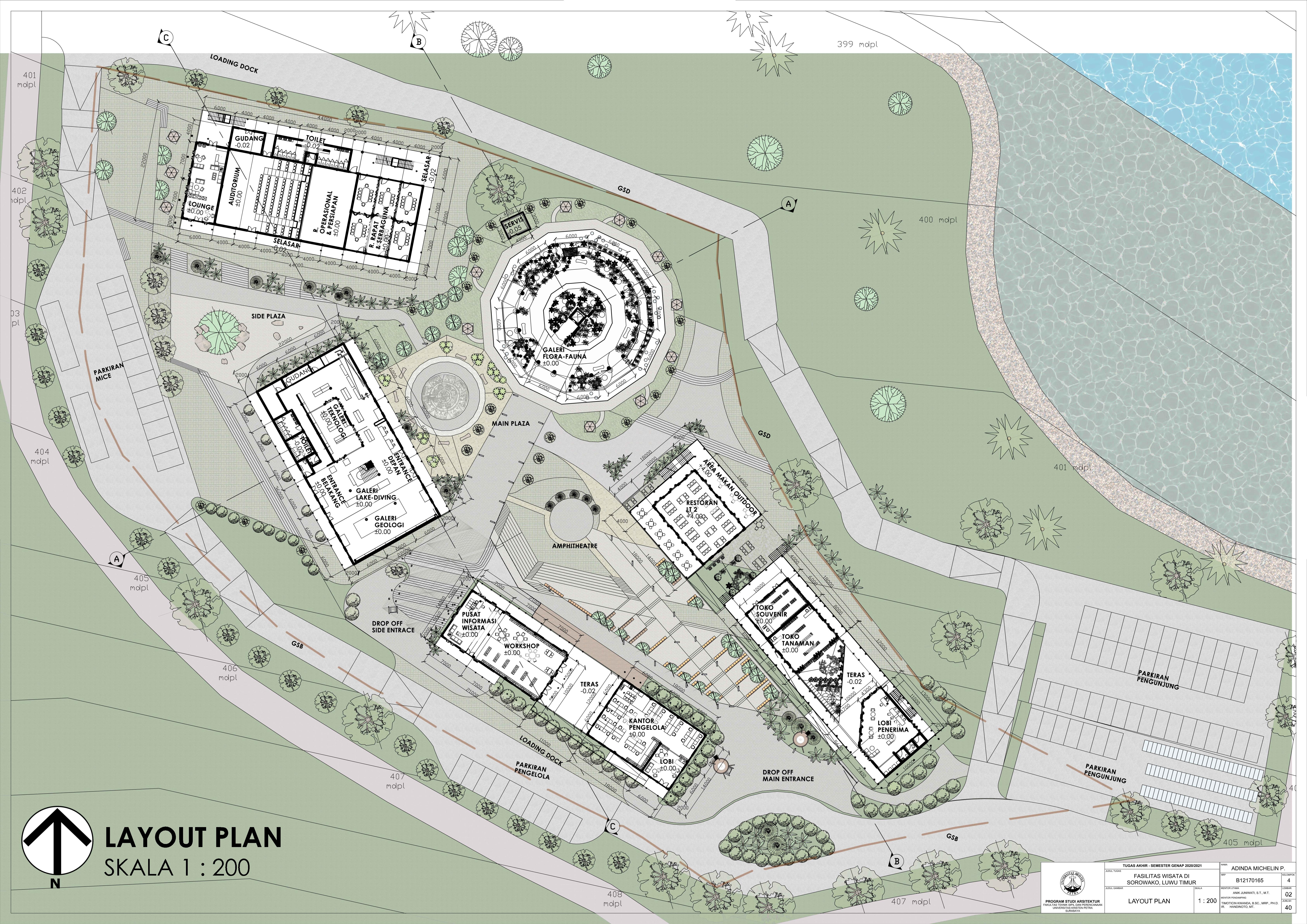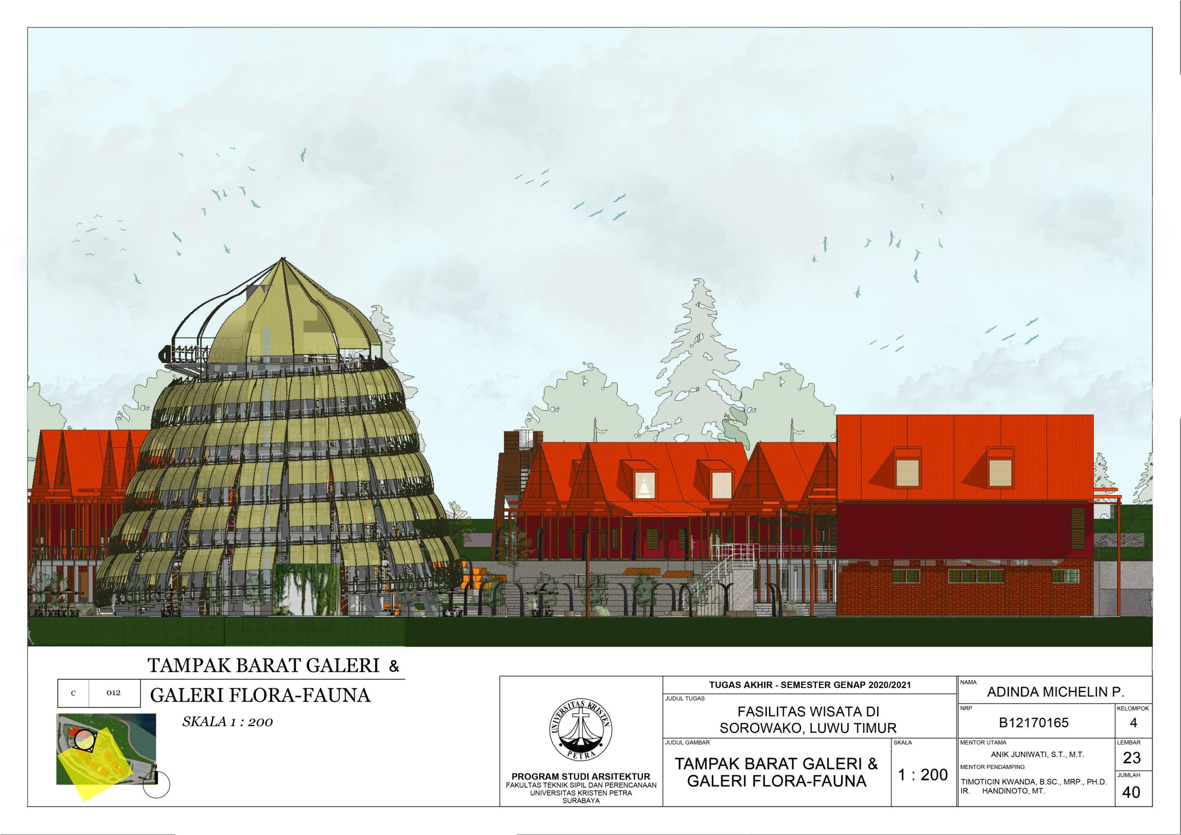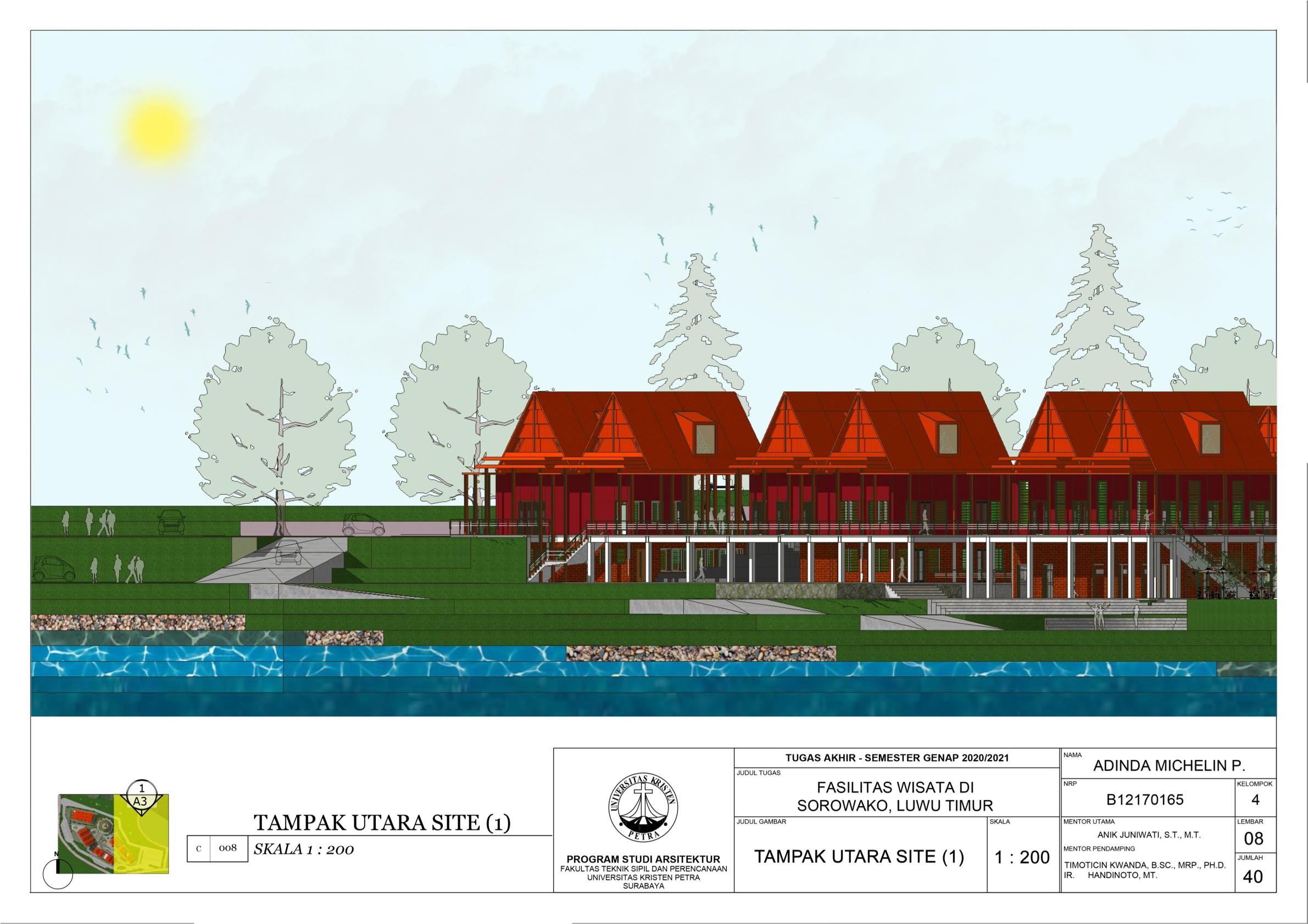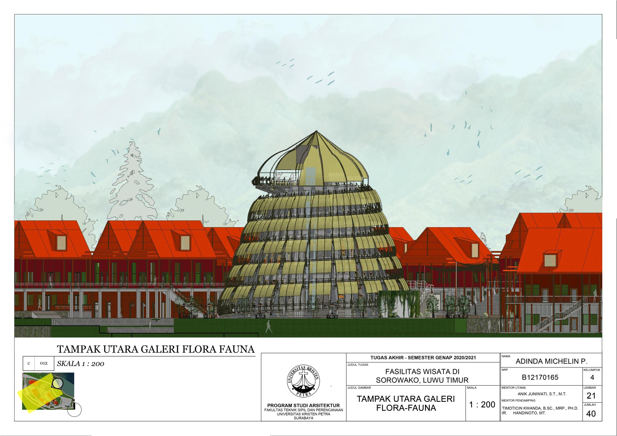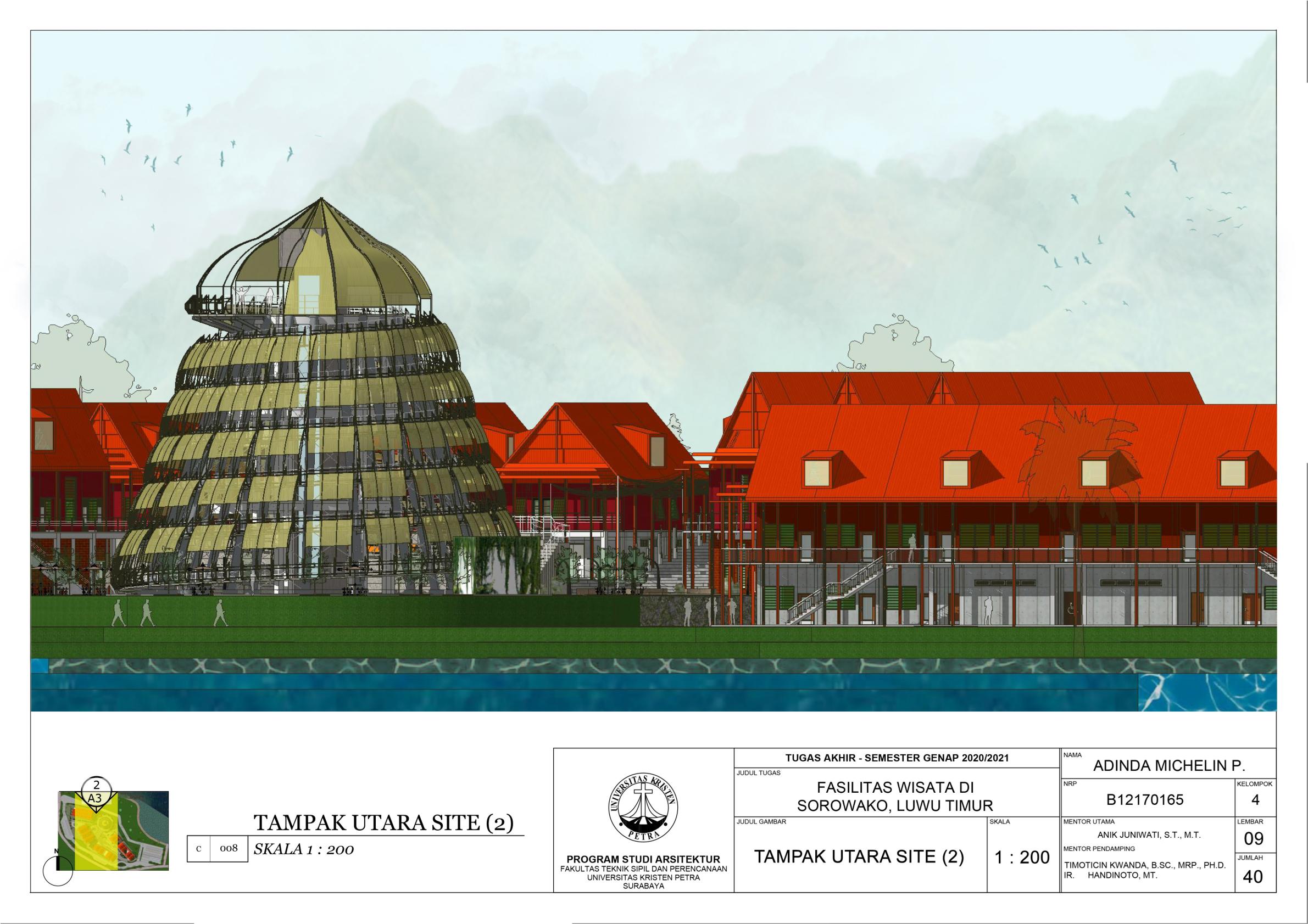 Library's collection Library's IT development CancelFasilitas Wisata di Sorowako, Luwu Timur merupakan fasilitas yang merepresentasikan serta mendukung karakteristik dari kota Sorowako sebagai desa wisata sekaligus smart village. Fungsi Fasilitas Wisata di Sorowako ini adalah untuk memperkenalkan identitas dan keberadaan kota Sorowako kepada masyarakat sekitar terutama pendatang. Lingkup fasilitas didasari pada potensi yang ada di Sorowako, yakni galeri-galeri wisata sebagai penyedia informasi, MICE (Meeting, Incentive, Conference, Exhibition), dan area komersial berupa toko-toko dan restoran. Pendekatan arsitektur neo-vernakular diterapkan pada perancangan sehingga unsur-unsur budaya lokal dan kemajuan teknologi di Sorowako dapat dicerminkan melalui perancangan ini. Oleh karena fasilitas terdiri dari beberapa fungsi berbeda, ruang-ruangnya didalami sesuai karakter fungsi masing-masing.