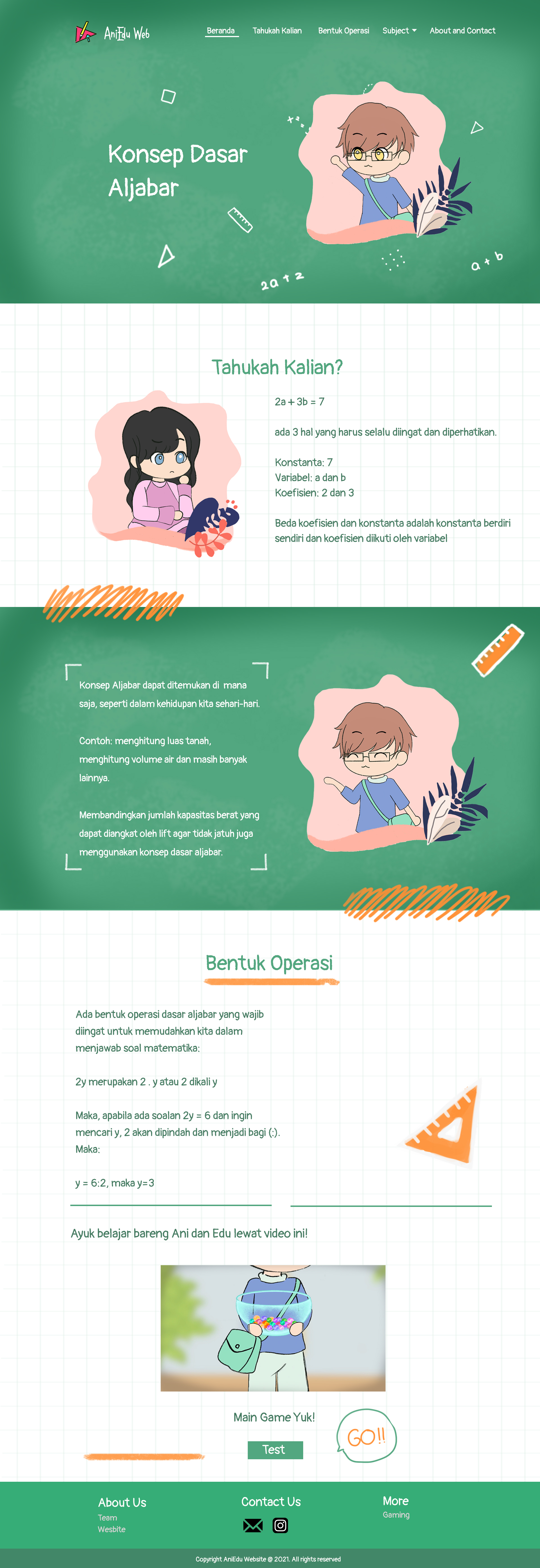 Library's collection Library's IT development CancelPelajaran matematika merupakan salah satu pembelajaran yang dianggap sulit, terutama bagi anak sekolah dasar. Untuk meningkatkan minat belajar mereka, penulis membuat kesimpulan untuk merancang media interaktif berupa website dan animasi. Media pembelajaran website dan animasi yang dibuat juga merupakan media yang dapat membantu proses pemahaman dan penyampaian berbagai informasi serta edukasi untuk anak sekolah dasar. Pemilihan media yang tepat dapat mempengaruhi belajar anak. Media visual animasi dan website dapat menangkap lebih menarik dan efektif untuk anak-anak yang ingin hiburan serta mendapat edukasi dari hiburan tersebut.