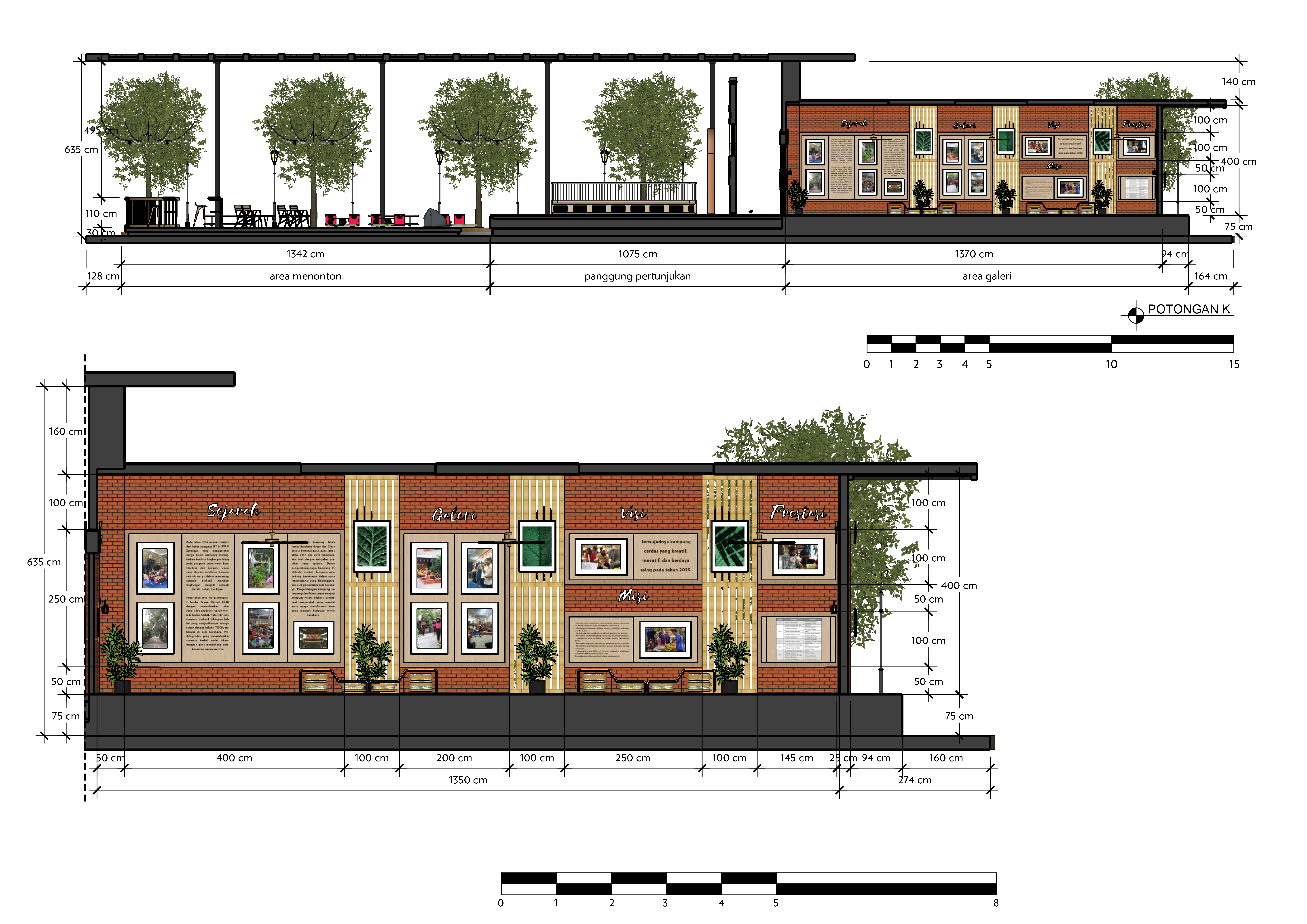 Library's collection Library's IT development CancelKampung Herbal Nginden Surabaya dengan berbagai potensi yang dimiliki sudah sering kali membanggakan kota Surabaya dalam prestasi literasinya. Warga Kampung Herbal ini memiliki harapan untuk menjadikan kampungnya sebagai kampung peduli lingkungan, kampung cerdas, kampung budaya dan kesenian, hingga menjadi kampung wisata berbasis partisipasi masyarakat. Hal tersebut menggambarkan potensi Kampung Herbal Nginden untuk menjadi ikon literasi baru dari Kota Surabaya. Namun, Kampung Herbal belum memiliki rencana desain fasilitasnya yang terkonsep. Metode design thingking dan participatory design akan diaplikasikan dalam perancangan ini agar hasil desain tepat guna sesuai kebutuhan komunitas. Komunitas akan dilibatkan dari proses understand, observe, point of view, ideate, prototype dan test. Penelitian ini ditujukan untuk menghasilkan konsep dan rencana desain Kampung Herbal Nginden sebagai ikon literasi dan kampung wisata. Pendekatan regionalisme digunakan untuk melestarikan nilai-nilai lokalitas dari Kampung Herbal Nginden. Hasil perancangan ini dapat digunakan oleh masyarakat Kampung Herbal sebagai rencana pembangunan jangka panjang, mengajukan proposal kepada pihak-pihak stakeholder dalam mendukung pembangunan dan pengembangan, dan hal lainnya yang bersifat mengangkat Kampung Herbal menjadi ikon literasi baru di Kota Surabaya.