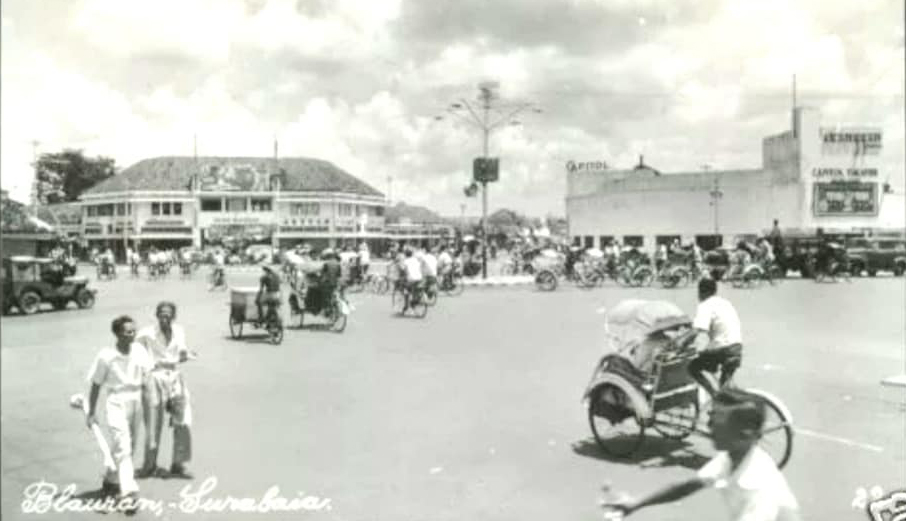 Simpang lama Blauran dan bioskop Capitol Surabaya di sekitar tahun 1950an.