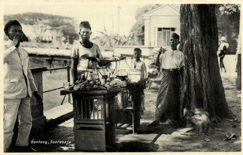 Pedagang makanan kecil dan minuman di jalan Genteng Soerabaia
