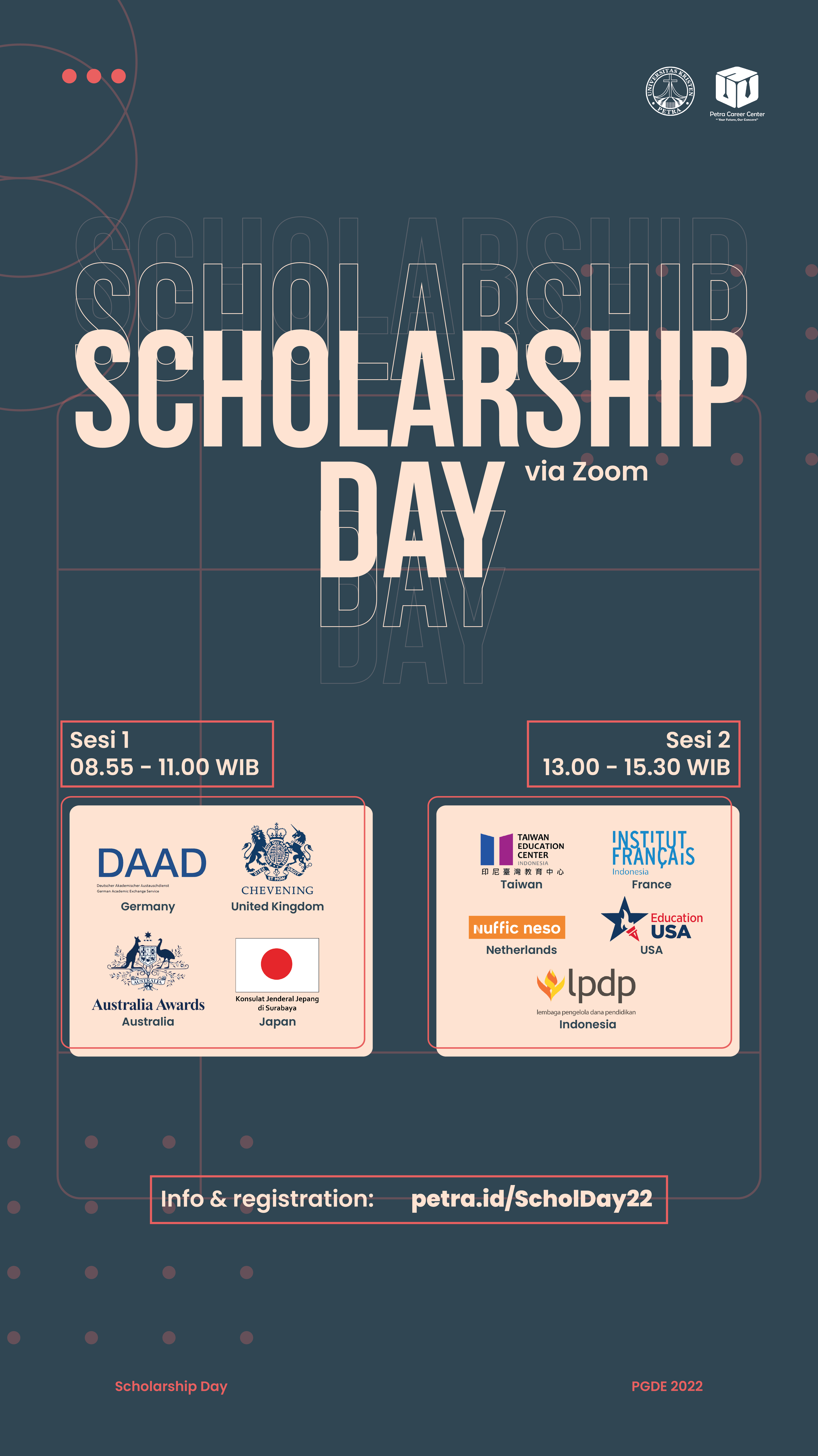 Library's collection Library's IT development CancelPetra Career Center Universitas Kristen Petra Surabaya mengadakan acara scholarship day 2022. Diperuntukkan bagi mahasiswa UK Petra yang membutuhkan bea siswa untuk studi lanjut ke luar negeri.