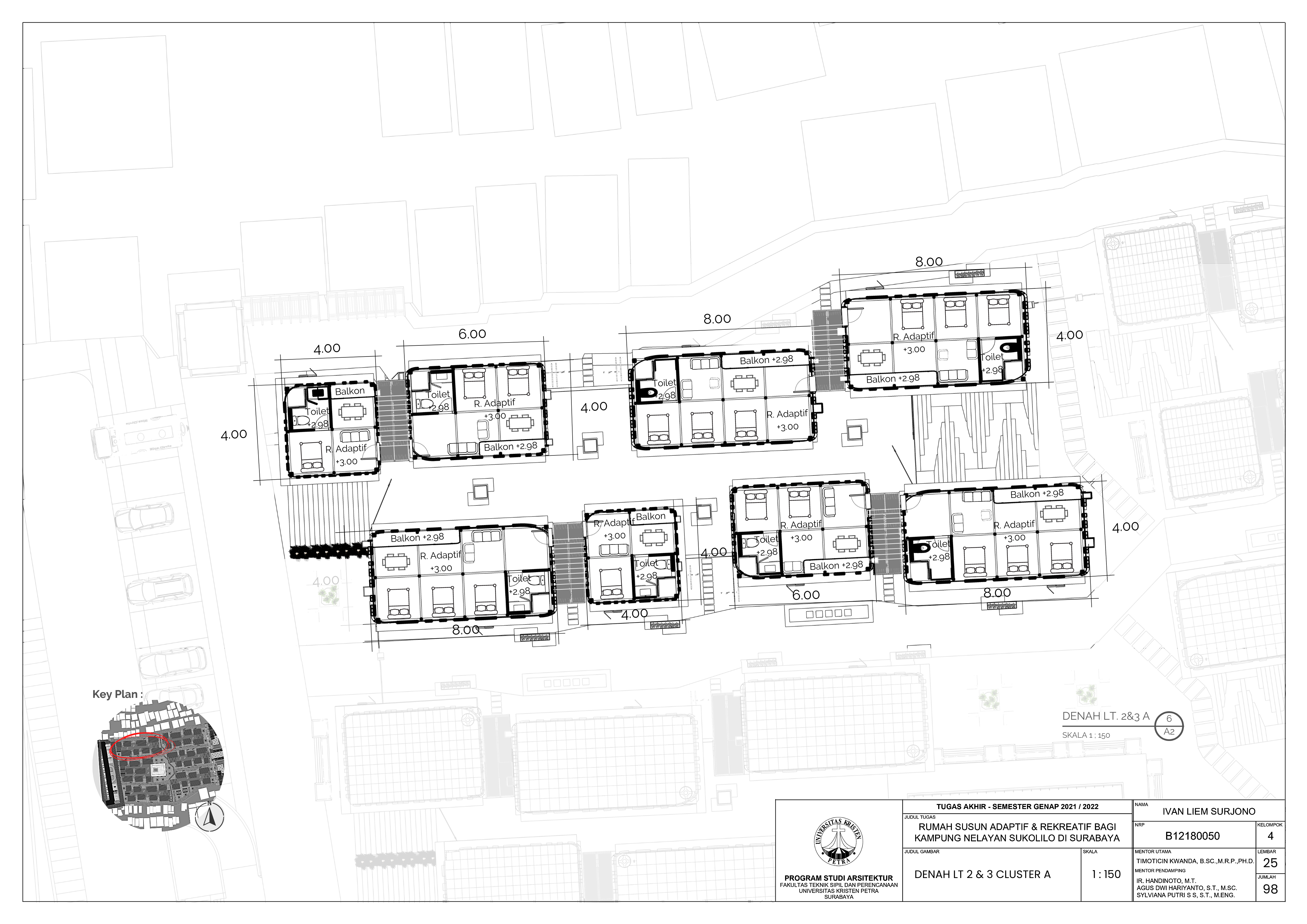 Library's collection Library's IT development CancelRumah Susun Adaptif dan Rekreatif merupakan desain perancangan untuk para nelayan di kampung Sukolilo Surabaya. Adapun fasilitas ini memiliki 2 funsgi utama yaitu permukiman rumah susun dan fasilitas umum berupa rekreasi pada bagian belakang dari lahan. Hal tersebut dilatar belakangi oleh kondisi permukiman kumuh akibat dari pertumbuhan penduduk yang terus meningkat namun kapasitas lahan yang tidak dapat menyeimbangi dan juga lokasi lahan yang berada di tepi pantai dan termasuk dalam kawasan strategis ekonomi menjadi daya tarik wisatawan. Upaya pembaharuan ini memerlukan beberapa faktor pendukung agar perubahan yang terjadi dari kampung horisontal menjadi vertikal tidak menyusahkan penghuni untuk beraktifitas. Faktor tersebut antara lain: pola tatanan rumah susun, aktifitas sehari-hari, gaya hidup, pola perilaku, dan kebiasaan. Maka pendekatan morfologi diperlukan sebagai respon desain perancangan yang menegaskan hubungan dan pergerakan dari sebuah tata ruang perkotaan untuk mengelolah pola eksisting figure ground. Kemudian, pendalaman karakter ruang dipilih untuk mengintegrasikan material yang sudah ada dan banyak disekitar lahan untuk dimanfaatkan di dalam sebuah unit hunian dengan menekankan aspek adaptif dan fleksibilitas agar mereka merasa nyaman karena terbiasa dengan karakter yang sudah ada sebelumnya yaitu alami. Oleh karena itu, diharapkan dengan adanya rumah susun ini dapat mengoptimalkan lahan yang ada tanpa menghilangkan kebiasaan mereka. Hal tersebut tercermin dari fleksibilitas ruang yang ditekankan pada penggunaan dinding partisi dan dek lantai tambahan di dalam 1 unit hunian yang mampu memberikan fleksibilitas pada ruangan tersebut, sehingga penghuni dapat melakukan aktivitas tanpa ada batasan walapun bertempat tinggal di lahan yang sempit dan padat penduduk.