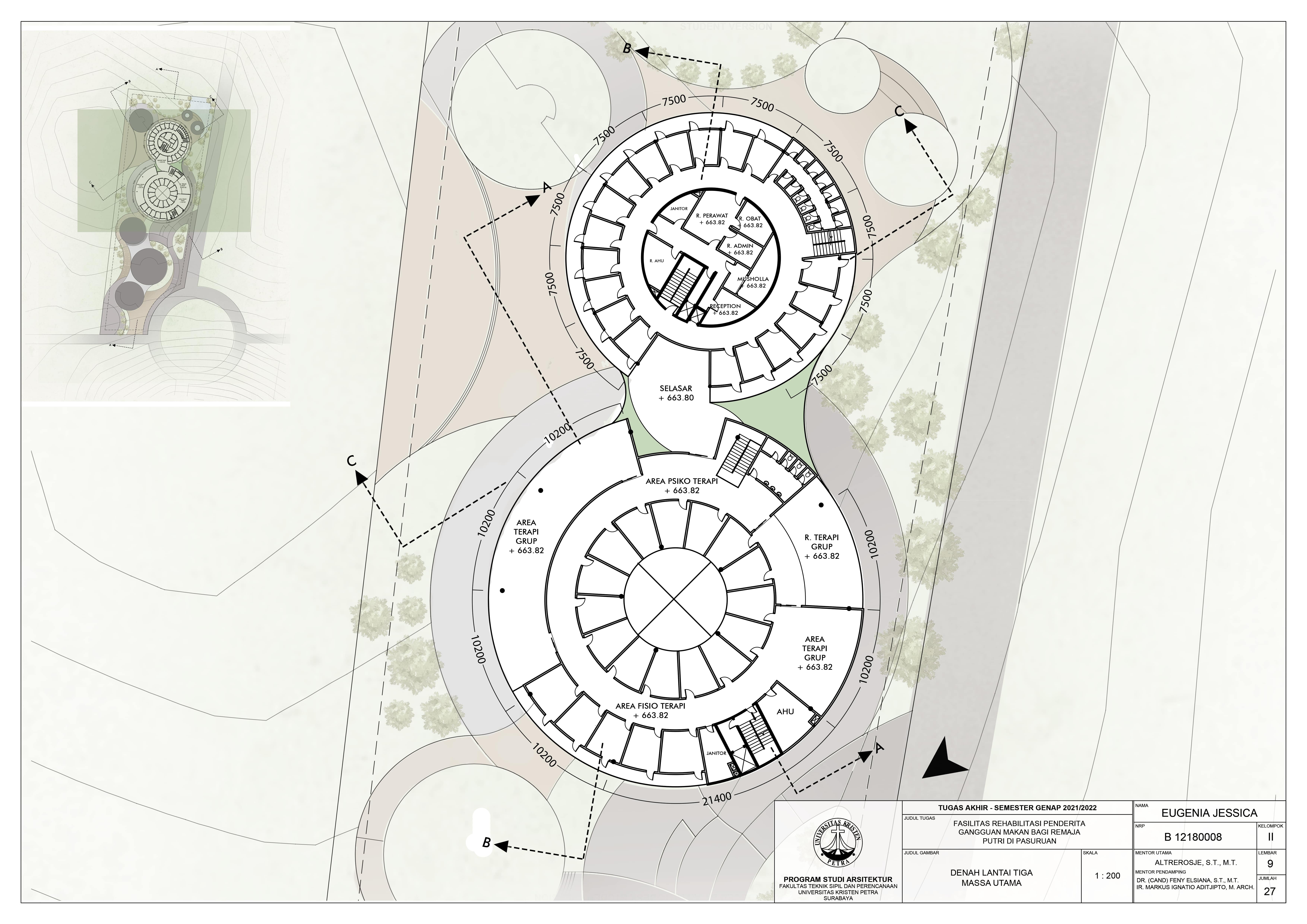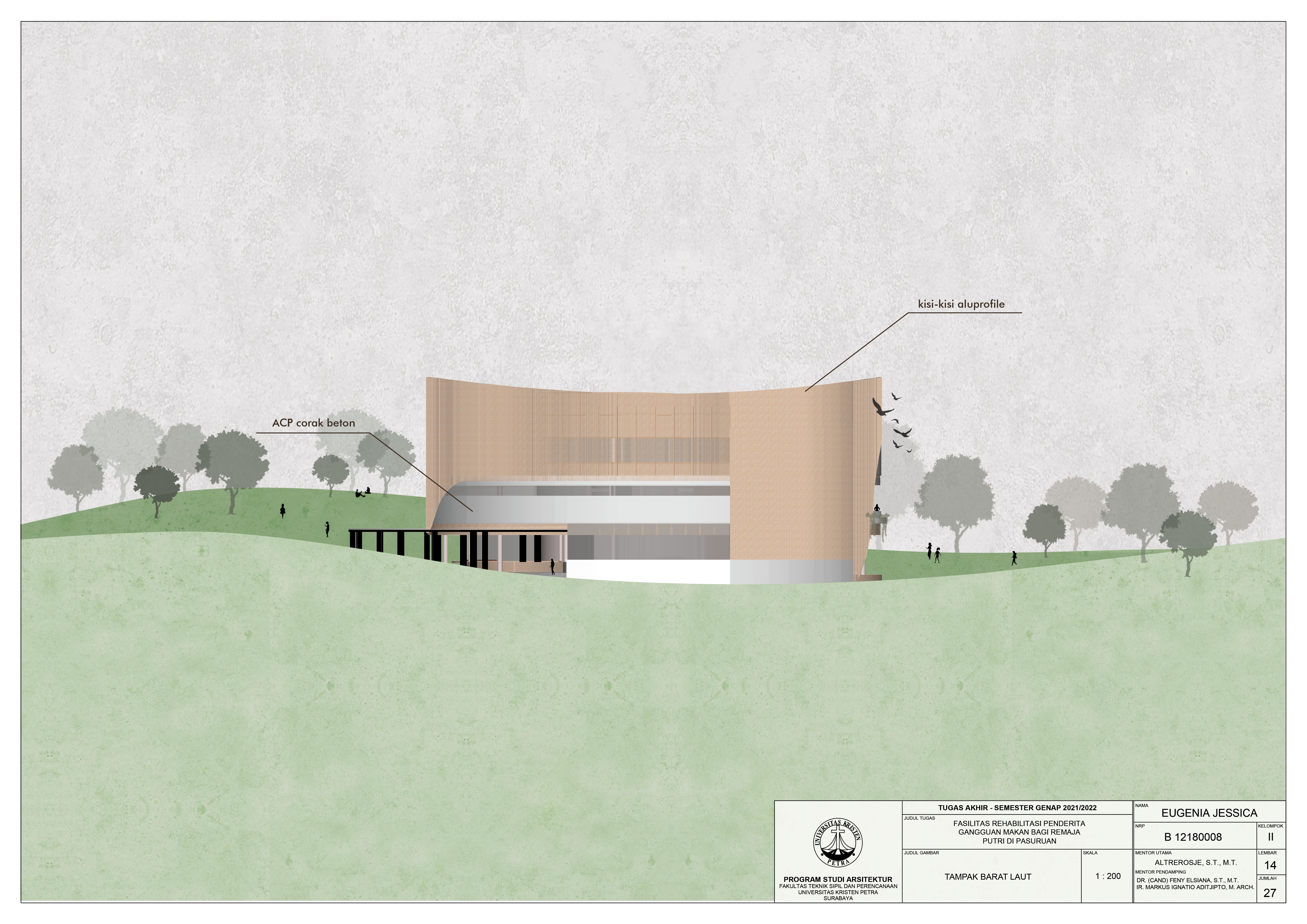 Library's collection Library's IT development CancelFasilitas rehabilitasi penderita gangguan makan merupakan fasilitas yang mewadahi fungsi rekreatif dan rehabilitatif untuk mewujudkan pemulihan penderita gangguan makan, baik secara fisik maupun psikologis. Fasilitas ini ditujukan bagi remaja putri di wilayah Jawa Timur yang memiliki kebiasaan makan yang menyimpang serta yang terganggu kondisi fisik dan psikisnya. Dengan pendekatan biofilia yang berfokus pada sensori, diharap fasilitas rehabilitasi yang dirancang mampu mendukung proses penyembuhan penderita gangguan makan secara lebih optimal. Adanya koneksi dengan alam mampu membantu pengguna memperbaiki kesehatan mentalnya (Meredith, Rakow, Eldermire, Madsen, Shelley, & Sachs, 2019). Fasilitas rehabilitasi ini dilengkapi ruang-ruang luar yang mampu mengakomodasi aktivitas pemulihan penggunanya di alam terbuka sesuai dengan pendekatan biofilia yang dipilih. Adanya fasilitas ini diharapkan dapat menjadi pioneer bagi fasilitas-fasilitas serupa di Jawa Timur sehingga mampu mengurangi kecenderungan gangguan makan, sekaligus menciptakan masyarakat yang lebih terbuka terhadap isu psikologis serupa.