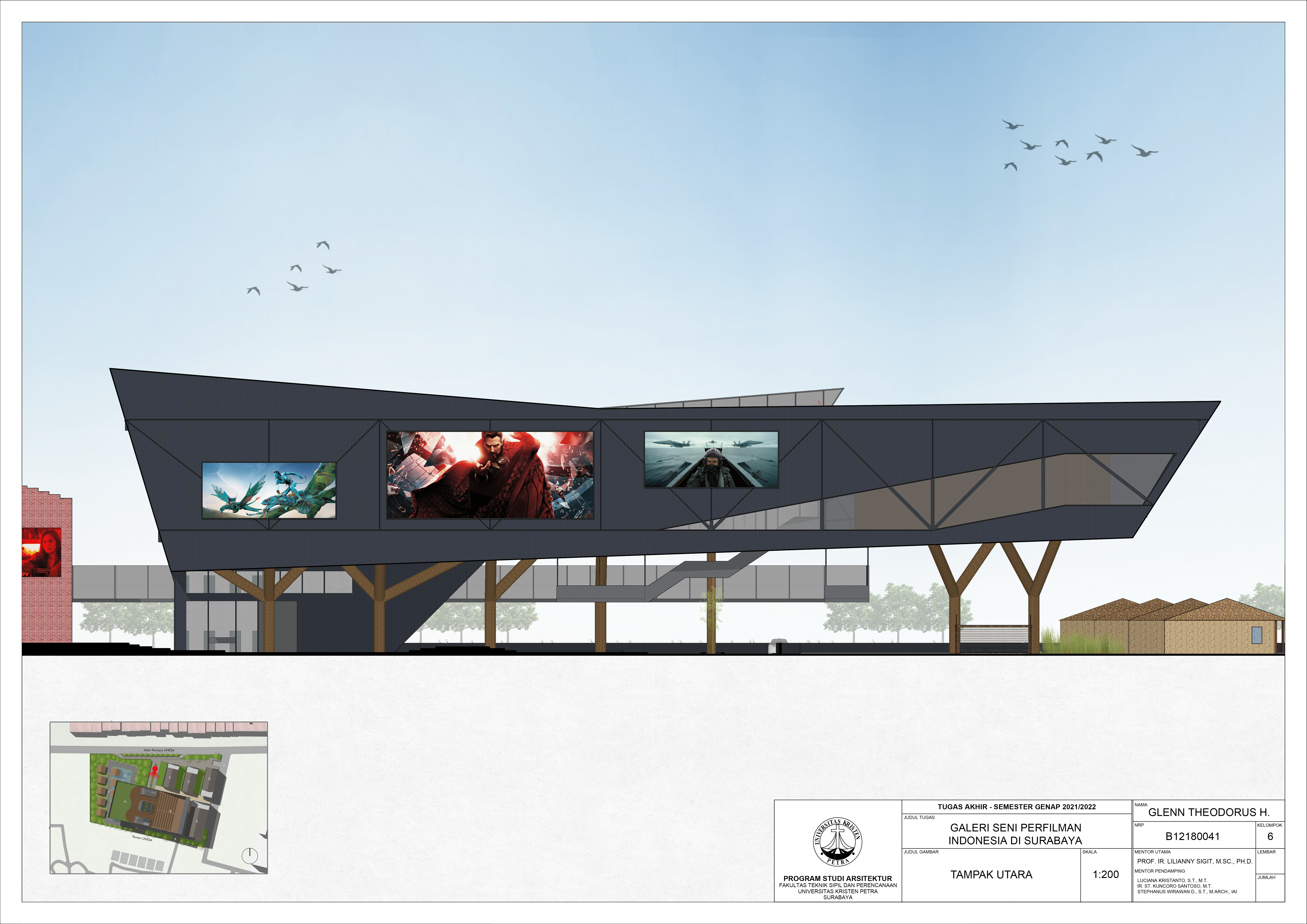 Library's collection Library's IT development CancelGaleri Seni Perfilman Indonesia di Surabaya merupakan fasilitas studio rekam film dan studio bioskop yang memperkenalkan proses perfilman mulai dari tahap pra-produksi hingga pasca-produksi sekaligus menjadi hiburan, ditujukan untuk masyarakat Surabaya, khususnya sekitar kawasan Unesa. Latar belakang yang melandasi yaitu karena pada era ini produksi film Indonesia meningkat, adanya daya juang sineas Indonesia namun daya saing dengan film impor masih kurang. Diharapkan dengan adanya fasilitas ini dapat mewadahi sineas Indonesia untuk berkarya dan menyampaikan ke masyarakat serta menjadi wadah untuk mengapresiasi film Indonesia. Fasilitas ini di desain menggunakan pendekatan perilaku, dimana proses pembuatan film sebagai objeknya dan subjek yang menggunakan fasilitas ini. Selain itu, menggunakan pendekatan simbolik, dimana menghadirkan karakter film Indonesia seperti nuansa kekeluargaan dan pedesaan. Pendalaman desain memperhatikan karakter ruang yang mendukung suasana studio rekam bagi sineas dan kru film untuk menikmati saat proses perekaman.