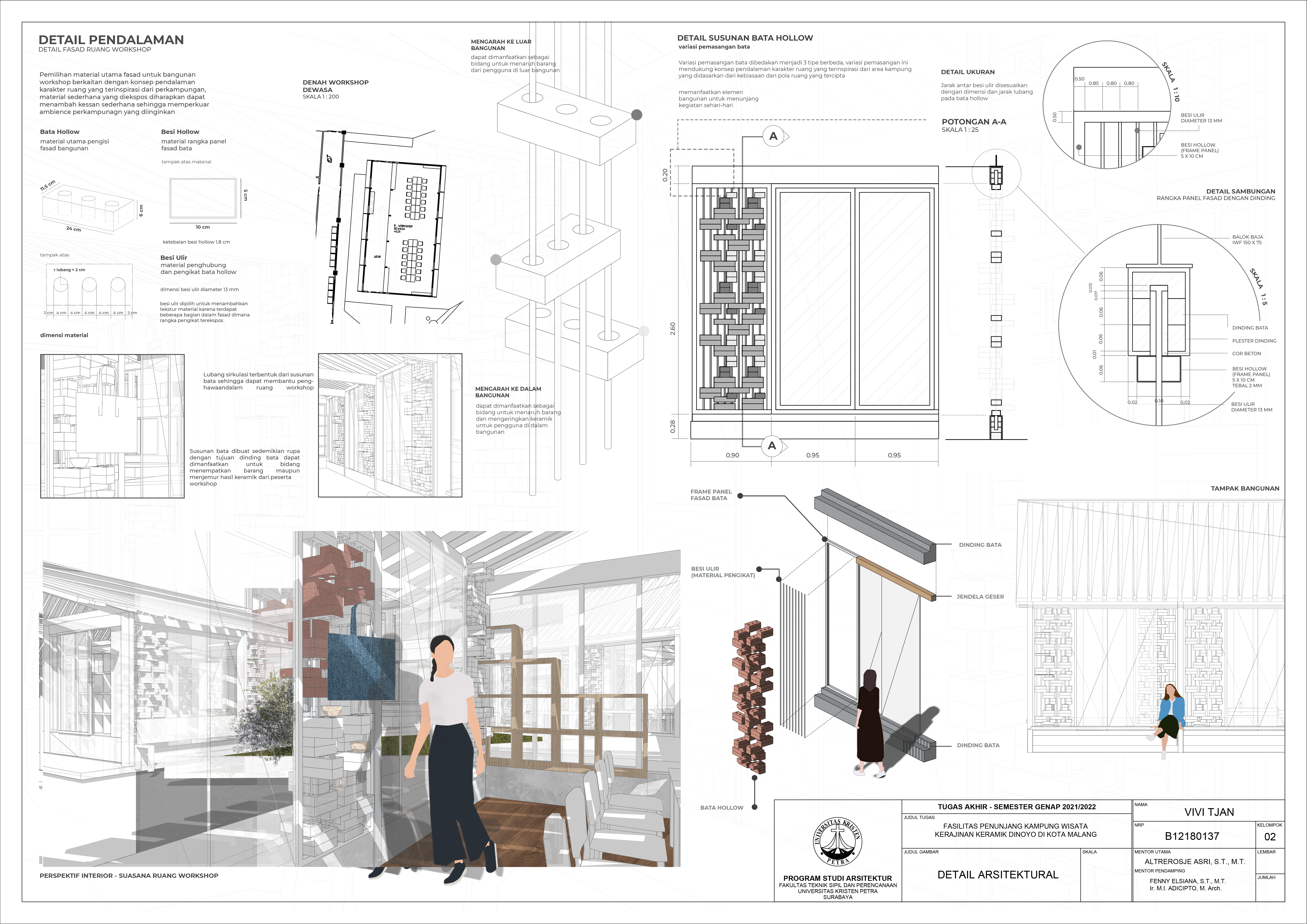 Library's collection Library's IT development CancelDesain Fasilitas Penunjang Kawasan ini berangkat dari pemikiran akan potensi Kawasan Kampung Wisata Keramik Dinoyo Malang yang dapat dikembangkan menjadi salah satu icon wisata dan edukasi di Kota Malang Kawasan Kampung Keramik Dinoyo telah berdiri sejak tahun 1957 hingga sekarang, dengan sebagian besar warganya masih aktif memproduksi kerajinan keramik berbasis home industry. Pemerintah Kota Malang sendiri telah menetapkan kawasan ini menjadi salah satu tujuan wisata di Kota Malang demi mendongkrak sektor pariwisata kota. Namun perkembangan kampung ini terhambat oleh beberapa faktor. Faktor aksesibilitas, identitas kawasan yang tidak terbaca, dan kurangnya fasilitas pendukung menjadi masalah mendasar pada perkembangan kawasan ini. Dengan letaknya yang strategis, di sepanjang Jl. M.T. Haryono, Malang, kawasan ini dapat menjadi potensi besar bagi sumbangsi sektor pariwisata di Kota Malang. Menempatkan satu fasilitas yang dapat menjadi penghubung antara kawasan ini dengan sekitarnya akan menjadi jawaban dari permasalahan yang dihadapi Kampung Kerajinan Keramik Dinoyo. Hubugan antar kawasan perkampungan dan fasiliitas memegang peranan penting dalam desain fasilitas. Penerapan arsitektur mimesis dengan objek perkampungan diharapkan dapat memberi kesan “rumah kedua” bagi warga selaku pengguna fasilitas dan pengunjung sehingga dapat merasakan suasana perkampungan secara utuh.