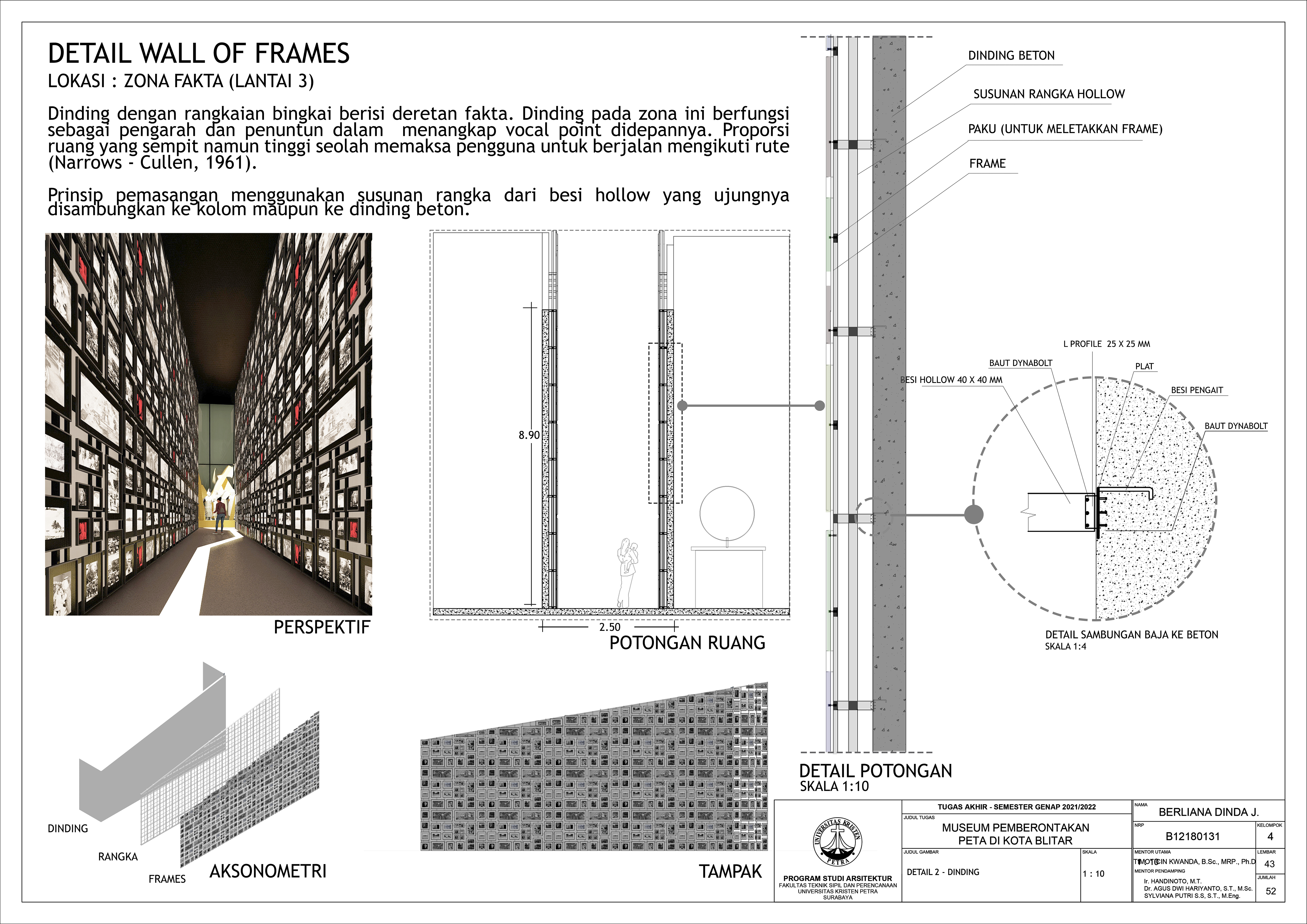 Library's collection Library's IT development CancelPerancangan Museum Pemberontakan PETA dilatarbelakangi oleh peristiwa pemberontakan PETA yang kini sudah terlupakan sebagai salah satu sejarah besar dalam perjalanan kemerdekaan bangsa Indonesia. Selain itu minat masyarakat khususnya generasi muda terhadap museum sejarah semakin rendah karena dianggap kuno dan membosankan. Oleh karena itu, tujuan dari proyek tugas akhir ini adalah untuk menceritakan kembali peristiwa pemberontakan PETA melalui sekuen, pengalaman ruang dan konten didalamnya. Masalah utama dalam perancangan ini adalah sirkulasi dan identitas kawasan sehingga pendekatan yang digunakan adalah pendekatan sistem sirkulasi dan simbolik. Pendalaman sekuen dengan menerapkan teori Serial Vision diterapkan untuk mengintegrasikan sirkulasi dan ruang dalam membentuk rangkaian pengalaman ruang secara menerus.