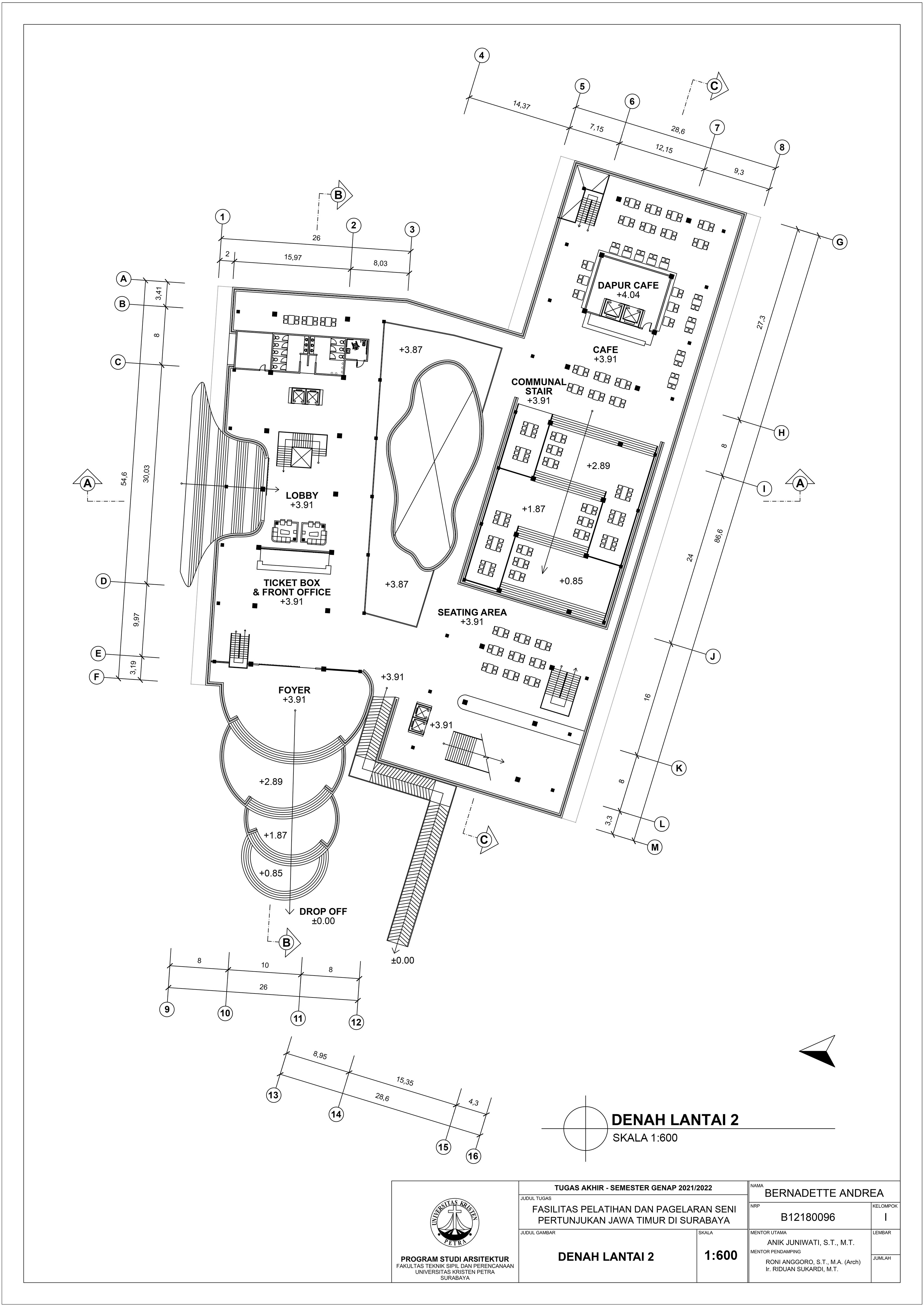 Library's collection Library's IT development CancelFasilitas Pelatihan dan Pagelaran Seni Pertunjukan Jawa Timur di Surabaya merupakan fasilitas yang dirancang untuk mewadahi kegiatan kebudayaan dalam bentuk pelatihan dan pagelaran seni pertunjukan tradisional dimana memudarnya perhatian masyarakat terutama di kota besar seperti Surabaya dan minimnya jumlah gedung yang mewadahi kegiatan pelatihan dan pagelaran kesenian tradisional menjadi latar belakang perancangan fasilitas. Seni pertunjukan Jawa Timur seperti Ludruk, Wayang Topeng, Reog Ponorogo, dan Jekdong membutuhkan kebutuhan ruang yang berbeda sehingga perancangan fasilitas pagelaran menggunakan Teater Black Box sederhana dengan konsep fleksibilitas ruang yang dapat menciptakan banyak alternatif tatanan panggung dan tempat duduk sesuai dengan kebutuhan pagelaran yang akan ditampilkan. Pendekatan Arsitektur Neo-Vernakular dipilih untuk menyuguhkan fasilitas yang menampilkan elemen lokal arsitektur tradisional khas Jawa yaitu Rumah Joglo dengan pemanfaatan teknologi sehingga dapat menjadi sebuah bangunan yang ikonik agar dapat mengembalikan atensi masyarakat pada kesenian tradisional. Konsep Rumah Joglo diterapkan pada konsep desain, gubahan bentuk, rancangan tapak, struktur dan fasad bangunan.