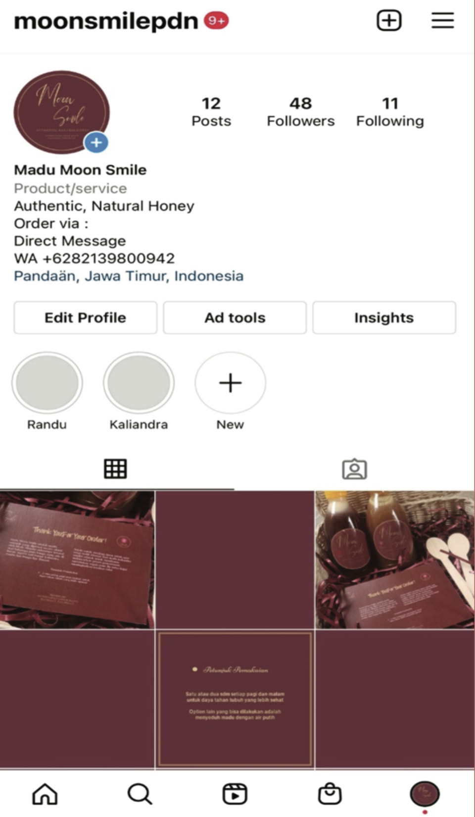 Library's collection Library's IT development CancelBerawal dari sebuah usaha wiraswasta yang dikelola oleh seseorang yang bernama Ong Hary Santoso, di mana usaha tersebut bergerak di bidang peternakan lebah. Dalam pemasarannya, Madu Moon Smile tidak banyak diketahui oleh masyarakat luas karena belum memiliki visual branding dan identitas yang jelas. Perancangan ini bertujuan untuk memperjelas identitas serta visual branding agar bisa lebih dikenal oleh banyak orang. Perancangan ini mengumpulkan data dari observasi, SWOT dan studi kompetitor. Media utama untuk perancangan ini adalah sosial media Instagram. Melalui sosial media Instagram, Madu Moon Smile juga memperkenalkan beberapa konten yang informatif dan juga edukatif mengenai madu itu sendiri. Dengan adanya perancangan ini diharapkan dapat meningkatkan brand awareness, sehingga Madu Moon Smile dapat lebih dikenal oleh banyak orang.