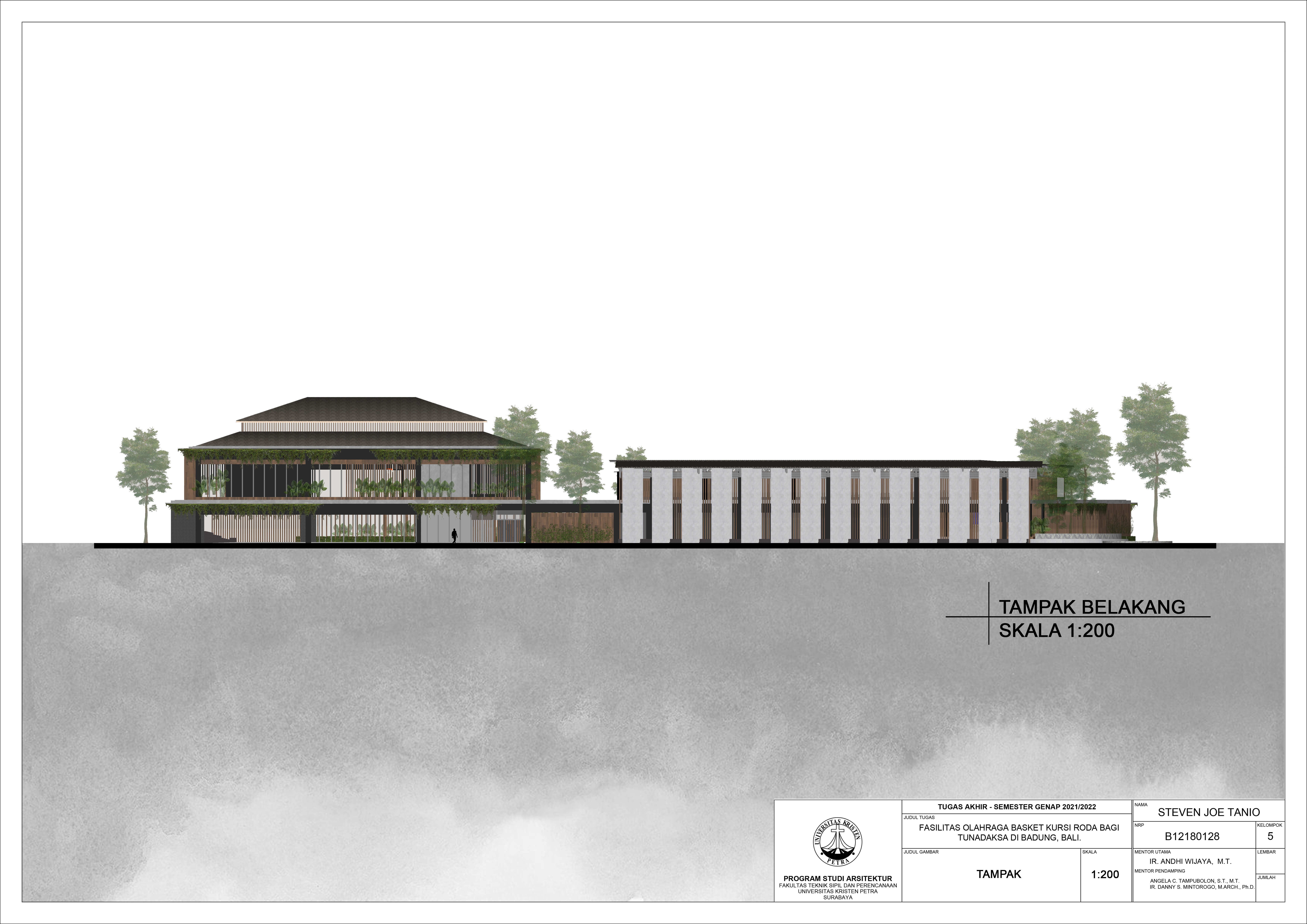 Library's collection Library's IT development CancelFasilitas pelatihan olahraga bola basket kursi roda di Badung, dirancang dalam rangka menjawab kebutuhan pengguna difabel untuk berlatih pada lapangan olahraga yang mewadahi dan aman. Pengguna dan pengunjung fasilitas olahraga ini sebagian besar merupakan orang dengan alat bantu jalan, sehingga perancangan fasilitas olahraga bola basket kursi roda ini dirancang dengan sirkulasi dan penataan ruang yang sedikit berbeda dengan fasilitas olahraga biasa agar lebih efektif. Pengguna juga memiliki keterbatasan yang berbeda tiap orangnya sehingga menimbulkan kebutuhan yang beragam ketika menggunakan fasilitas olahraga. Oleh karena itu, eksklusivitas pada bangunan menjadi sangat penting agar dapat mengakomodasi pengguna bangunan. Selain itu, Fasilitas olahraga juga dapat diakses oleh komunitas tuna daksa yang ingin berlatih ataupun mencoba olahraga bola basket kursi roda untuk dapat mengembangkan potensi mereka karena bangunan dirancang dengan skala dan standar lapangan internasional. Dengan adanya fasilitas ini kualitas para calon atlet tuna daksa akan meningkat dan lebih mudah bersosialisasi sehingga tingkat kepercayaan diri serta kualitas kerjasama tim dapat terbentuk. Bagi para calon atlet tuna daksa yang mempunyai bakat dapat bergabung dengan tim profesional dan berlaga di kompetisi Paralympic nasional atau bahkan kompetisi Paralympic internasional untuk berlaga di luar negeri.
