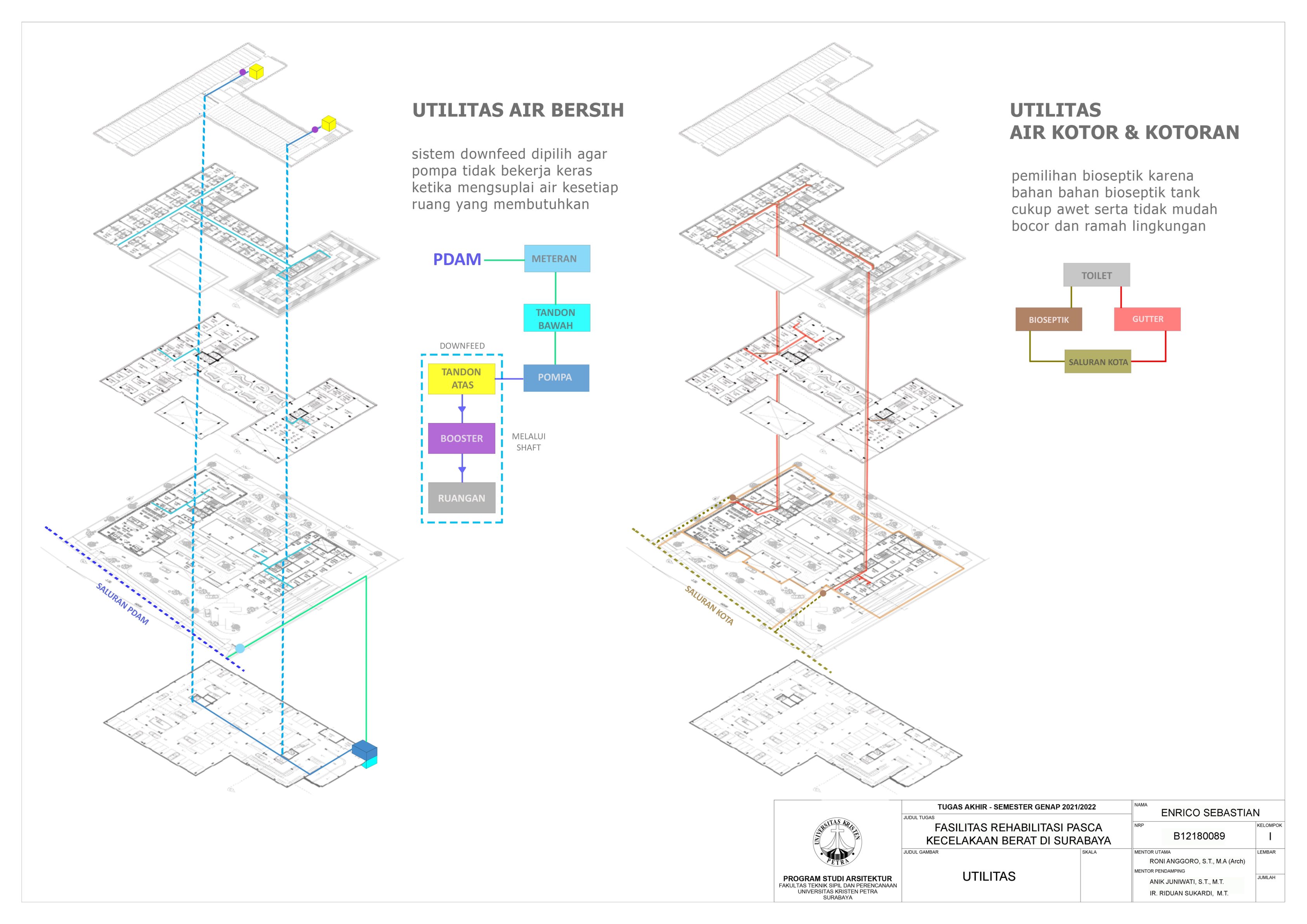 Library's collection Library's IT development CancelFasilitas Rehabilitasi pasca kecelakaan berat ini merupakan tempat pemulihan yang berfungsi untuk dapat membantu keberlangsungan hidup pasien dengan baik dalam menjalani kegiatan sehari-hari dengan status adanya keterbatasan fisik dan gangguan mental. Fasilitas ini memberikan pelatihan fisik dan terapi khusus sebagai program pemulihan setelah selesai menjalani pengobatan di rumah sakit. Fasilitas kesehatan khusus ini menjadi peluang bagus untuk diadakan dan diusulkan secara khusus di Surabaya. Lokasi tapak yang terpilih berada di Jl. Raya Darmo Permai Selatan XIV. Fasilitas ini memperhatikan perilaku dari penggunanya baik secara fisik, mental atau psikis dan dipilih metode pendekatan perilaku serta menggunakan motede pendalaman arsitektural material dan sistem untuk membuat pengguna nyaman dan dimudahkan. Memasukan lingkungan alam dengan mengaplikasikan taman terapeutik untuk memberikan identitas pada bangunan.