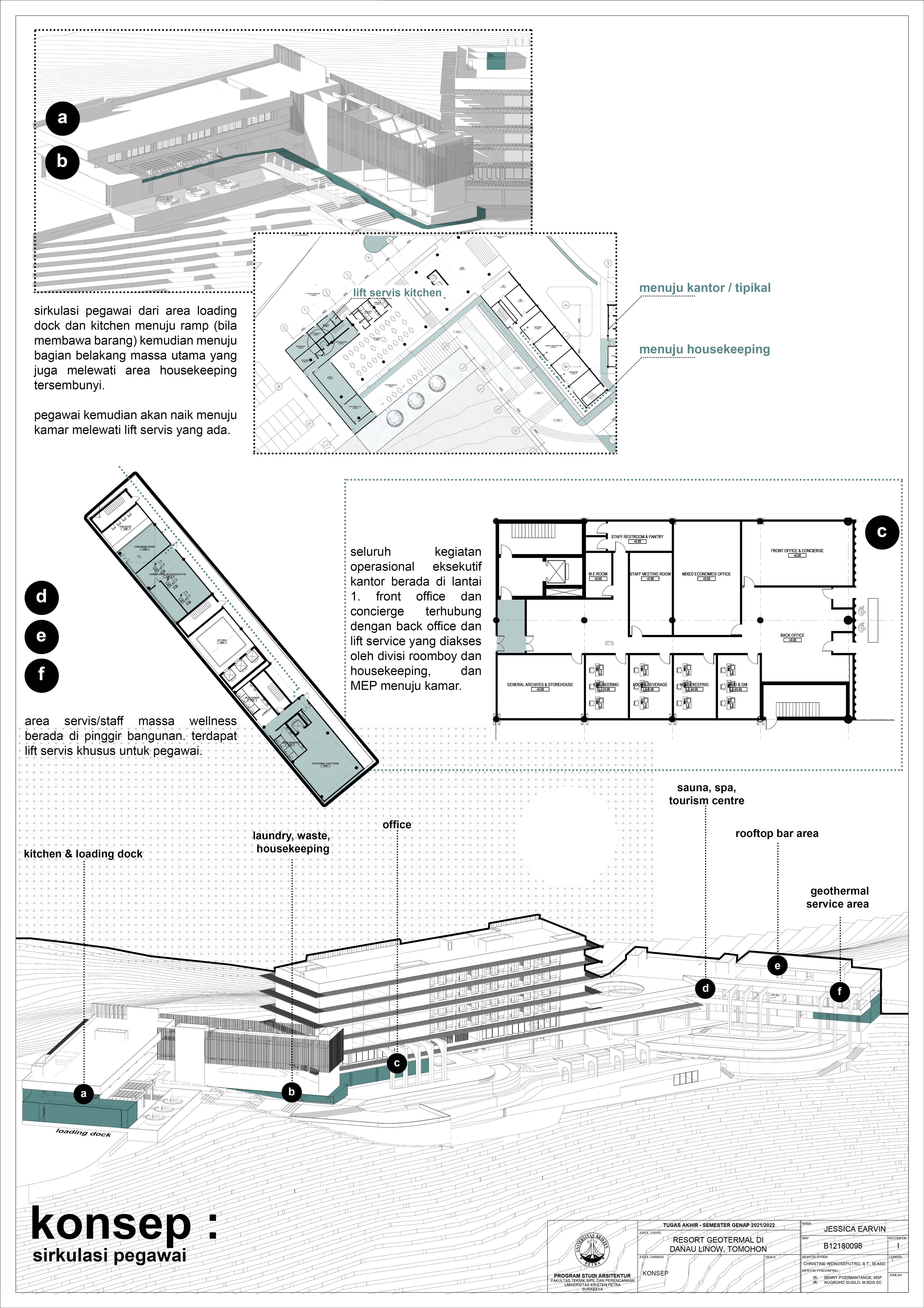 Library's collection Library's IT development CancelKota Tomohon memiliki banyak sekali potensi pariswista yang masih belum bisa dikembangkan secara maksimal, salah satunya berada di Danau Linow di Selatan Tomohon. Perkembangan tingkat wisatawan yang datang ke Minahasa semakin meningkat setiap tahunnya namun hal tersebut tidak diimbangi oleh kesiapan daerah tersebut untuk memfasilitasi kebutuhan akomodasi wisatawan. Selain pemandangan danau dan pepohonan yang indah, di danau Linow terdapat kekayaan sumber daya geotermal yang masih belum diolah. Oleh karena itu diperlukannya sebuah hotel resor sebagai salah satu pendongkrak sektor pariwisata di daerah Tomohon sehingga para wisatawan tidak merasa enggan untuk bisa menghabiskan liburannya di kota Tomohon yang juga memperkenalkan potensi geotermal yang dimiliki oleh Tomohon. Diharapkan dengan perancangan hotel resor ini potensi alam dan kekayaan budaya di Tomohon dapat digali dan ditunjukkan kepada para wisatawan.