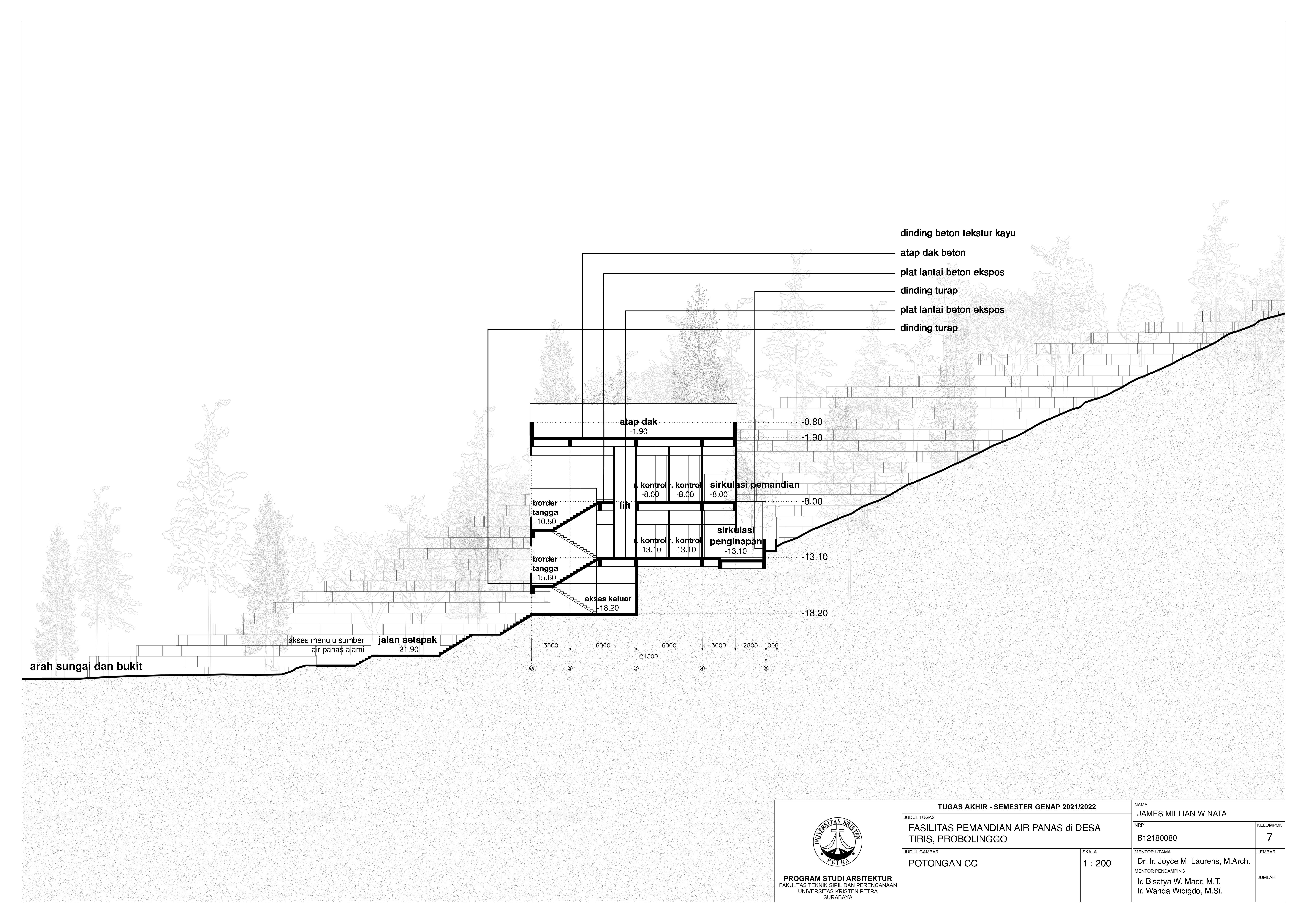 Library's collection Library's IT development CancelIndonesia merupakan salah satu negara dengan jumlah gunung berapi terbanyak di dunia. Gunung berapi yang mengandung magma ini mengalami proses geothermal sehingga menghasilkan energi panas. Energi panas ini mempengaruhi suhu perairan yang berada di sekitarnya sehingga terbentuklah sumber-sumber air panas alami. Terlepas dari potensi yang terdapat dalam pemanfaatan panas geothermal sebagai pemandian air panas di Indonesia, jumlah pemandian air panas di Indonesia sendiri masih sedikit dan kurang memadai. Sementara itu, wisata pemandian air panas sendiri memiliki potensi untuk berperan dalam penyembuhan dan pengembangan kesehatan fisik serta mental pengguna. Salah satu sumber air panas alami yang memiliki potensi untuk dikembangkan adalah sumber air panas Desa Tiris yang terdapat di Probolinggo, Jawa Timur. Berlatar bukit dan hutan di sekelilingnya, pemandian air panas ini sudah menjadi salah satu tujuan wisata masyarakat lokal dan nasional. Namun disayangkan keadaan eksisting fasilitas yang ada belum dapat menampung dan mewadahi aktivitas pengguna secara layak. Sehingga diperlukan adanya pengembangan terhadap fasilitas pemandian air panas ini. Dimulai dari sirkulasi pengunjung hingga kefungsian fasilitas yang disediakan secara keseluruhan dirasa masih dapat dikembangkan untuk menciptakan sebuah fasilitas yang memadai dan memenuhi kebutuhan pengguna maupun pengelola. Oleh karena itu pendekatan perilaku dengan teori affordance dan dirasa dirasa paling tepat dalam perancangan ini. Harapannya setiap fasilitas yang disediakan dapat memberikan pengalaman ruang yang berbeda-beda dan menciptakan adanya hubungan ruang dalam dan ruang luar bagi pengunjung. Selain itu juga tetap memperhatikan setiap fungsi ruang terhadap pengguna maupun pengelola fasilitas pemandian.