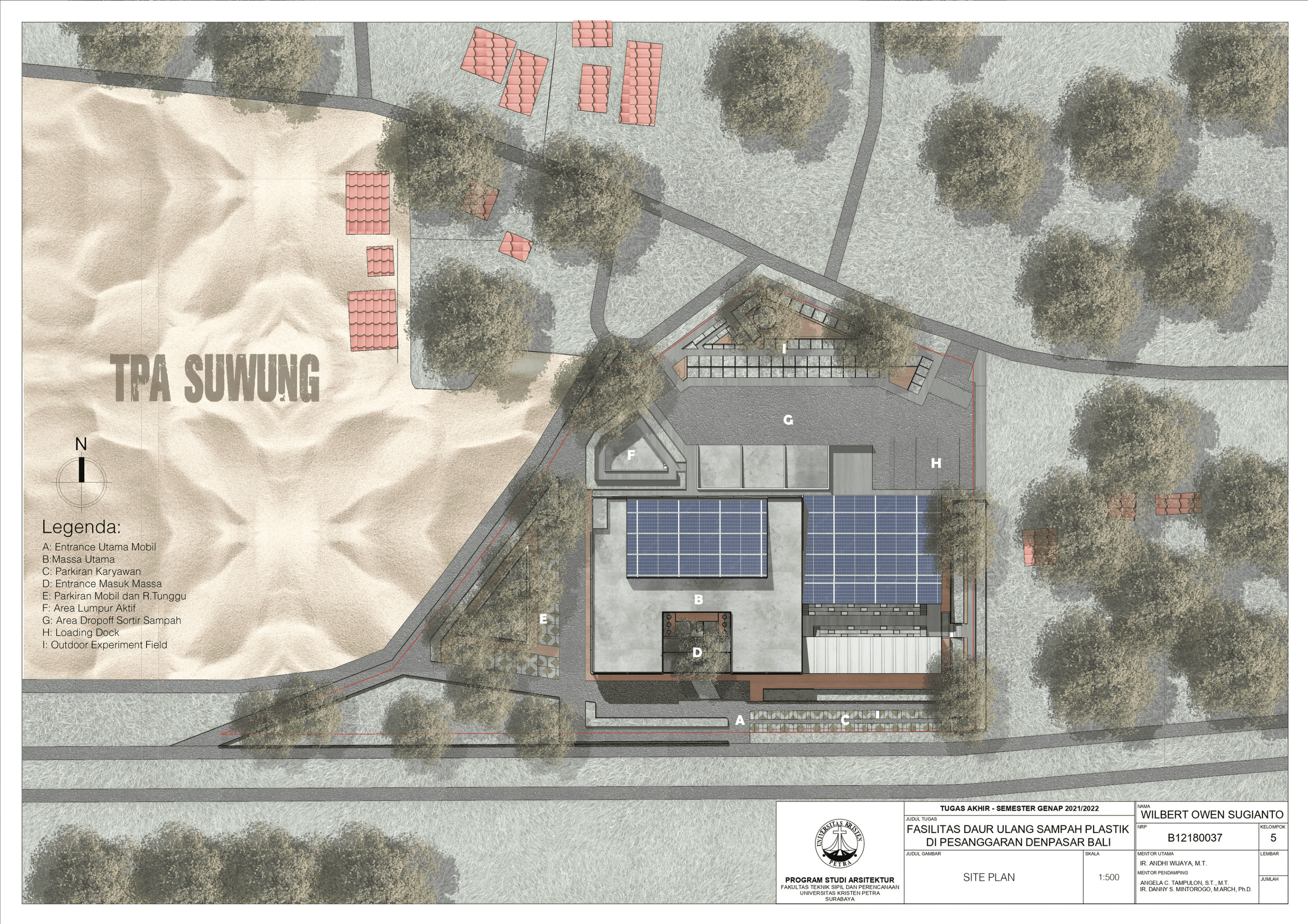 Library's collection Library's IT development CancelFasilitas Pendaur TPA Suwung di Kecamatan Pesanggaran, daerah Denpasar ditinjau dari permasalahan sampah di Bali yang menjadi sebuah isu yang serius dalam lingkungan pariwisata dan Kesehatan masyarakat Bali. Dikabarkan bahwa umur TPA Suwung tidak akan lama lagi, dan akan ditutup pada beberapa tahun lagi. Berdasarkan survei, TPA Suwung menampung setidaknya 120-ton sampah setiap harinya. TPA Suwung menjadi tempat pembuangan akhir sampah untuk wilayah Denpasar, Badung, Gianyar dan Tabanan. Sampah-sampah yang berasal dari wilayah tersebut 30% mengalami proses pendauran ulang 70% diletakkan di TPA Suwung. Sampah-sampah tersebut paling dominan berasal dari rumah tangga (48%), pasar tradisional (24%), dan kawasan komersial (9%). Berdasarkan data yang diperoleh dari sebuah laporan Yudianka (2017), sampah yang ditemukan di TPA Suwung dikategorikan menjadi sampah organic dan sampah non-organic. Sampah organic yang dapat ditemukan di TPA Suwung antar lain, makanan dan limbah kebun tanaman dan untuk sampah non-organic antara lain plastik, kertas, logam, karet dan kaca.