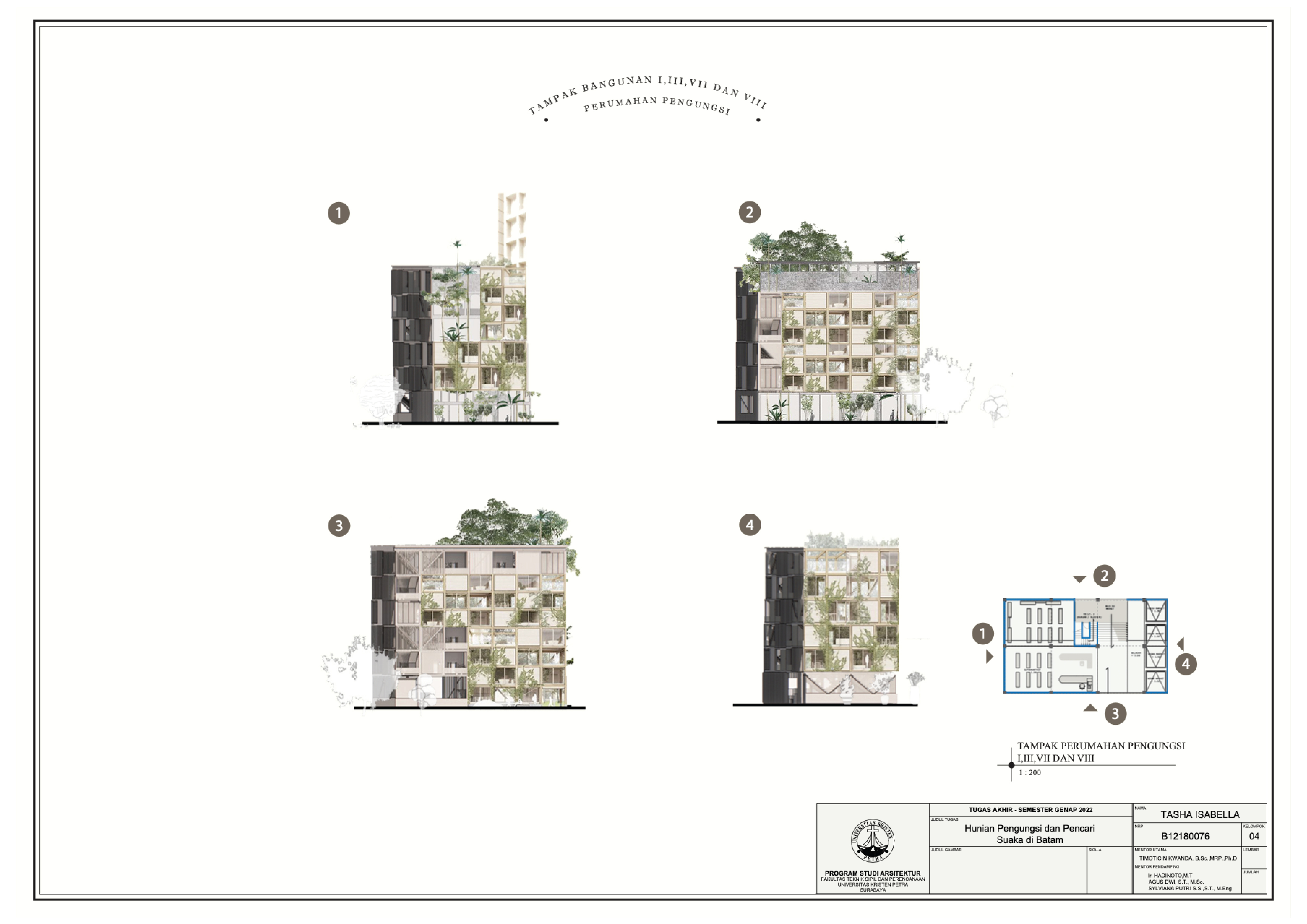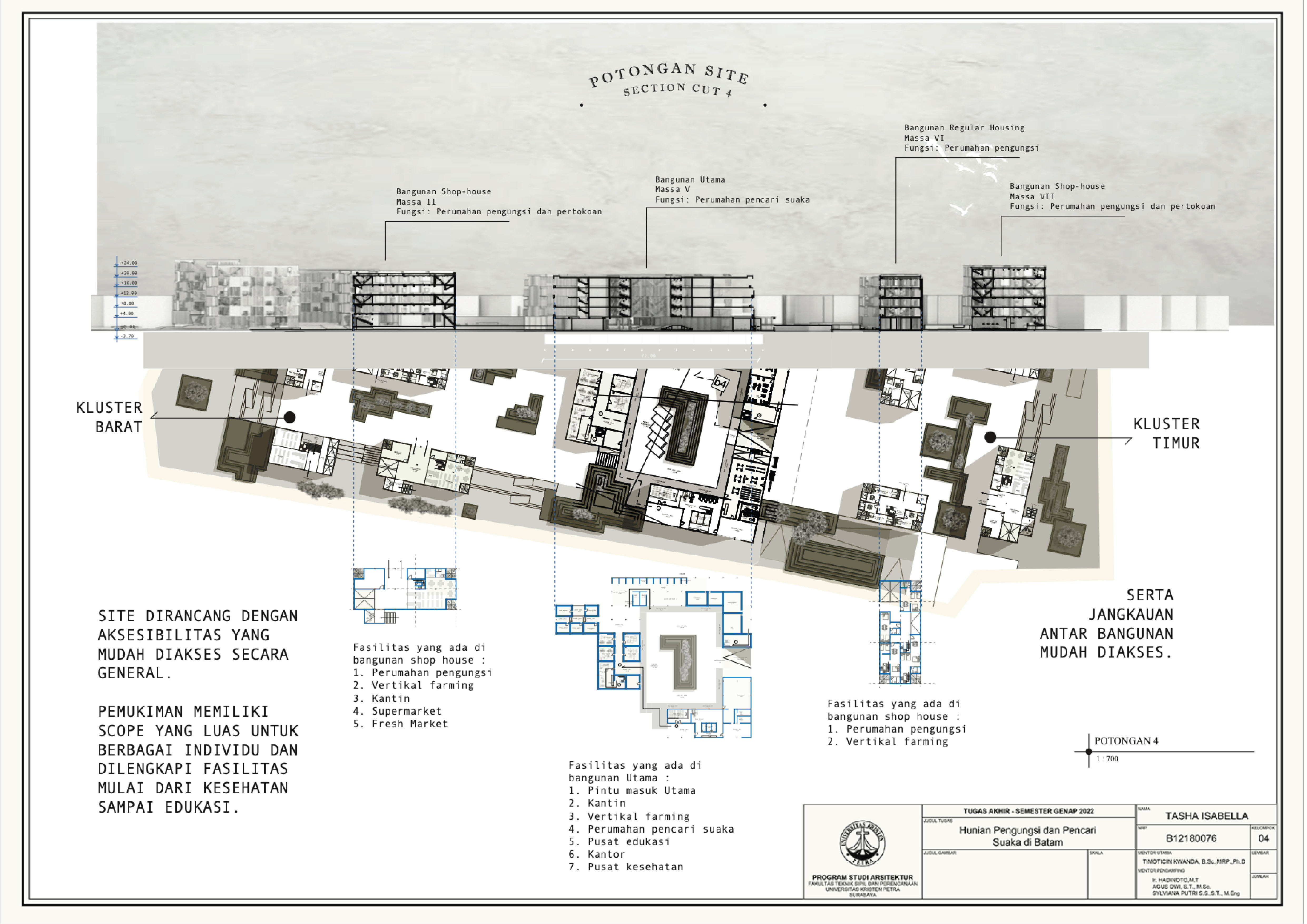 Proyek ini berspekulasi pada perumahan bantuan dan ruang berkonsep arsitektur di dalam kota Batam. Proyek ini menafsirkan ulang kamp pengungsi dengan menata ulang perumahan murah dengan konsep CPTED (pencegahan kejahatan melalui desain lingkungan) kedalam ruang hidup. Tujuannya adalah untuk menciptakan strategi jangka panjang bagi pencari suaka dan pengungsi di Indonesia pada masa depan. Dengan adanya sistem relief dan proses rehabilitasi di fasilitas ini, diharapkan mereka dapat memenuhi waktu dan tujuan yang mereka butuhkan untuk pindah dari Indonesia. Jika berhasil, program bangunan ini akan membantu pengungsi dan pencari suaka untuk (1) memperoleh kewarganegaraan baru di suatu tempat, (2) bermukim kembali ke negara lain, (3) dipulangkan ke negara asalnya.