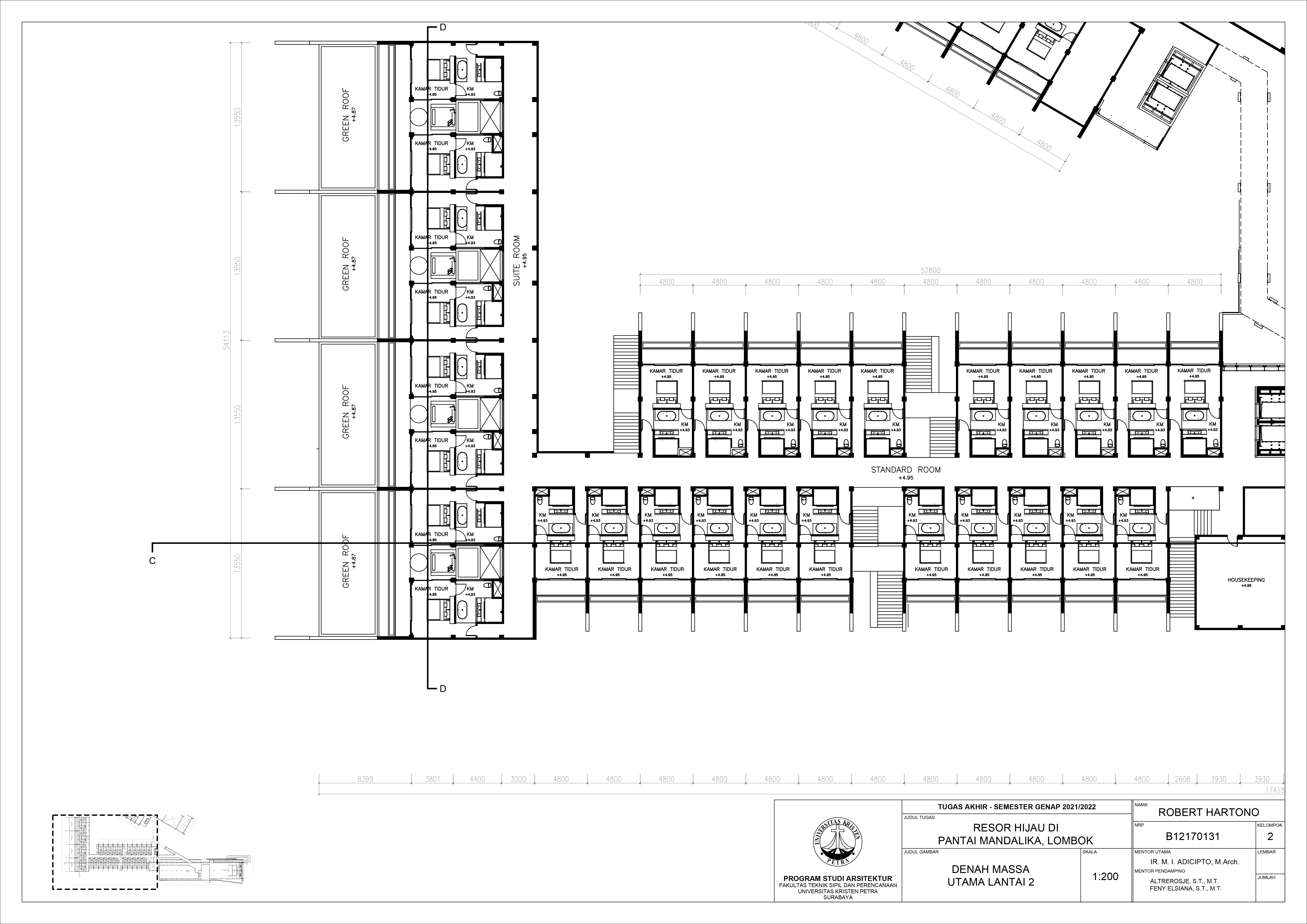Library's collection Library's IT development CancelPerancangan Resor Hijau di Pantai Mandalika, Lombok didasari dengan pemikiran bahwa adanya pembangunan infrastruktur dan sektor pariwisata di Kawasan Mandalika, sehingga dibutuhkannya fasilitas penunjang berupa resor. Mengingat Kawasan Mandalika yang terkenal dengan keindahan alamnya yang baik dan dapat dimanfaatkan untuk menarik wisatawan mengapresiasi alam di Mandalika. Sehingga, masalah desain adalah bagaimana menciptakan resor yang dapat menarik perhatian wisatawan. Menggunakan pendekatan ekologi mengenai desain biofilik sebagai dasar pemikiran dalam merancang proyek dengan memanfaatkan desain bangunan yang dapat mengemfasiskan keindahan alam Mandalika.
