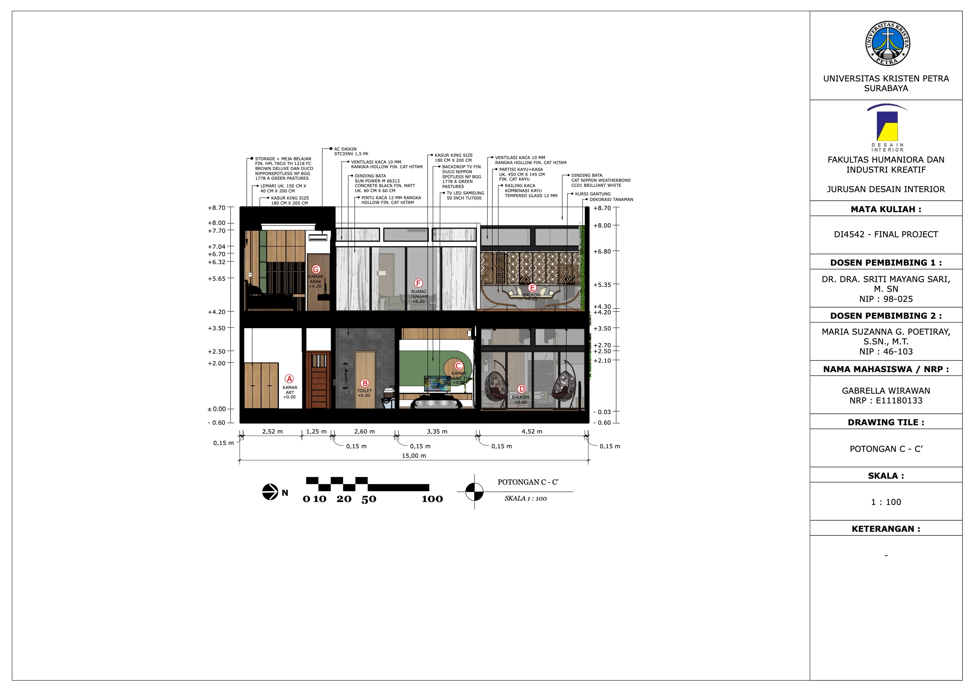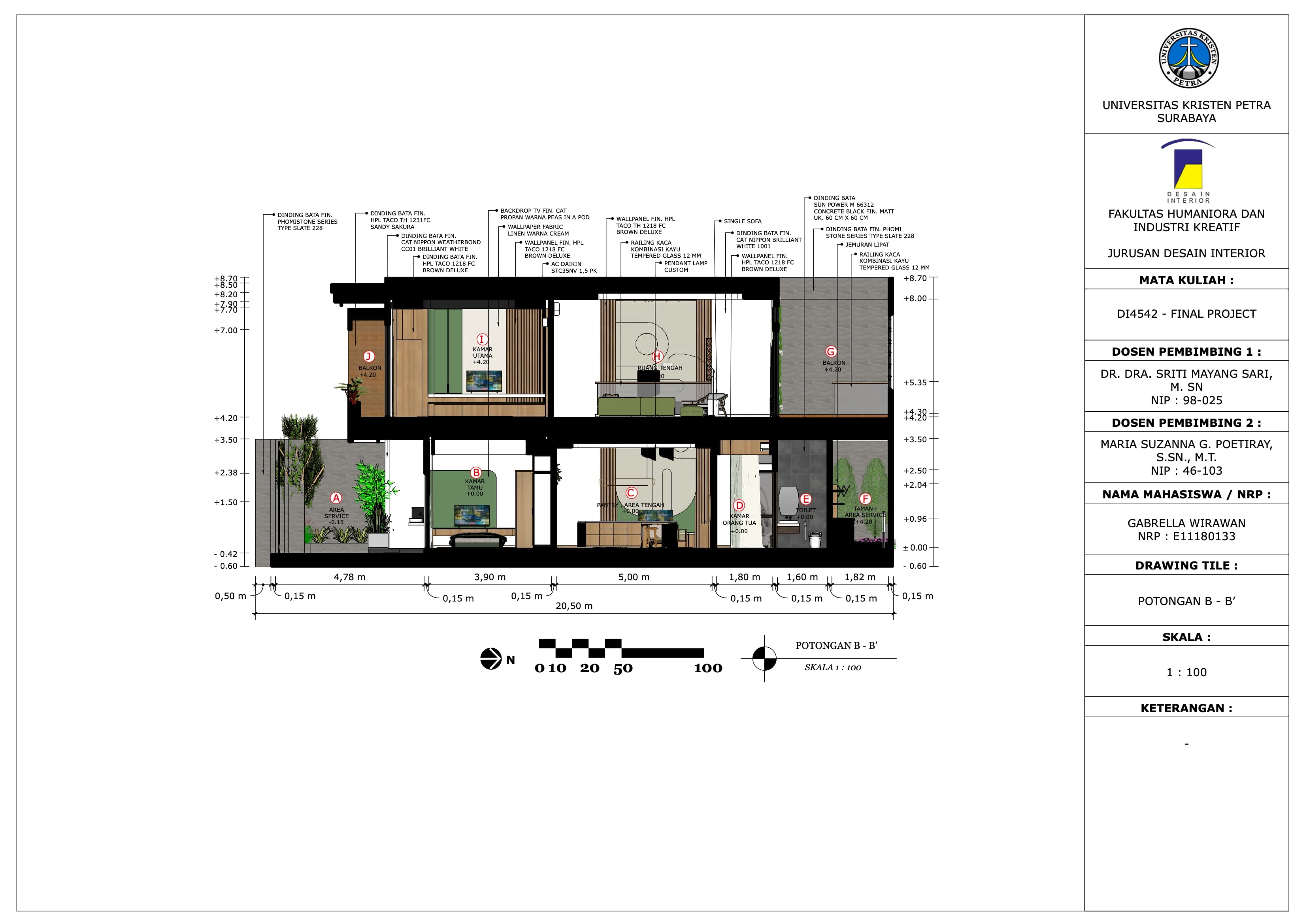 Library's collection Library's IT development CancelSeiring berkembangnya zaman yang pesat, kesehatan merupakan faktor penting yang harus dijaga agar tetap sehat dan dapat melakukan aktivitas dengan baik. Banyak cara untuk menjaga kesehatan fisik mau pun mental seperti dengan melakukan olahraga yang teratur, pola makan yang sehat, istirahat yang cukup dan lingkungan sekitar yang sehat terutama rumah tinggal. Rumah tinggal sehat merupakan rumah yang memungkinkan para penghuninya dapat mengembangkan dan membina fisik mental maupun sosial keluarga. Permasalahan pada perancangan ini bagaimana merancang interior rumah tinggal sehat dengan penerapan aspek penghawaan, pencahayaan, sirkulasi ruang dan material yang baik untuk kesehatan pengguna ruang. Perancangan ini bertujuan untuk meningkatkan tingkat kesehatan pengguna ruang dengan merancang interior rumah yang sehat sehingga pengguna ruang dapat merasakan fasilitas lain dari rumah yaitu untuk tempat tinggal dan kenyamanan. Metode yang digunakan dalam perancangan ini adalah Design Thinking dengan tahapan Understand, Observe, POV, Ideate, Prototype, Test, Story Telling, Pilot, dan Business Model. Hasil perancangan ini yaitu implementasi Style Natural Modern pada rumah tinggal sehat di Sumenep, Madura.