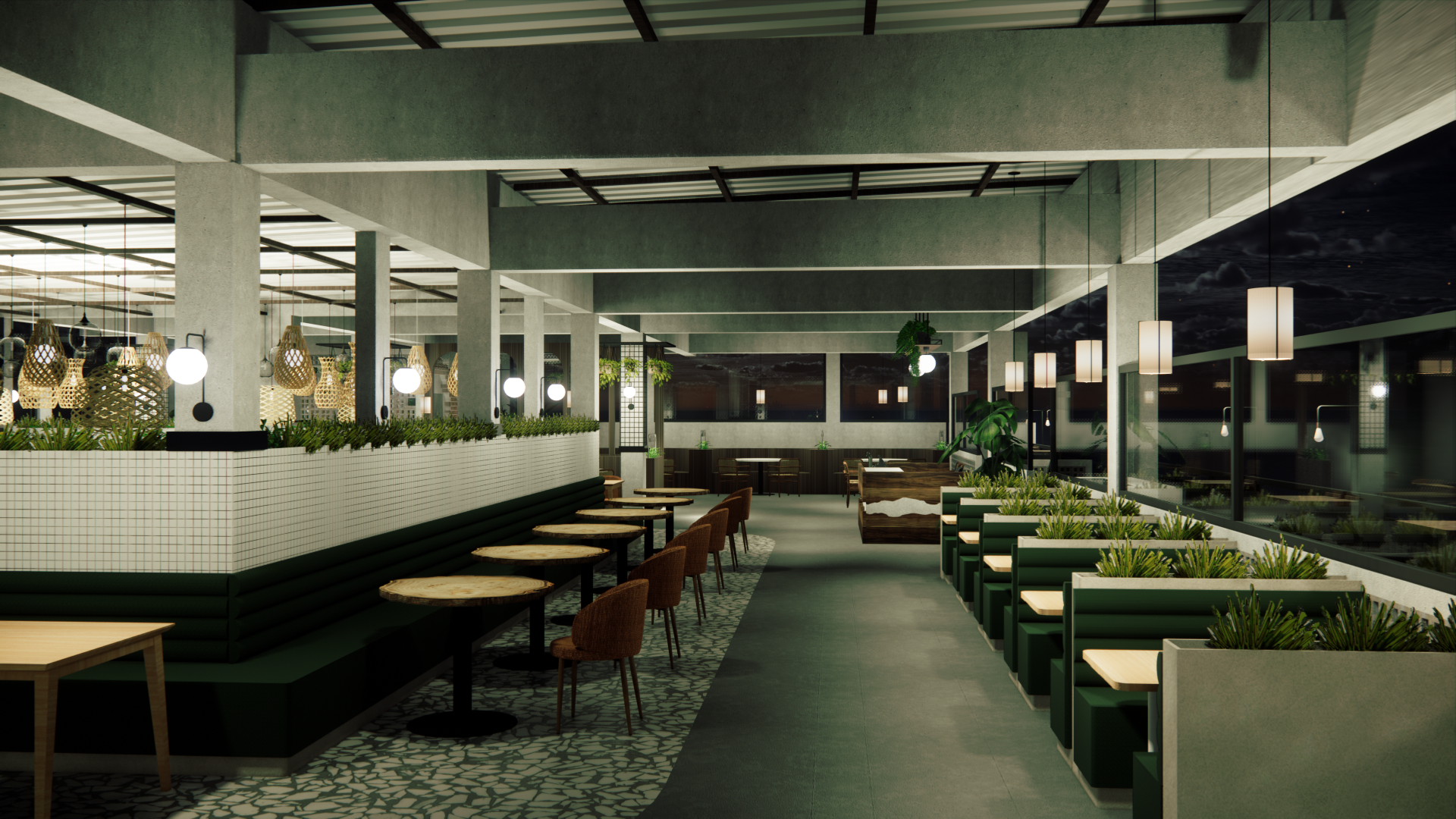Perancangan restoran Papa Mama yang menggunakan konsep “tropical Brutalism” mampu menghasilkan sebuah desain kantor yang unik, menarik, dan mampu memberikan pengalaman berbeda bagi pengunjung yang datang.